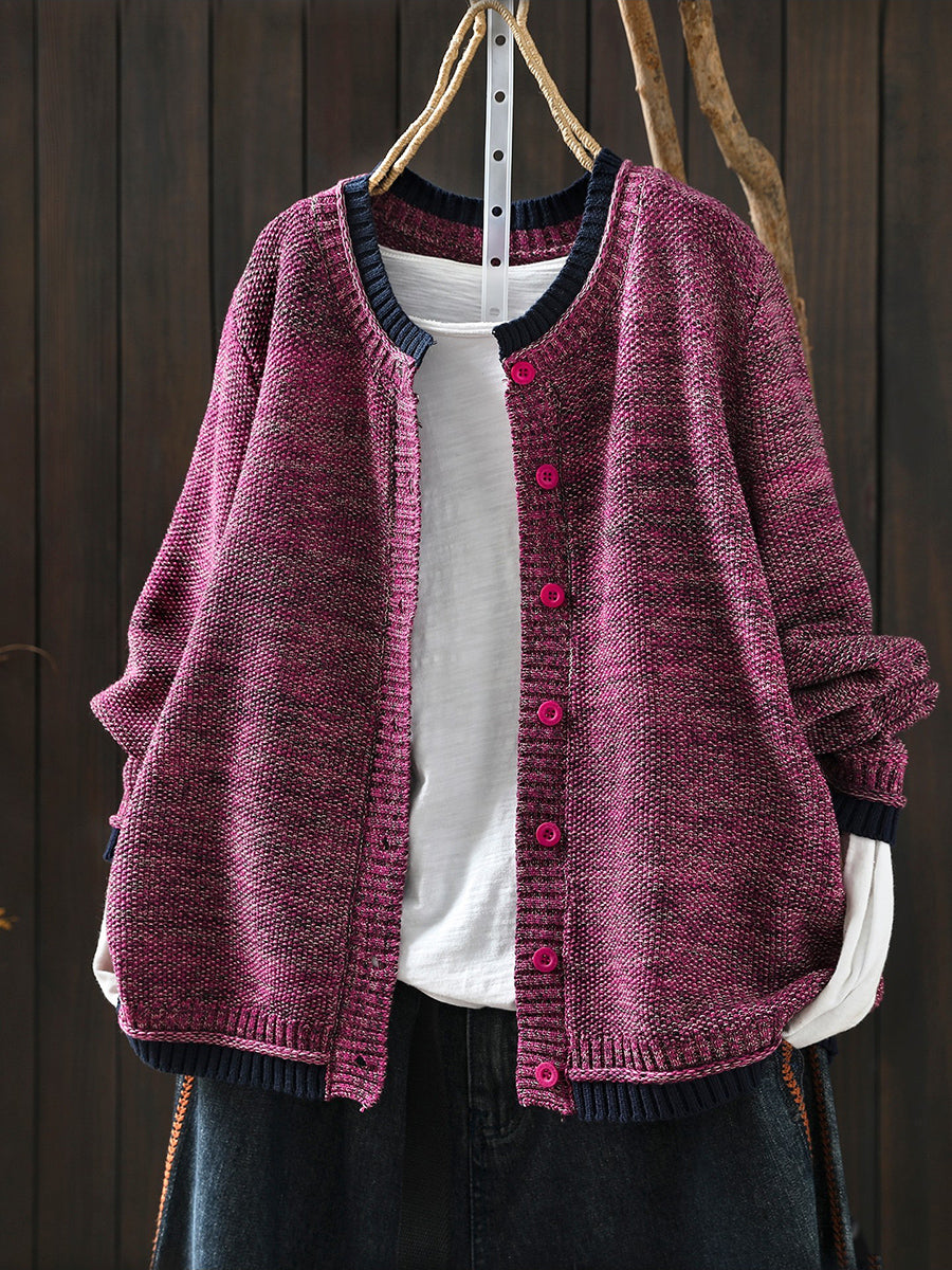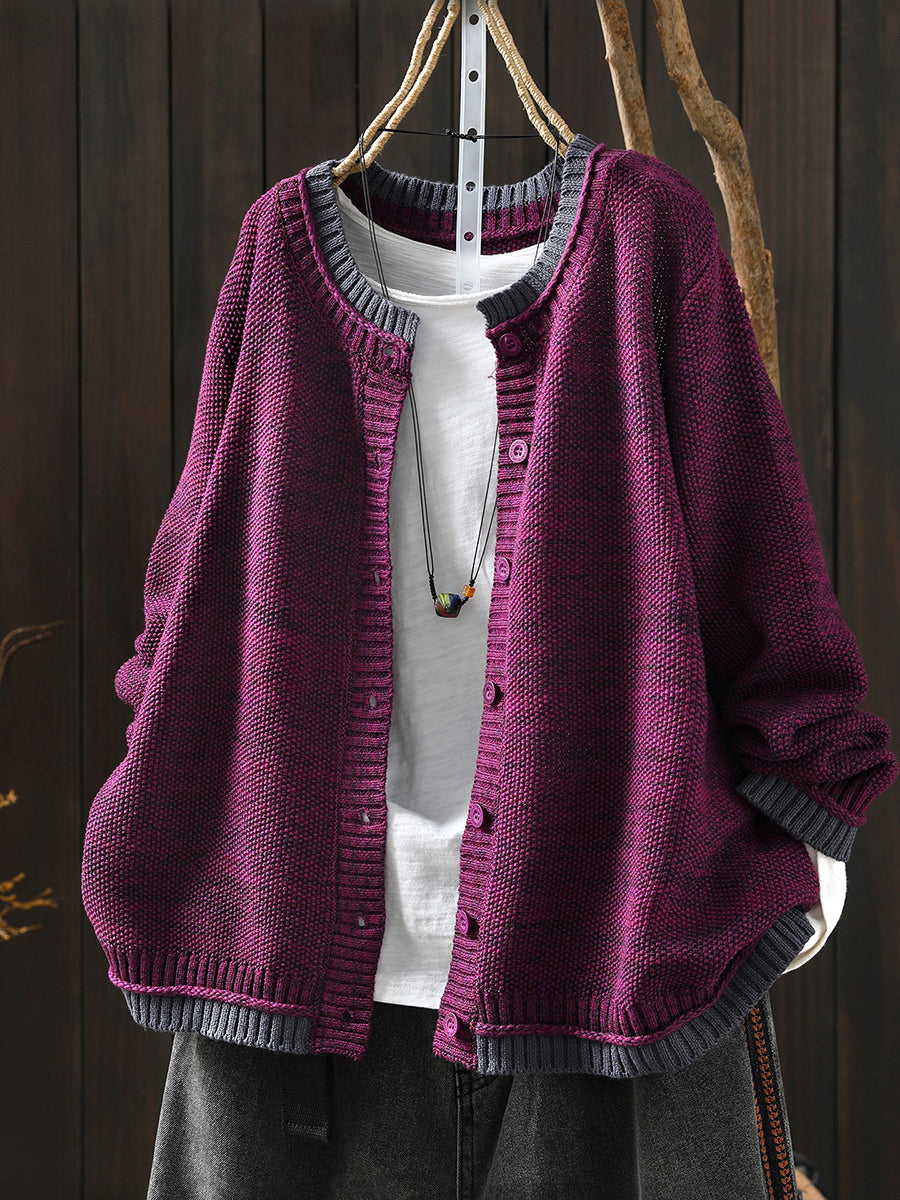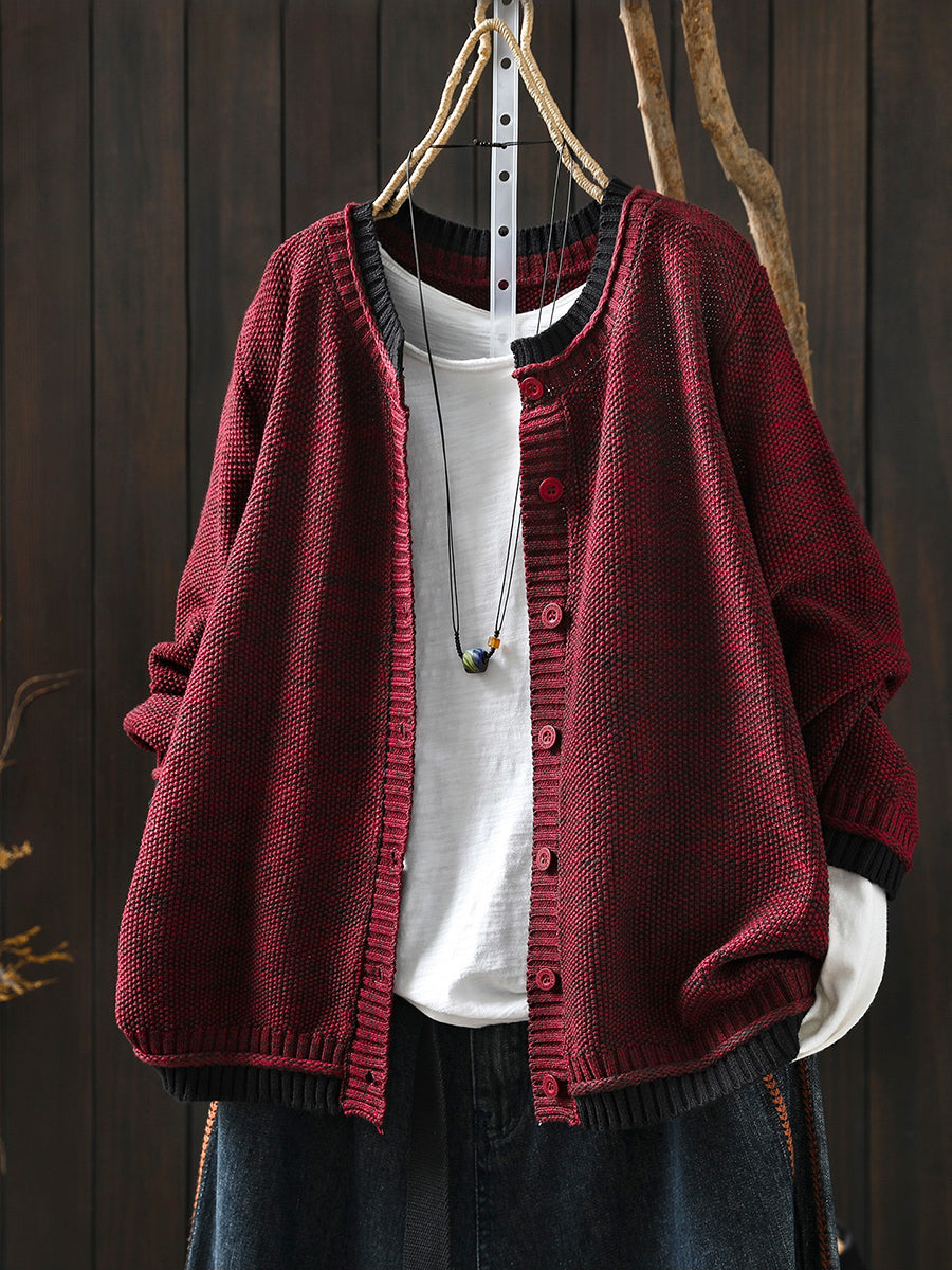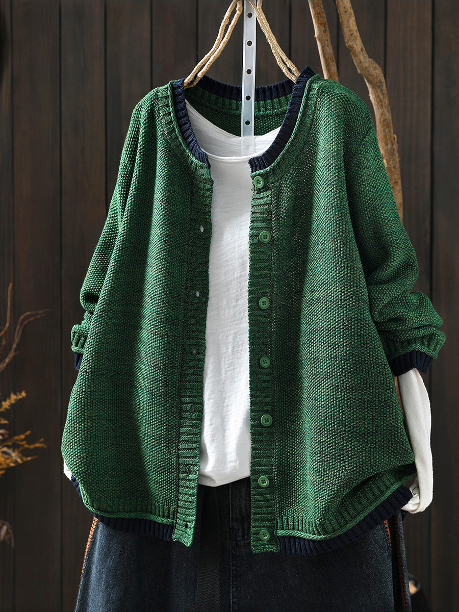 Women Autumn Artsy Colorblock Knitted Cardigan Sweater