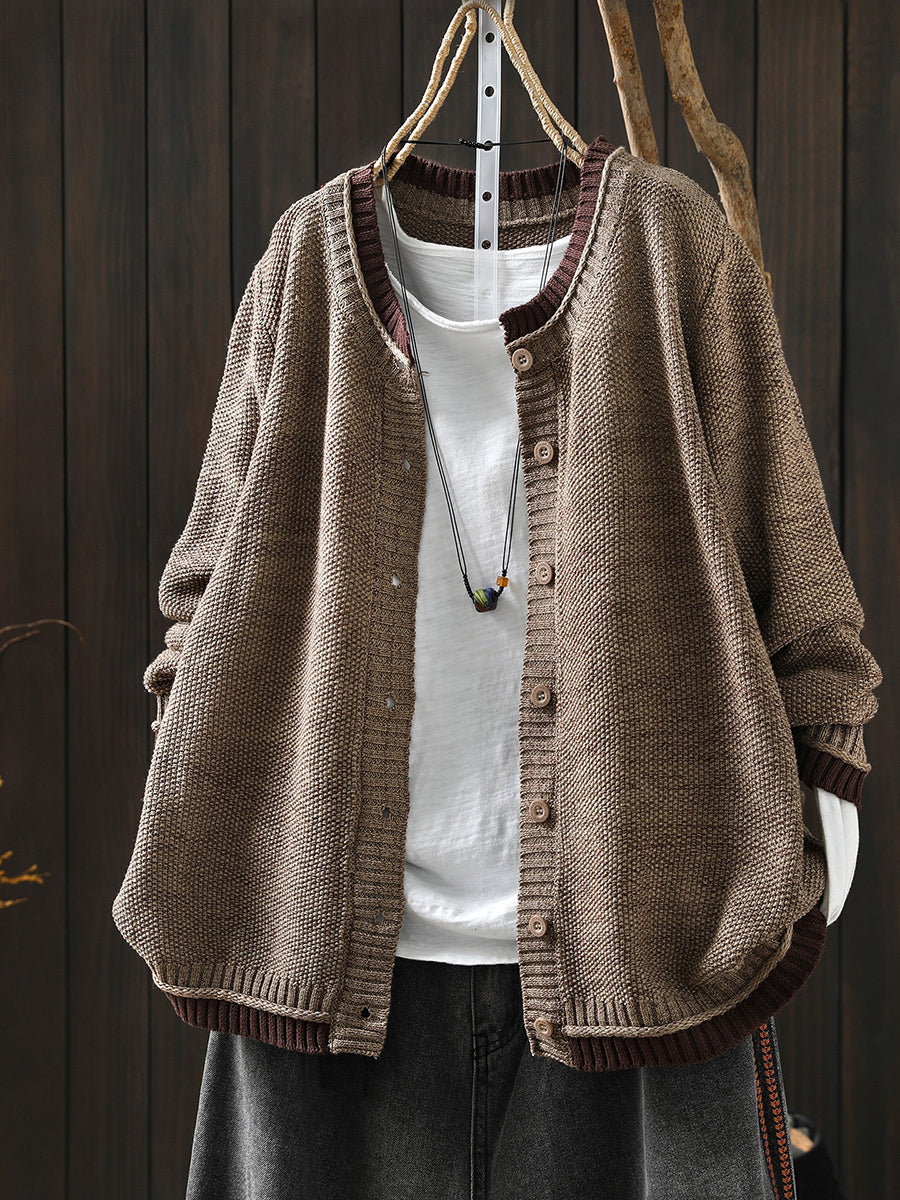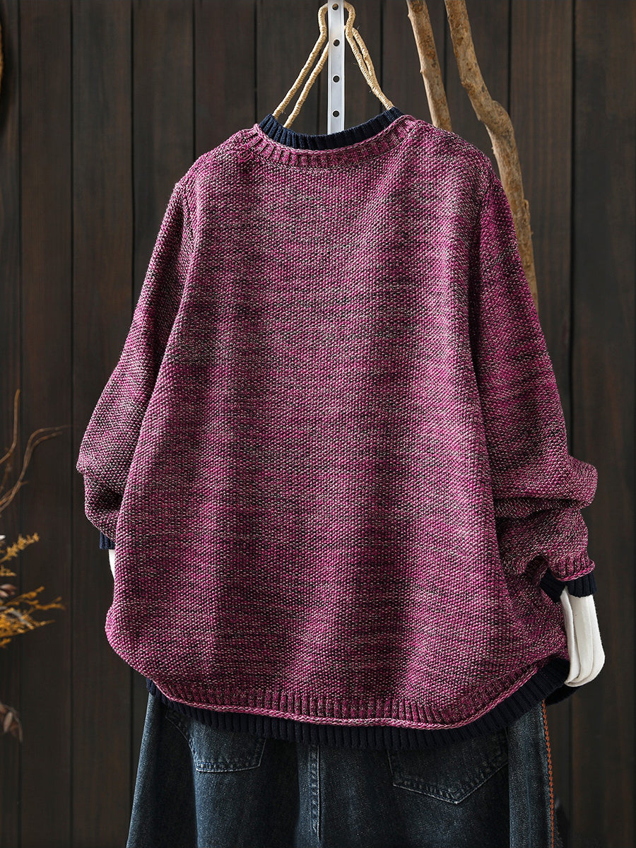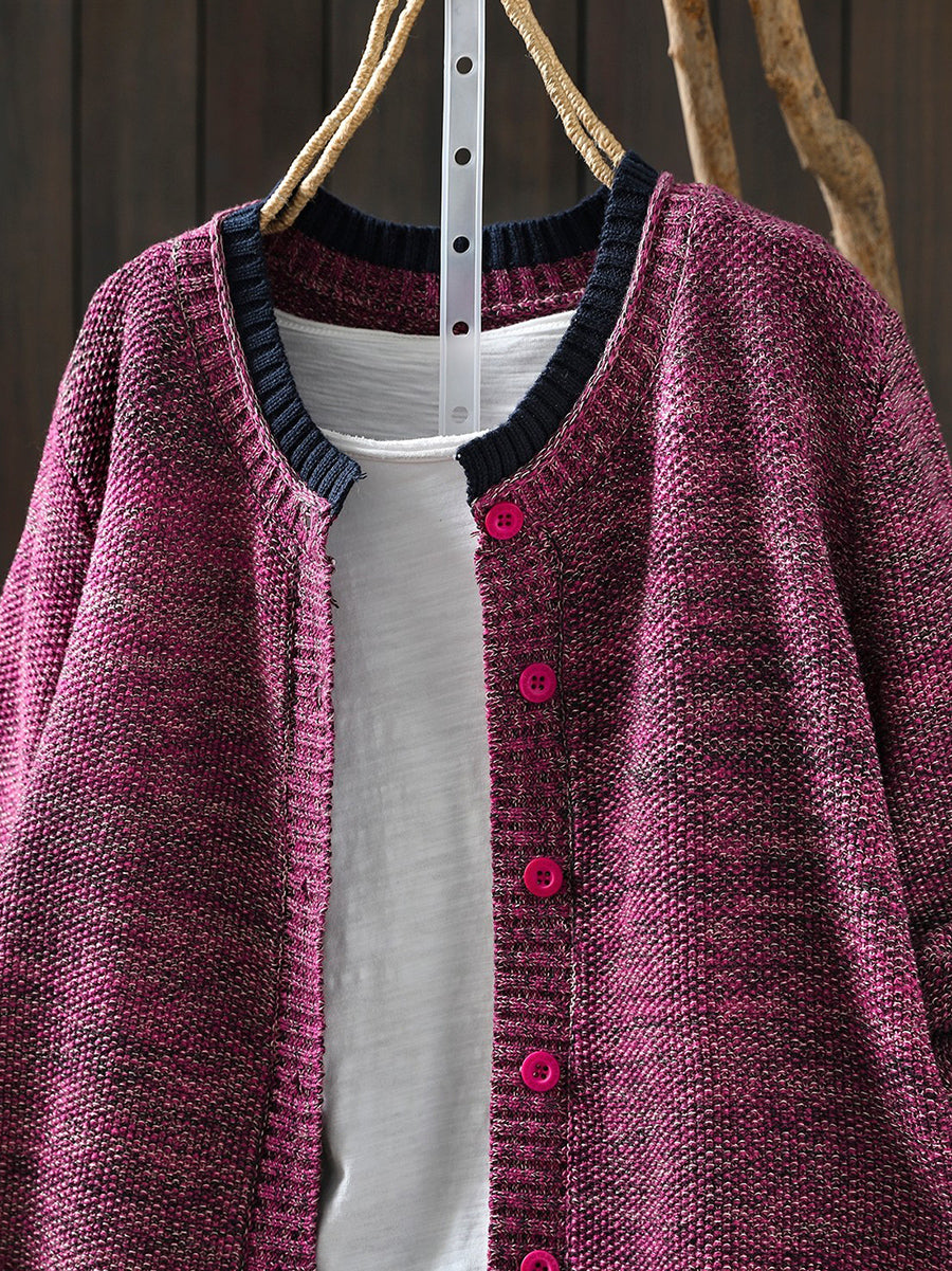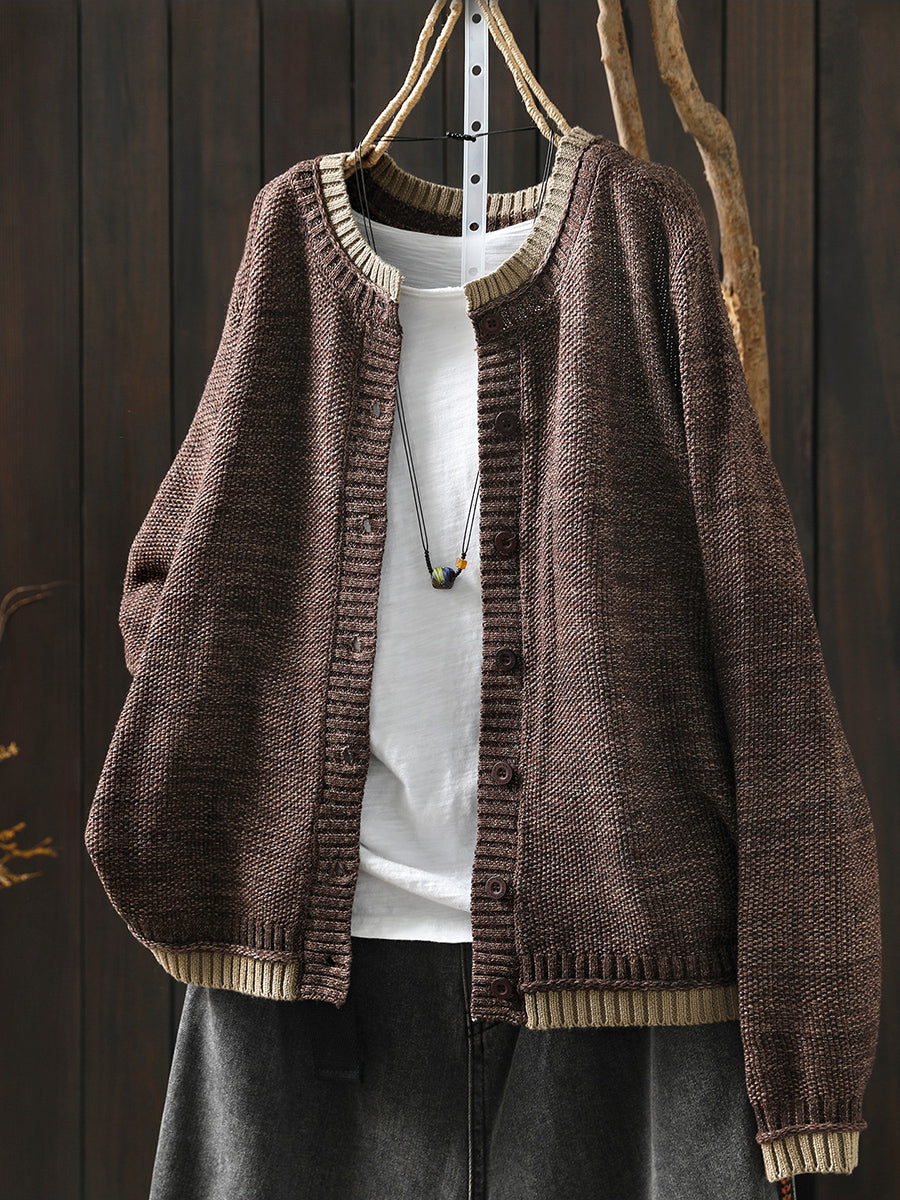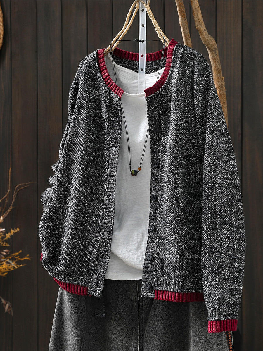 Women Autumn Artsy Colorblock Knitted Cardigan Sweater