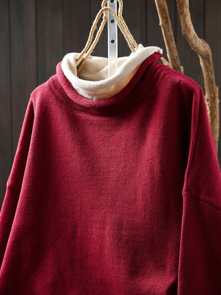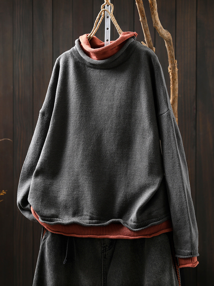 Women Autumn Artsy Fake Two Turtleneck Sweater