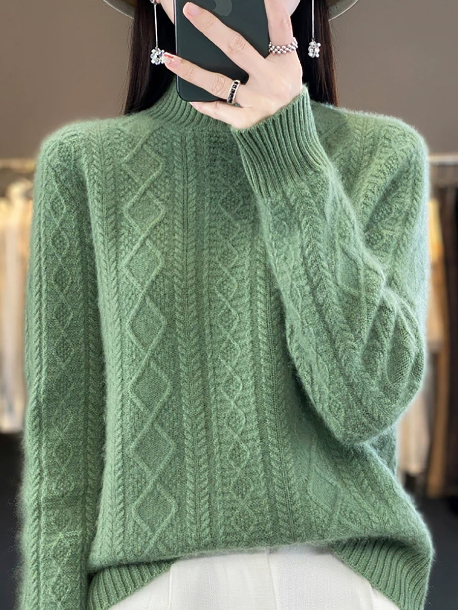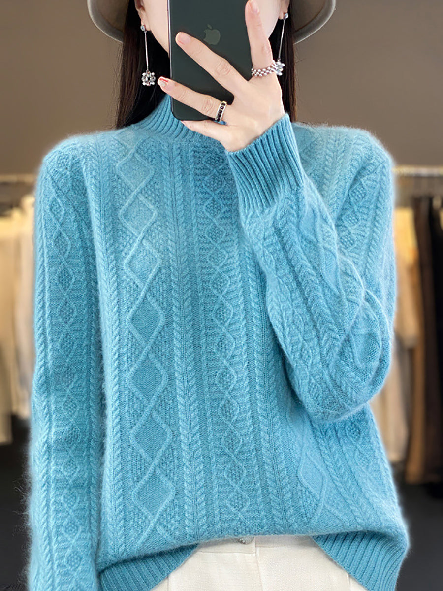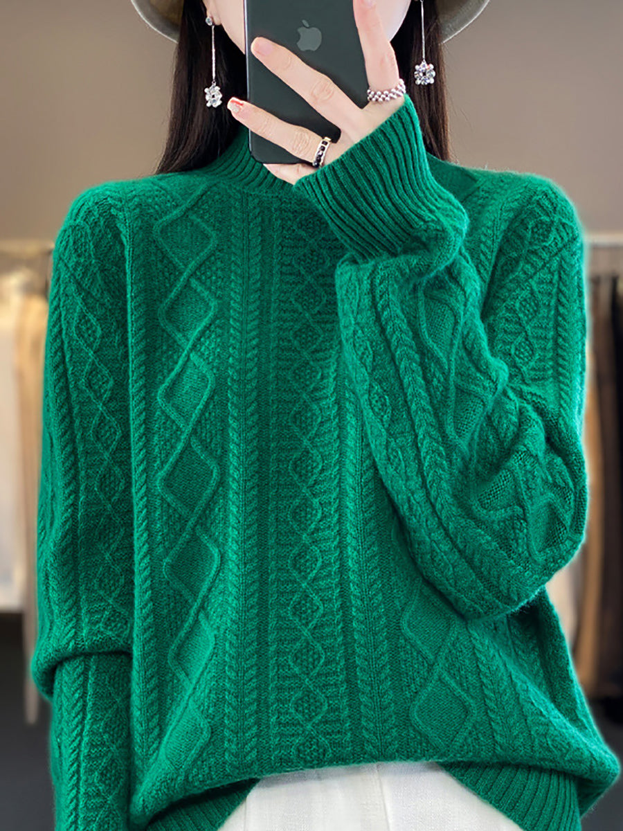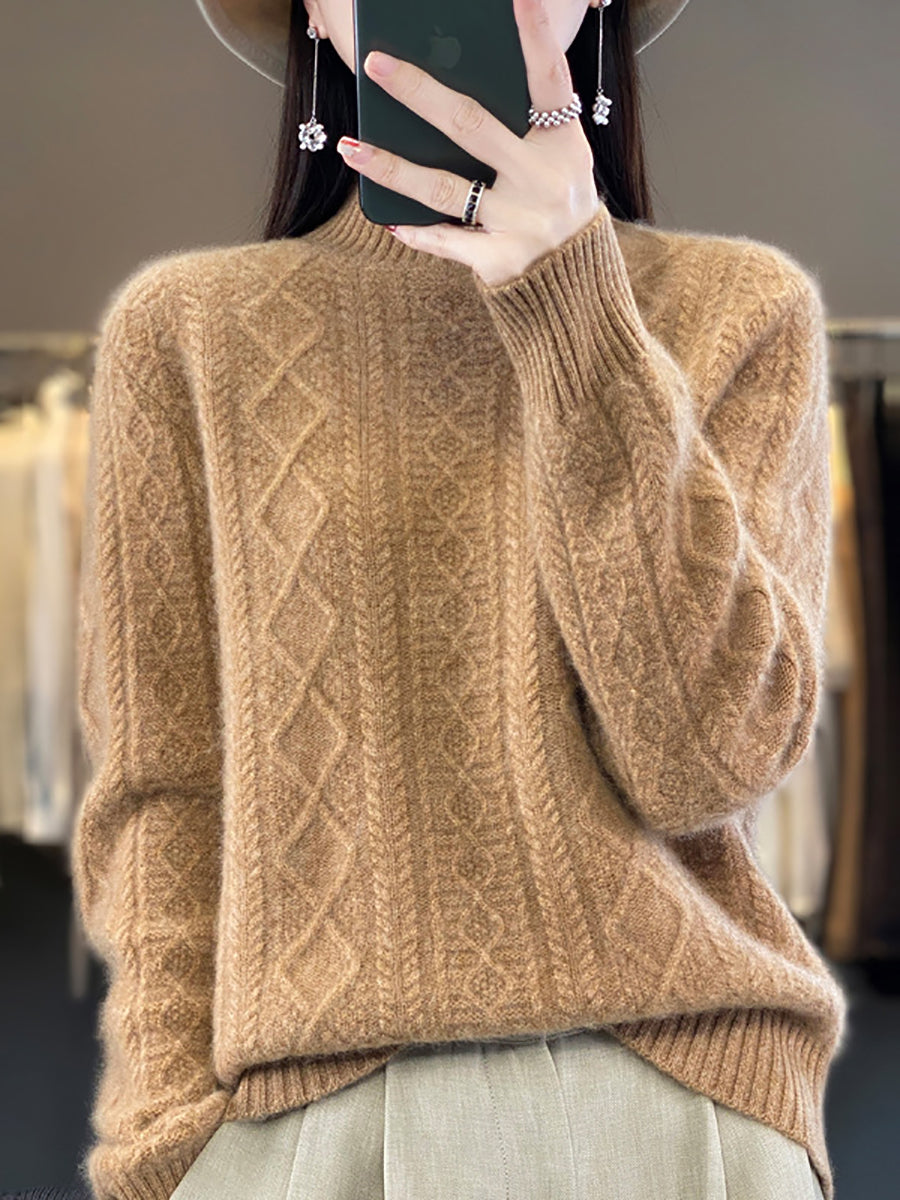 Women Autumn Artsy Jacquard Wool Half-Turtleneck Sweater