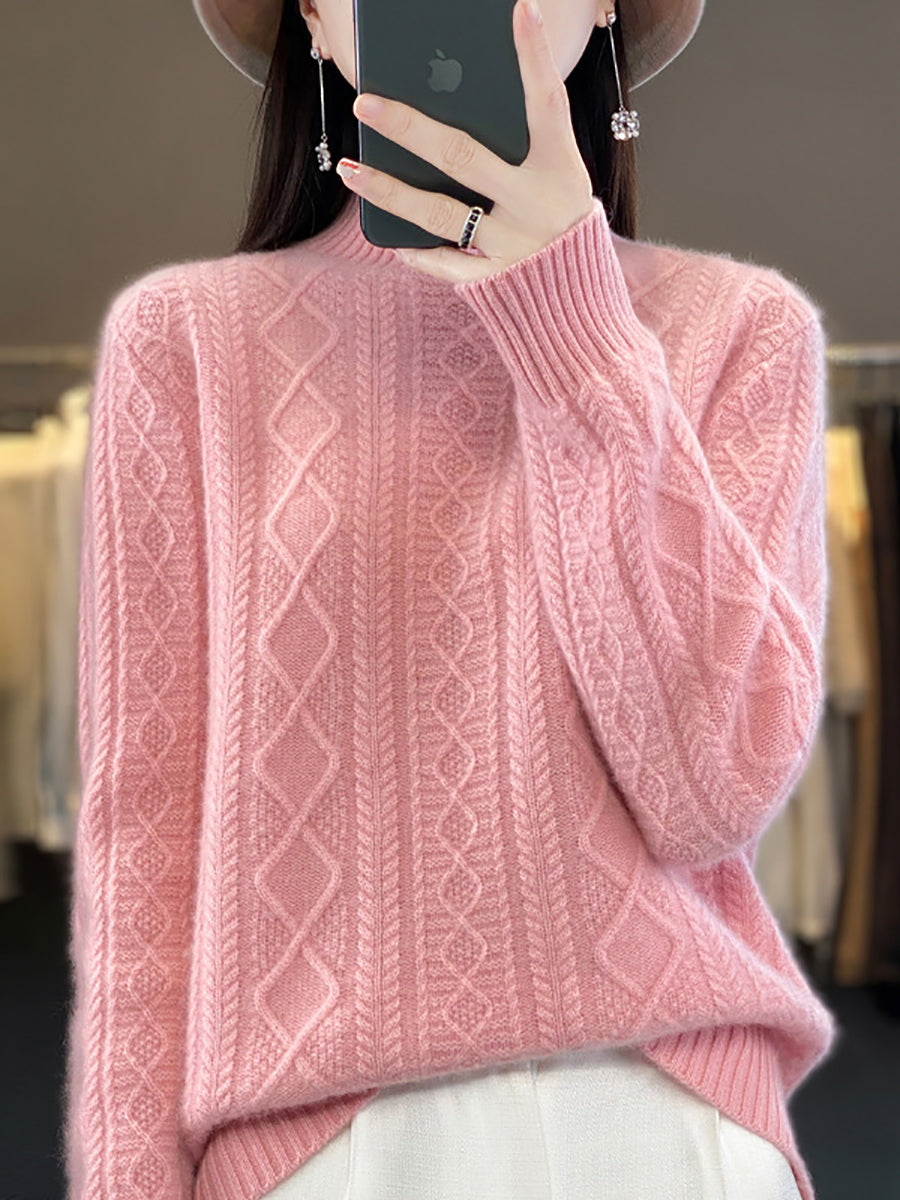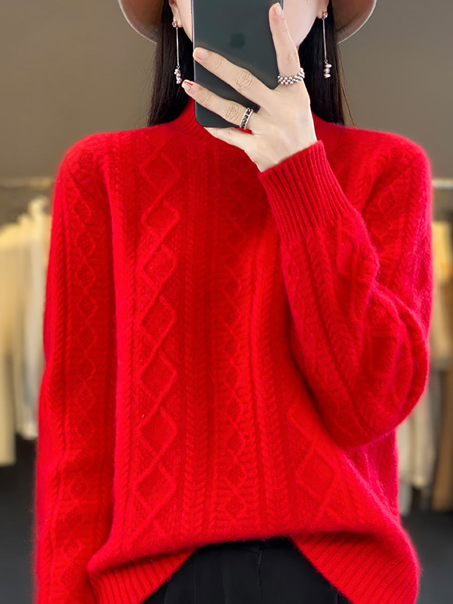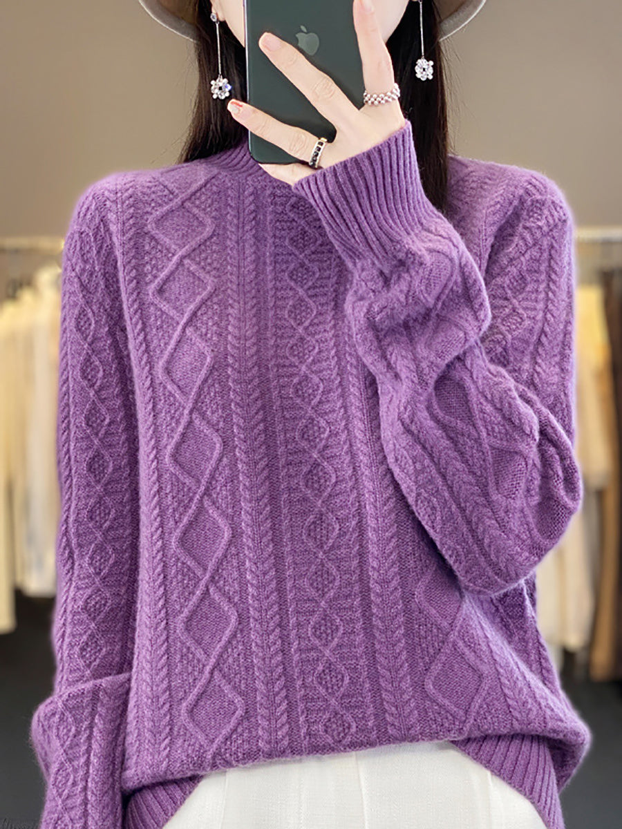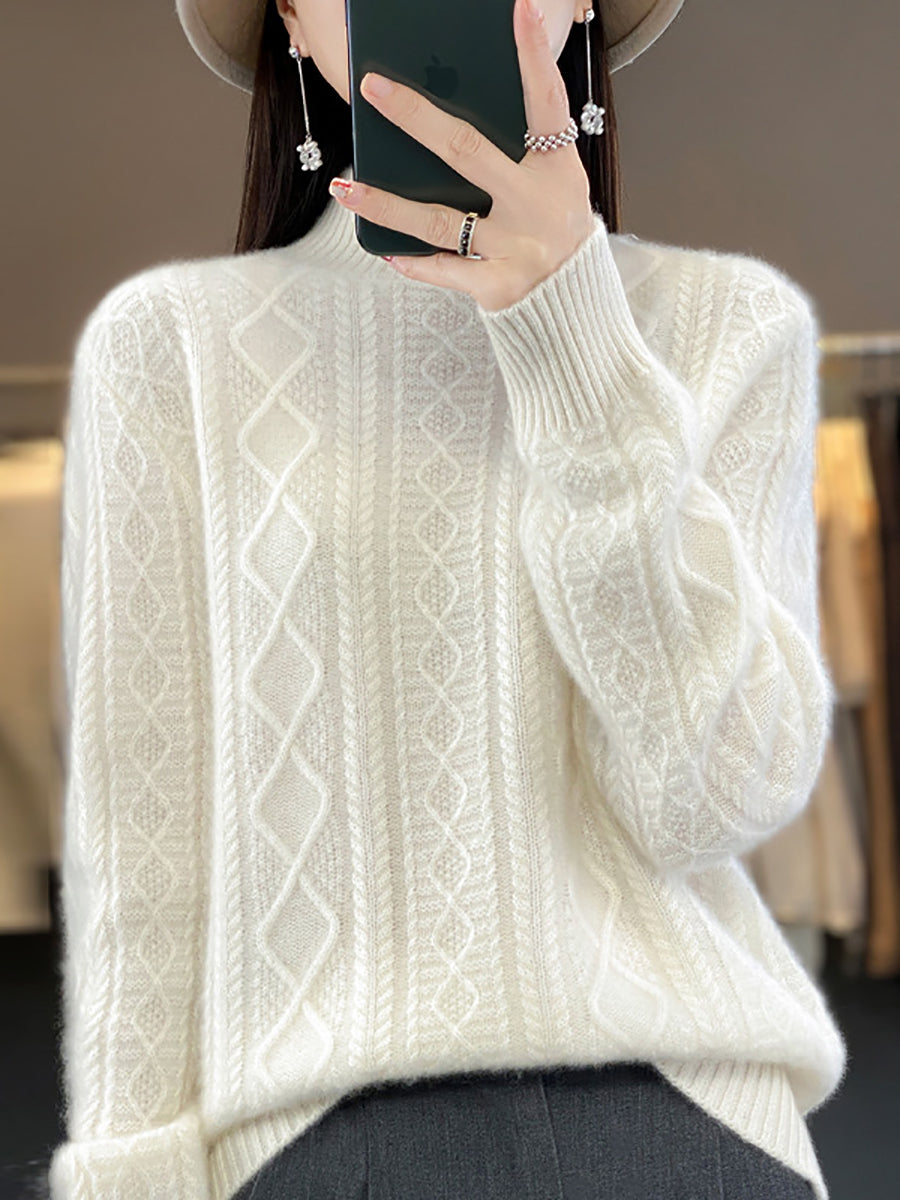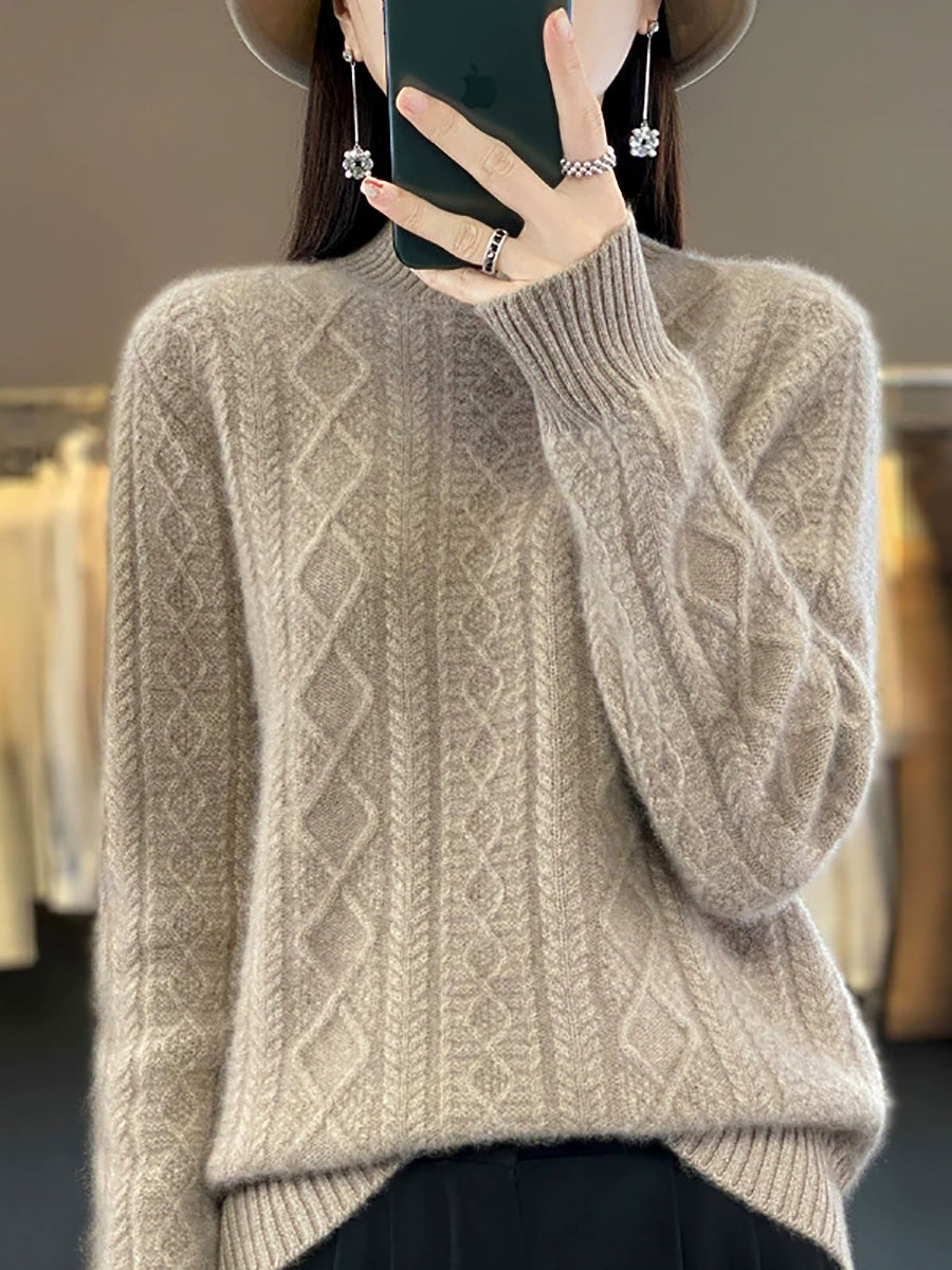 Women Autumn Artsy Jacquard Wool Half-Turtleneck Sweater