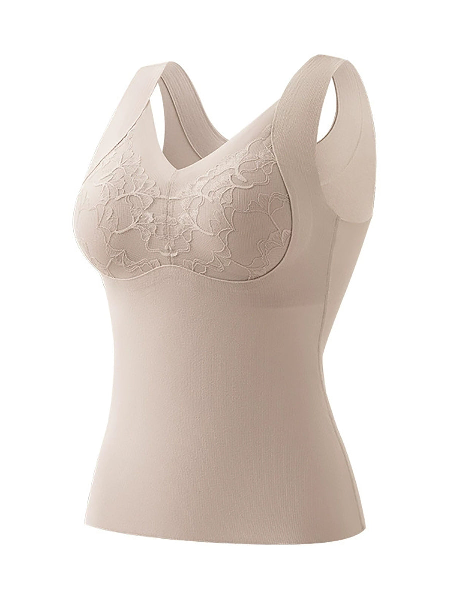 Women Autumn Artsy Lace Spliced V-Neck Bottom Vest