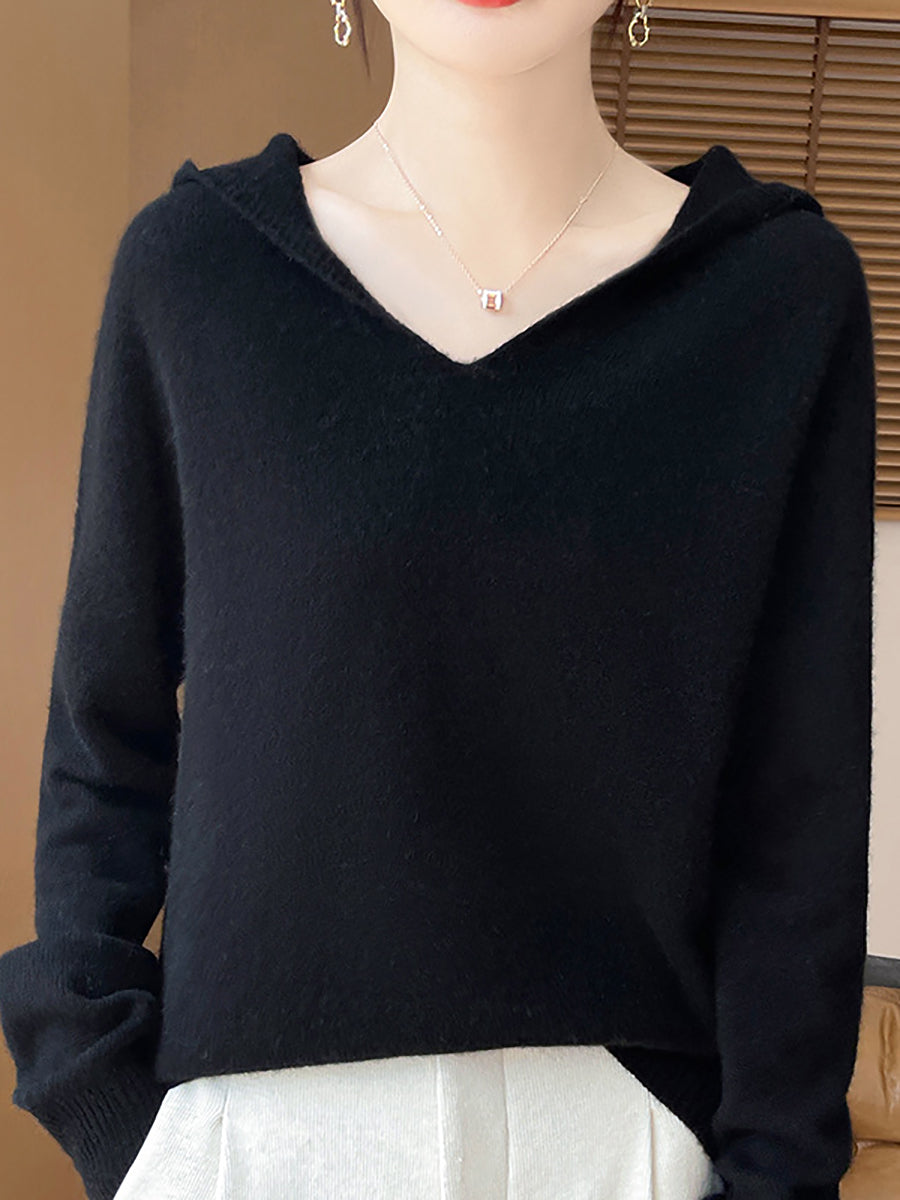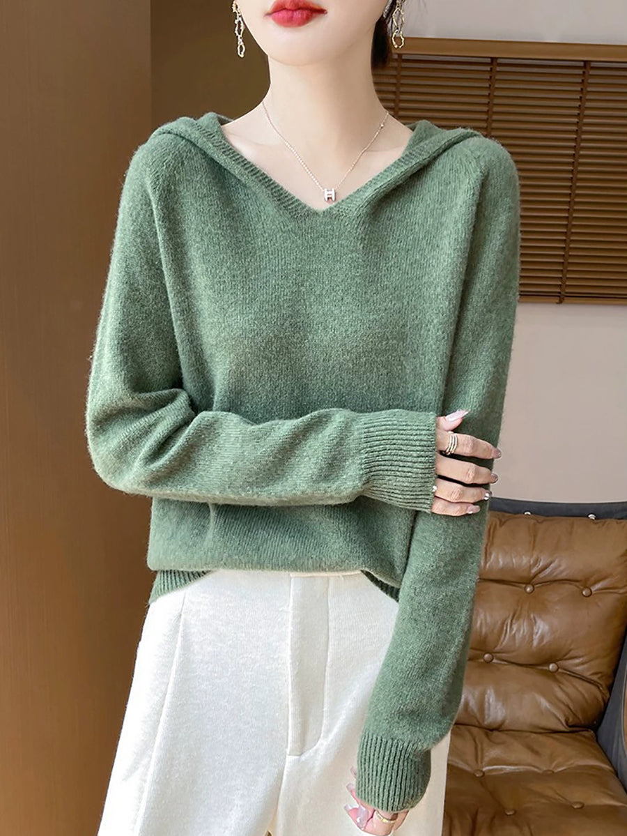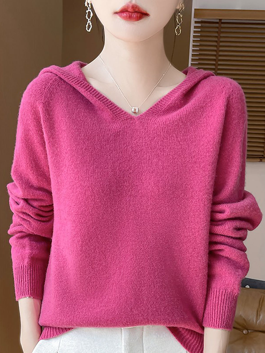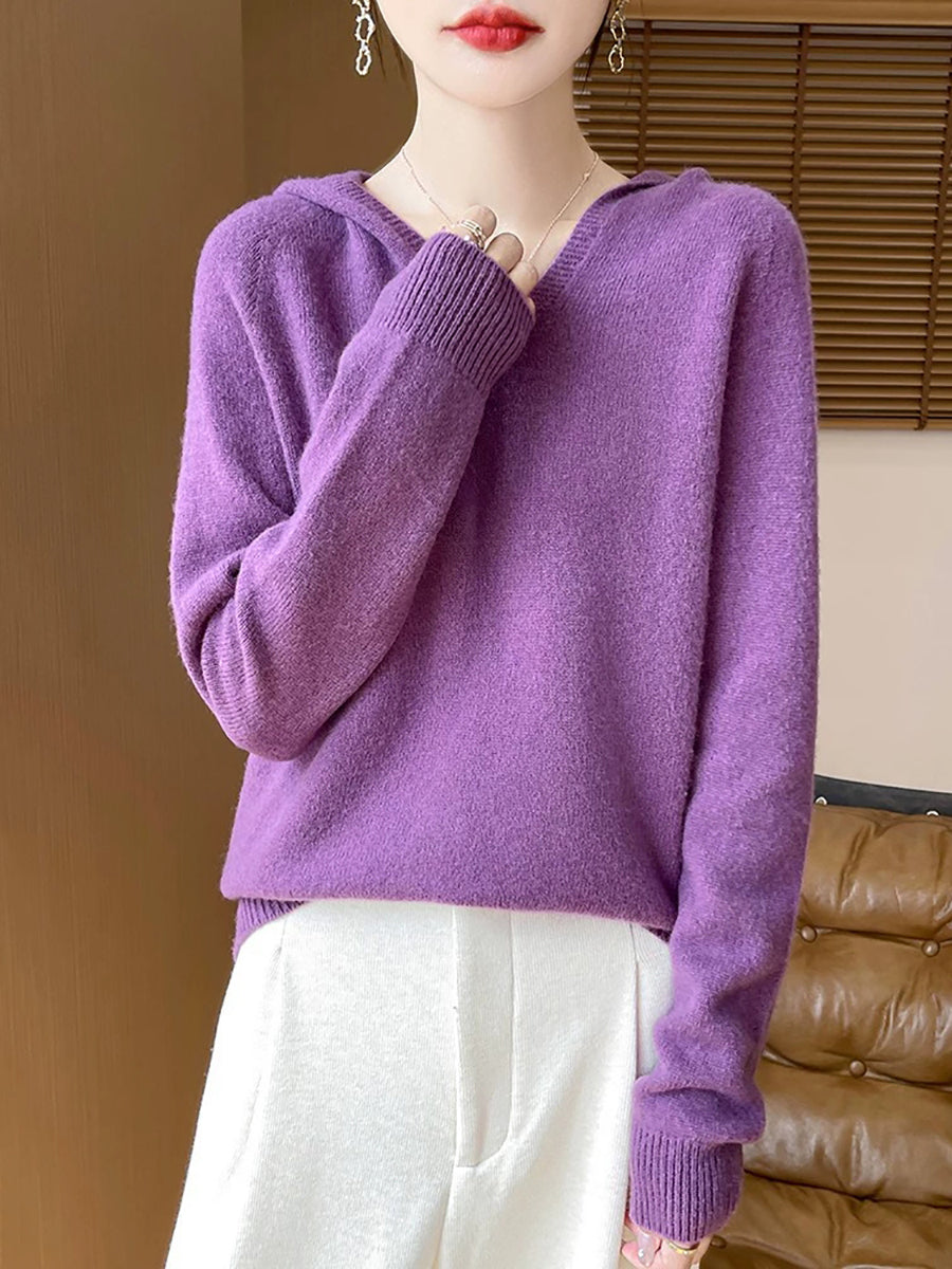 Women Autumn Artsy Pure Color Hooded Sweater