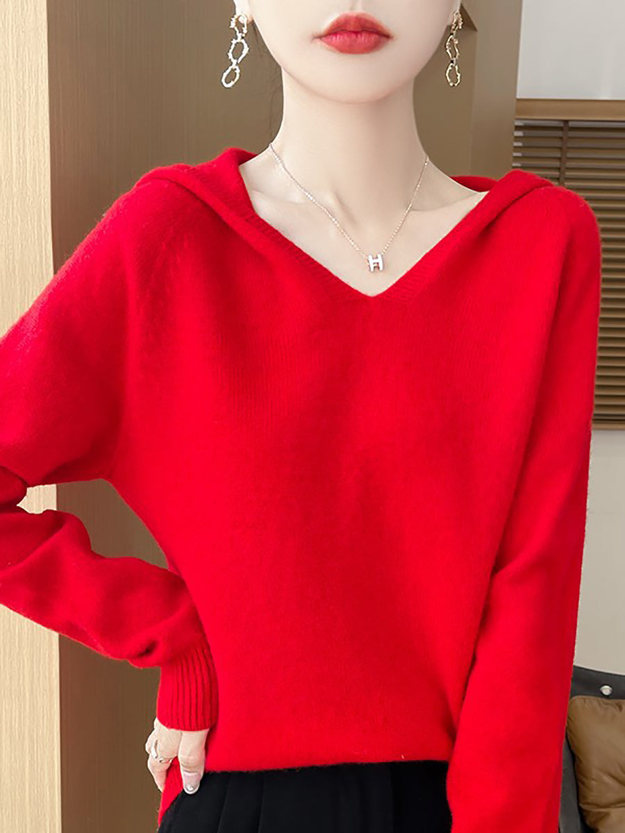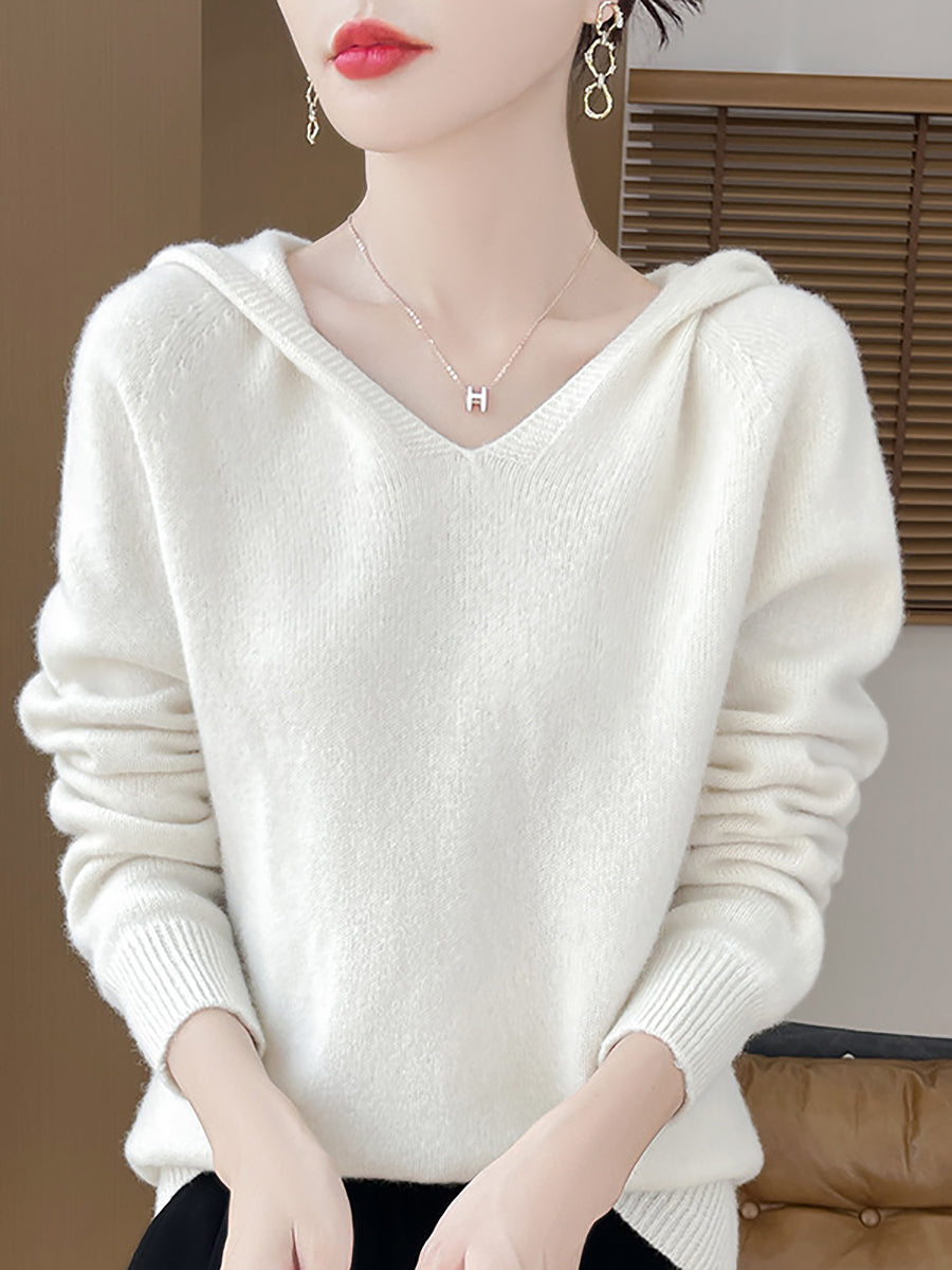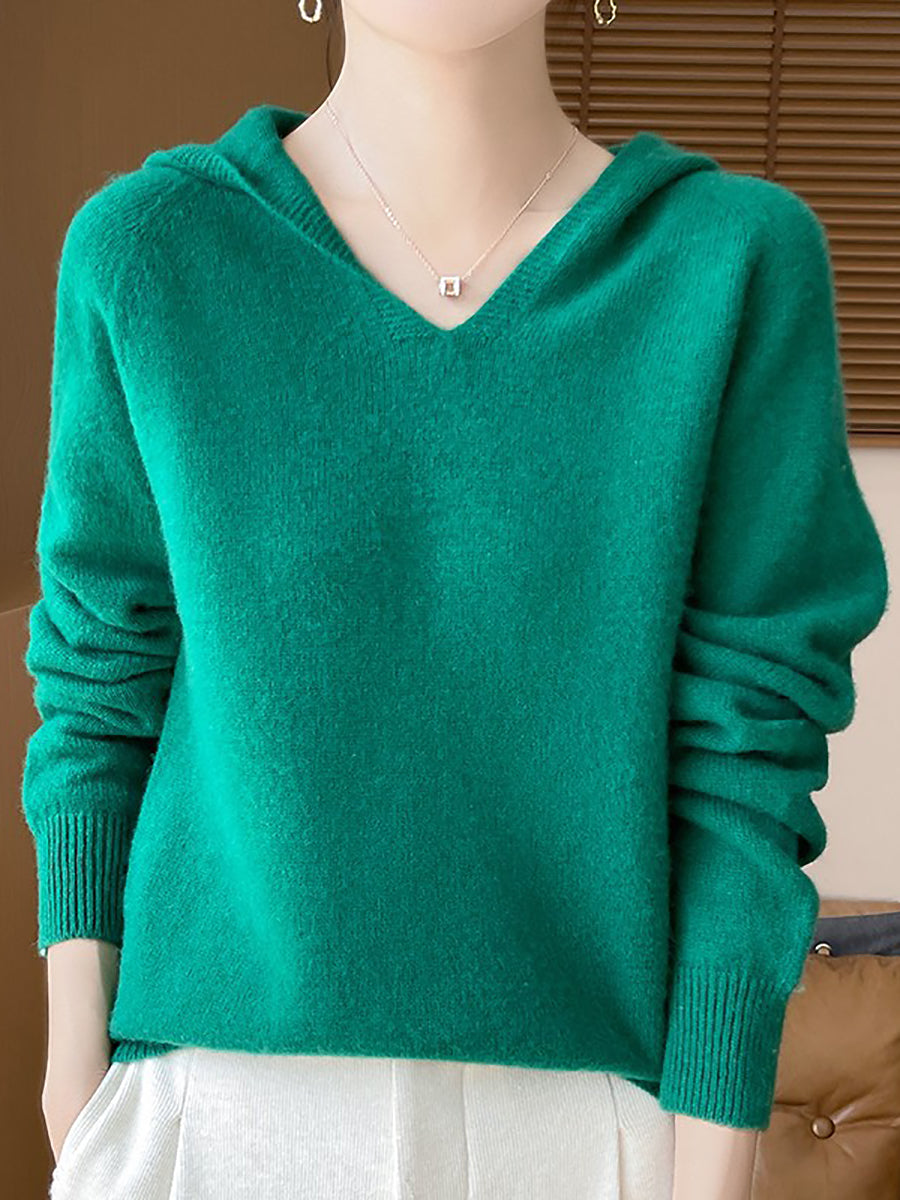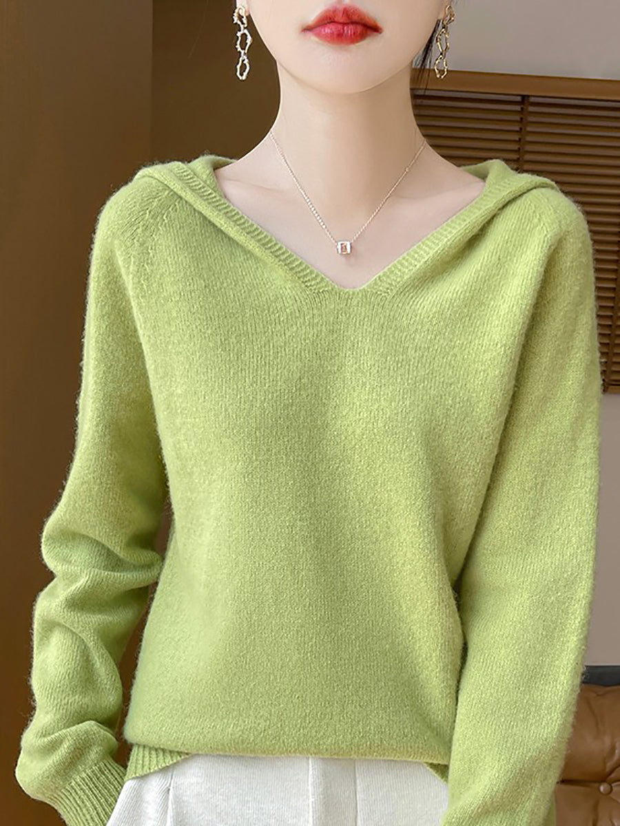 Women Autumn Artsy Pure Color Hooded Sweater