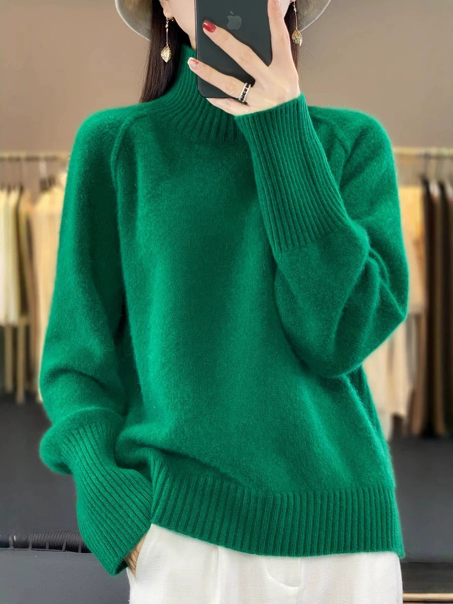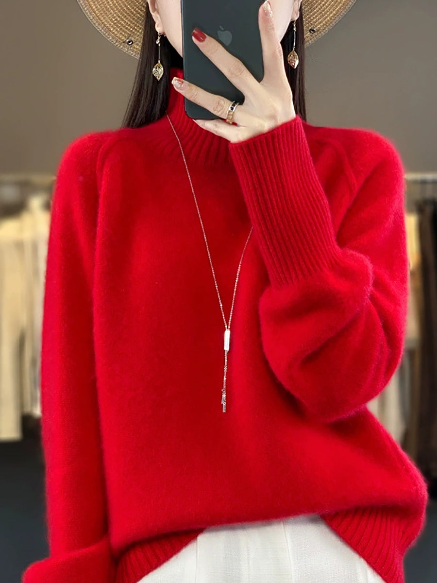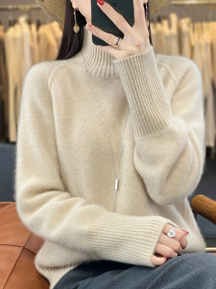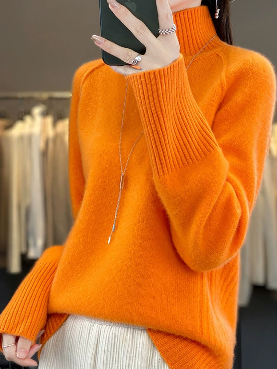 Women Autumn Casual Pure Color Turtleneck Sweater