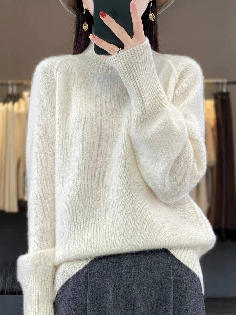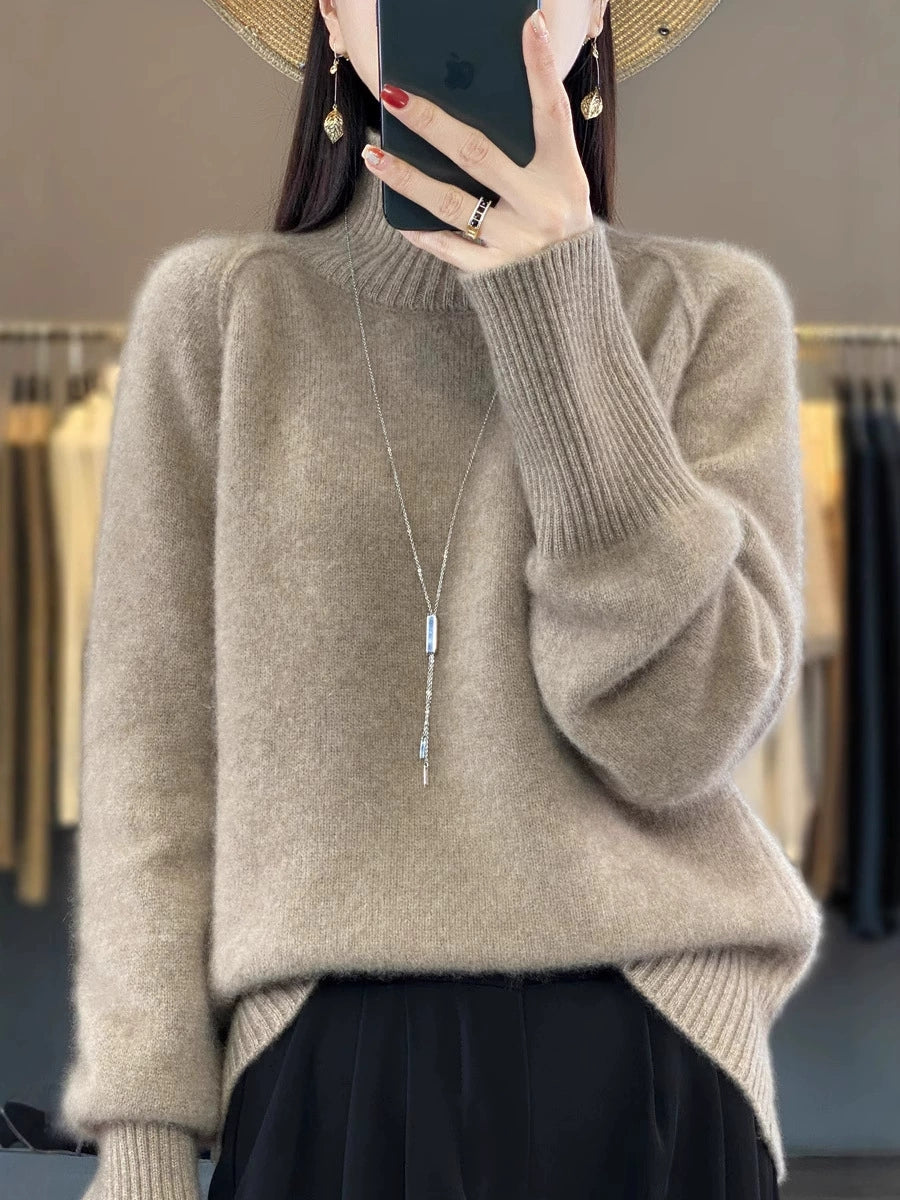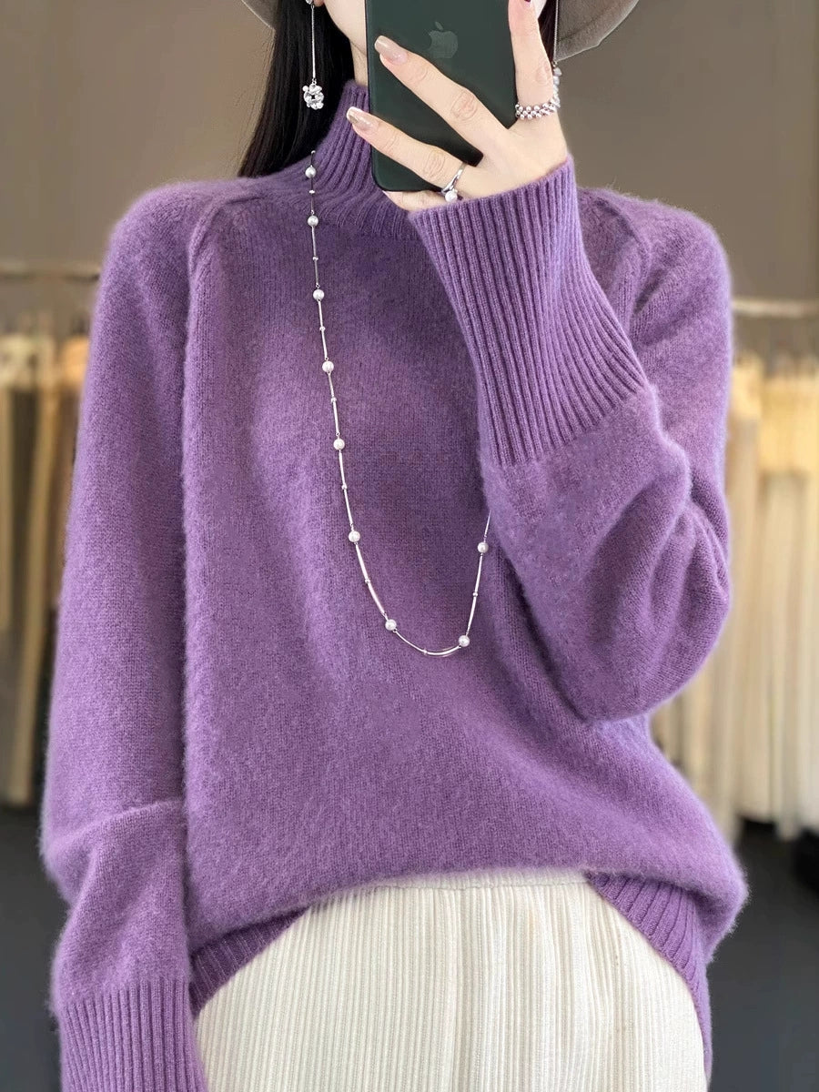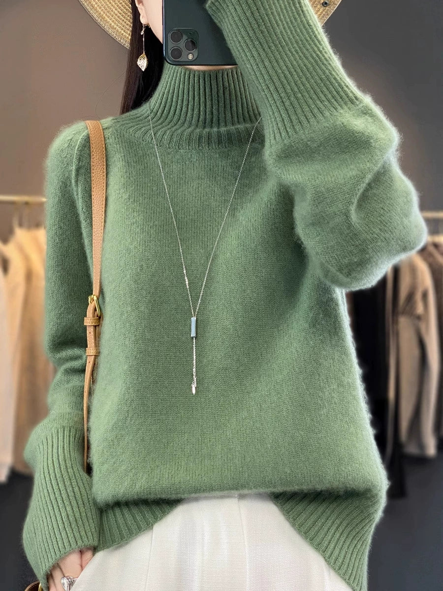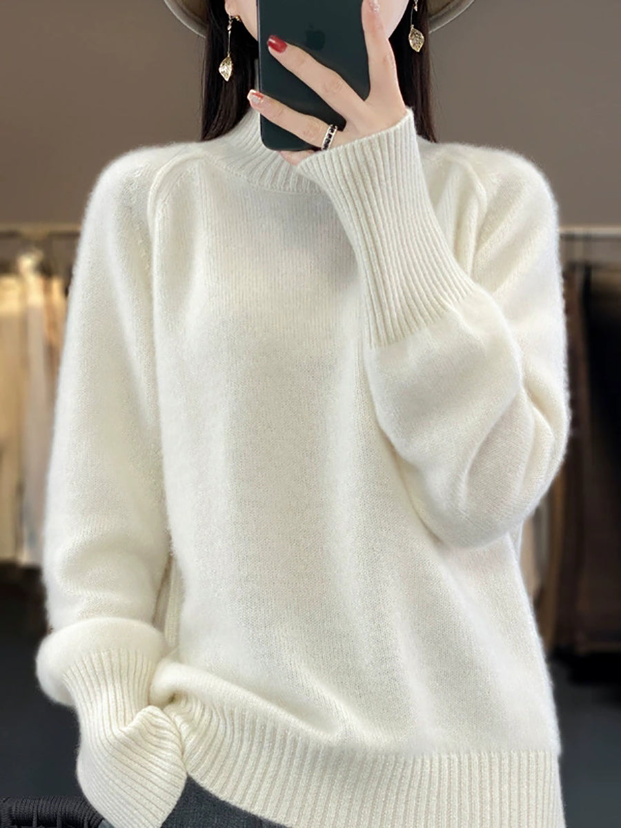 Women Autumn Casual Pure Color Turtleneck Sweater