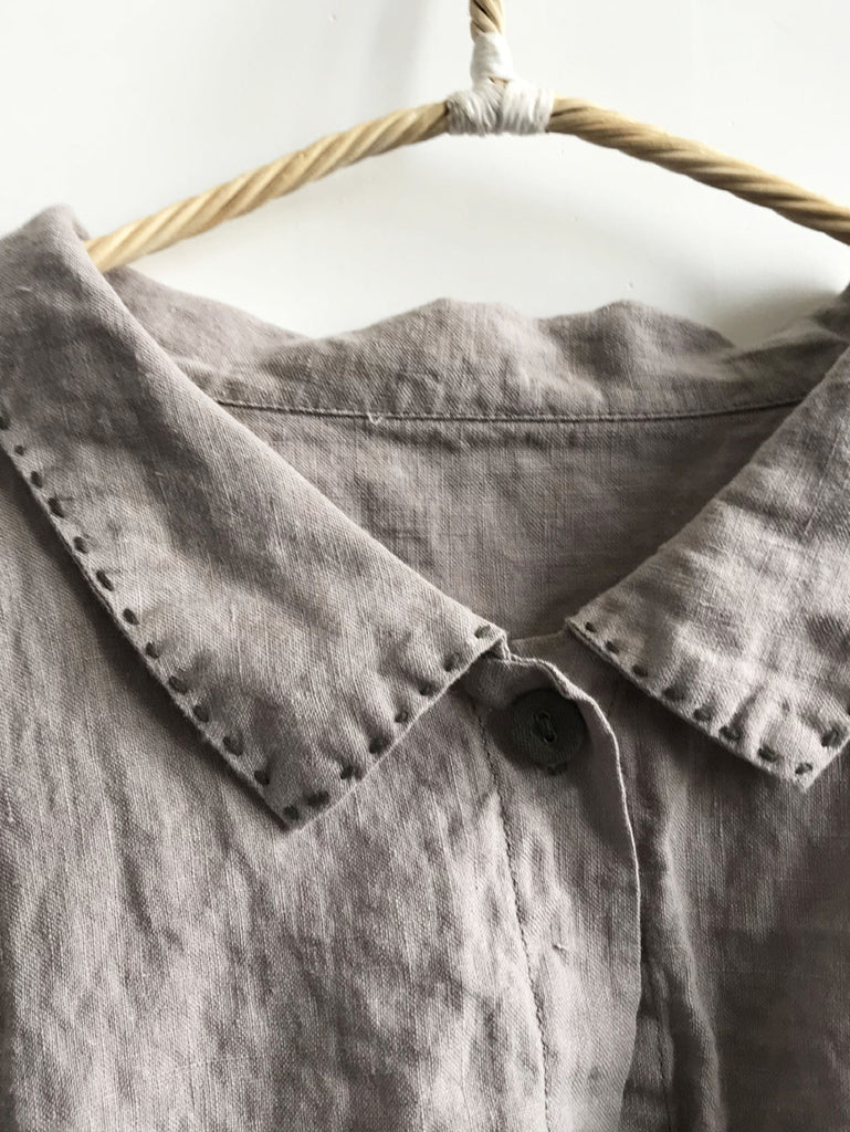 Women Autumn Retro Pure Color Linen Turn-down Collar Shirt