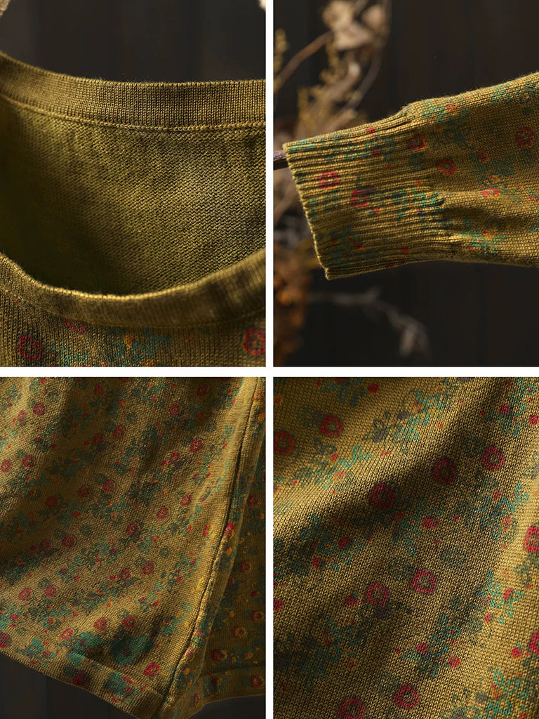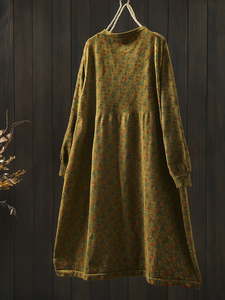 Women Autumn Vintage Floral O-Neck Knitted Dress