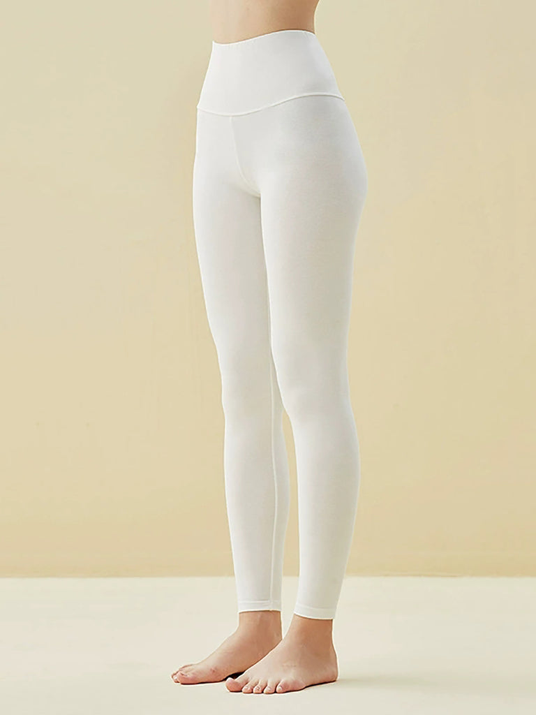 Women Autumn Warm Pure Color High Waist Cotton Leggings