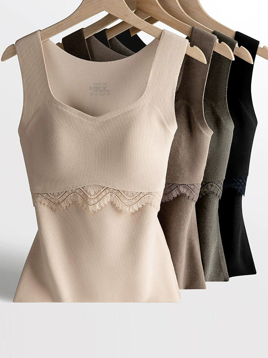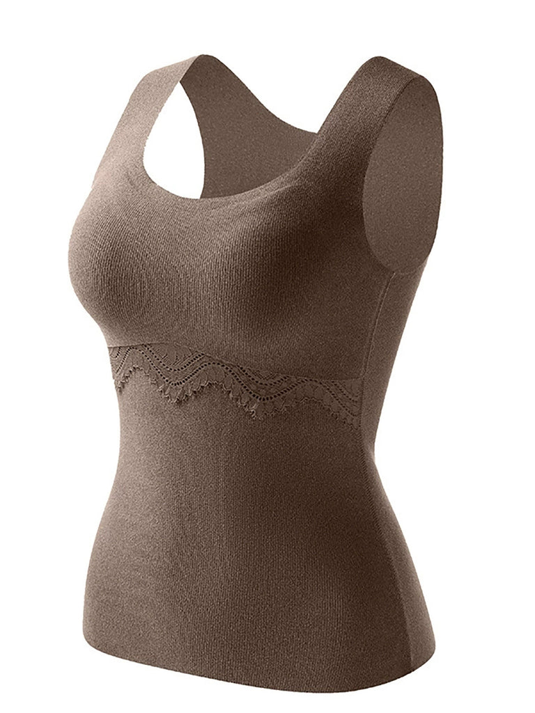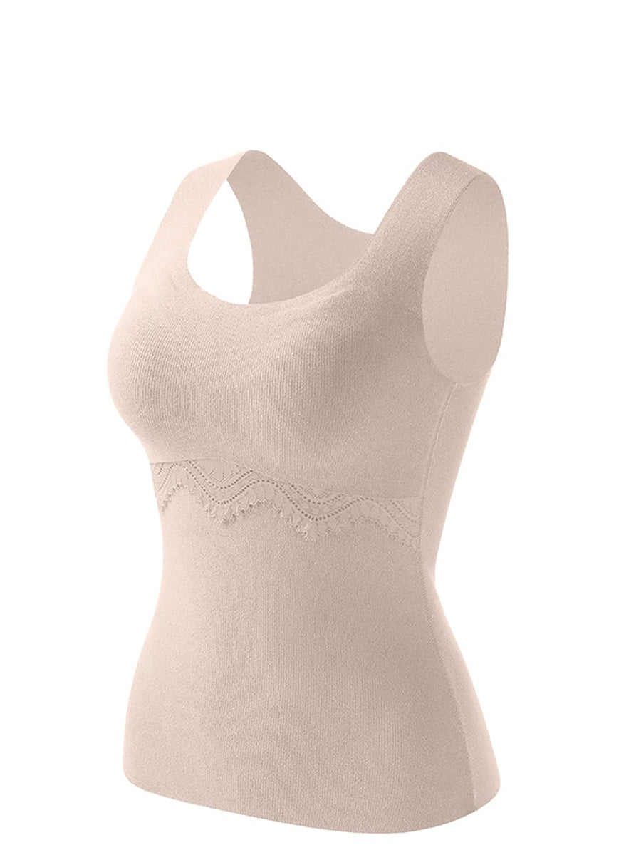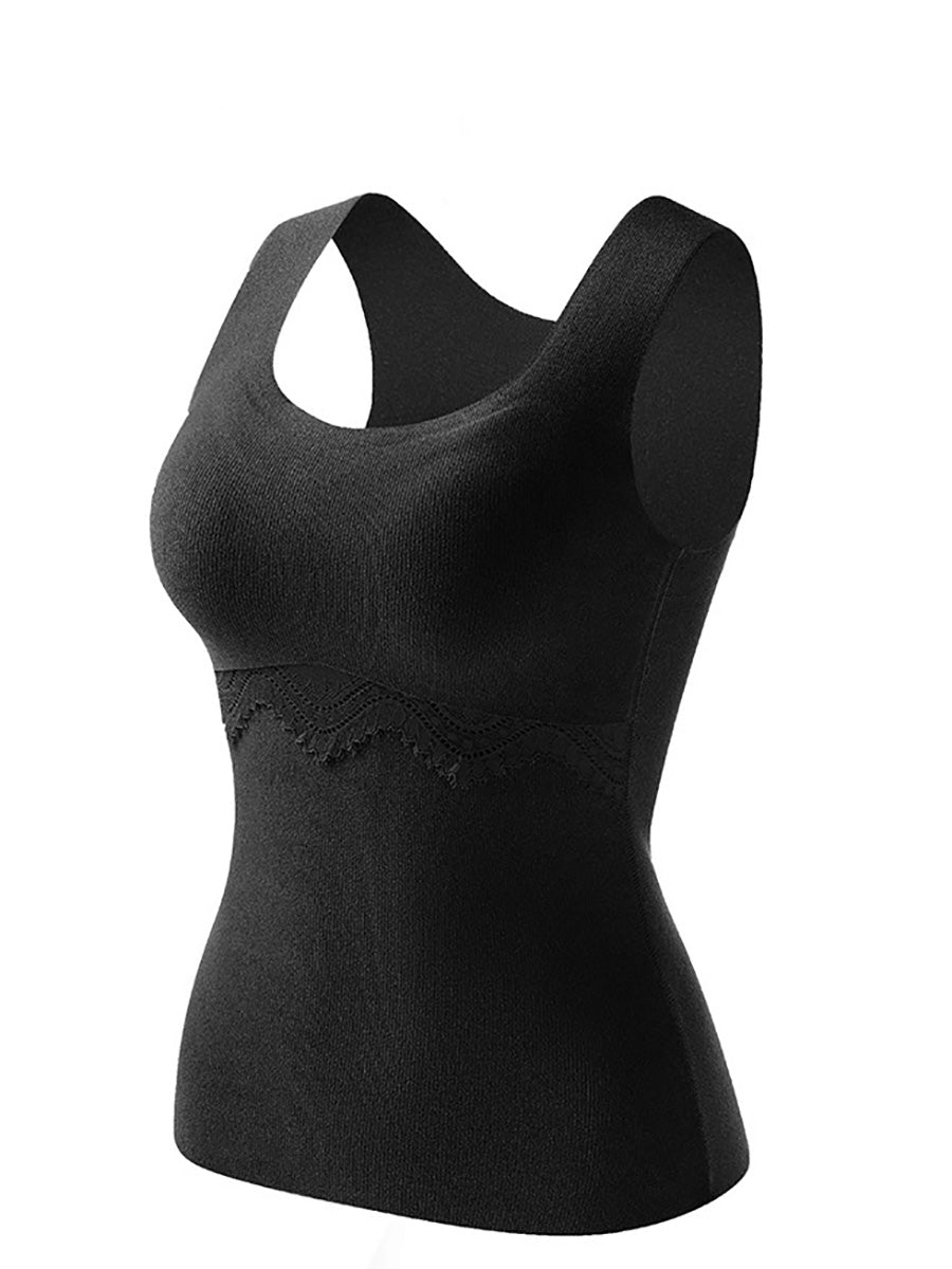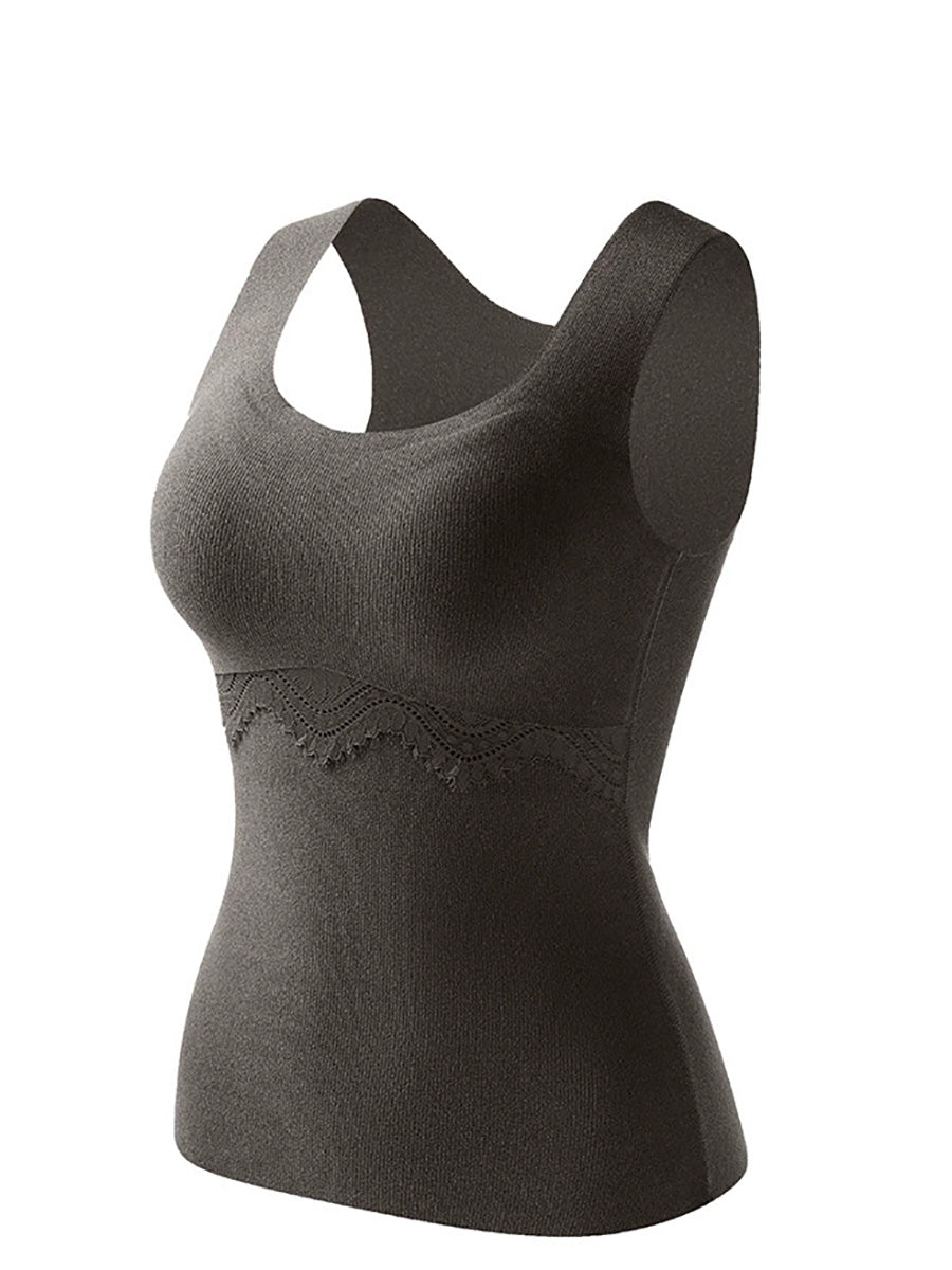 Women Autumn Warm Pure Color U-Neck Base Vest