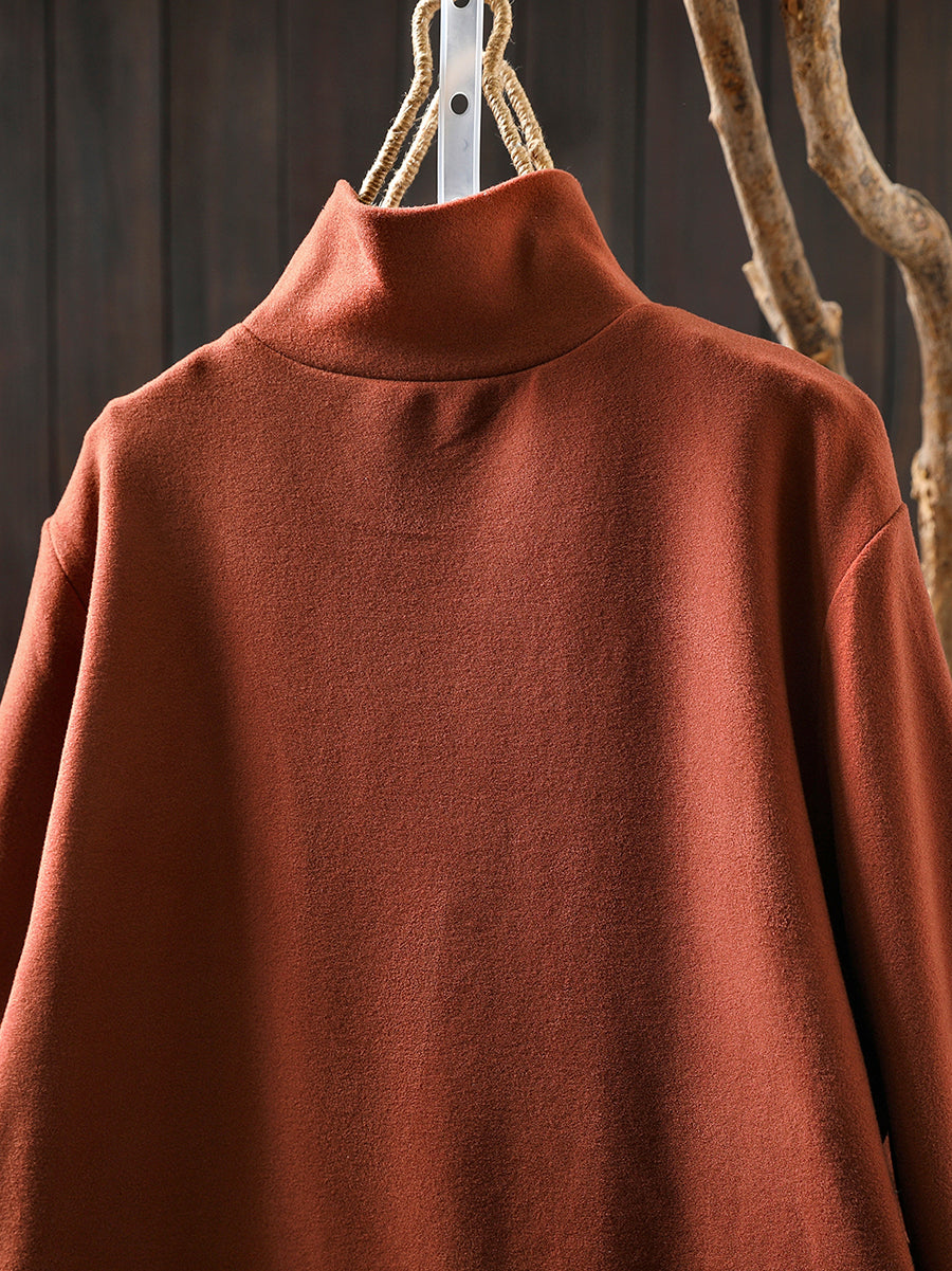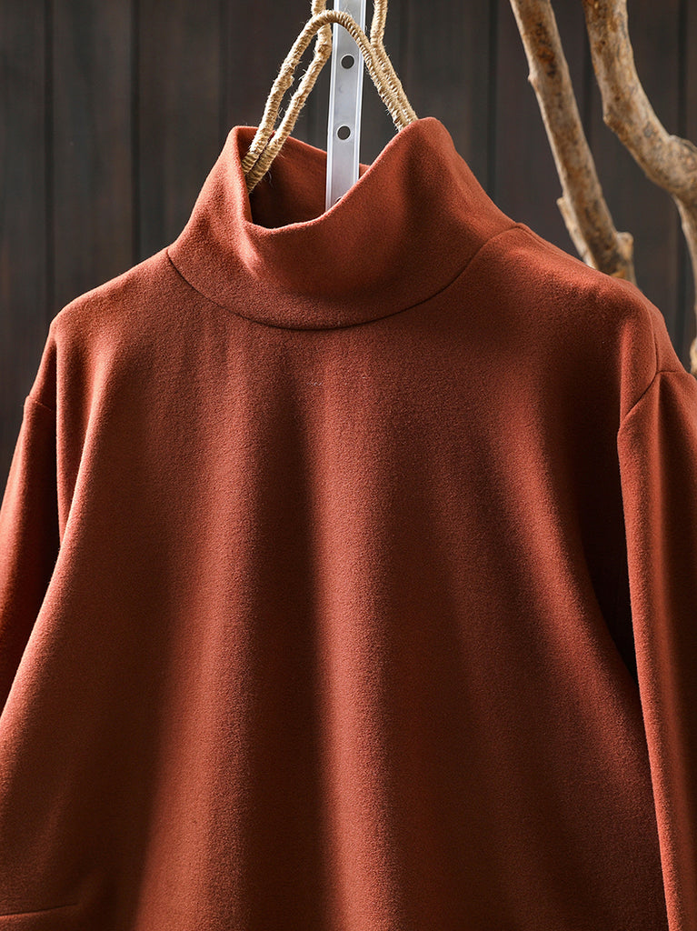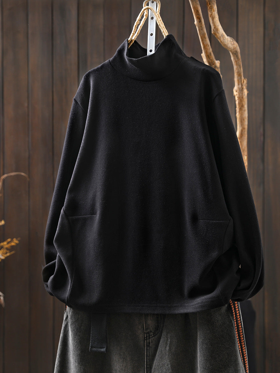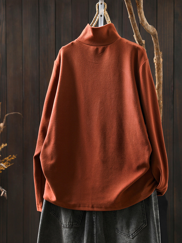 Women Casual Autumn Pure Color Turtleneck Cotton Blouse