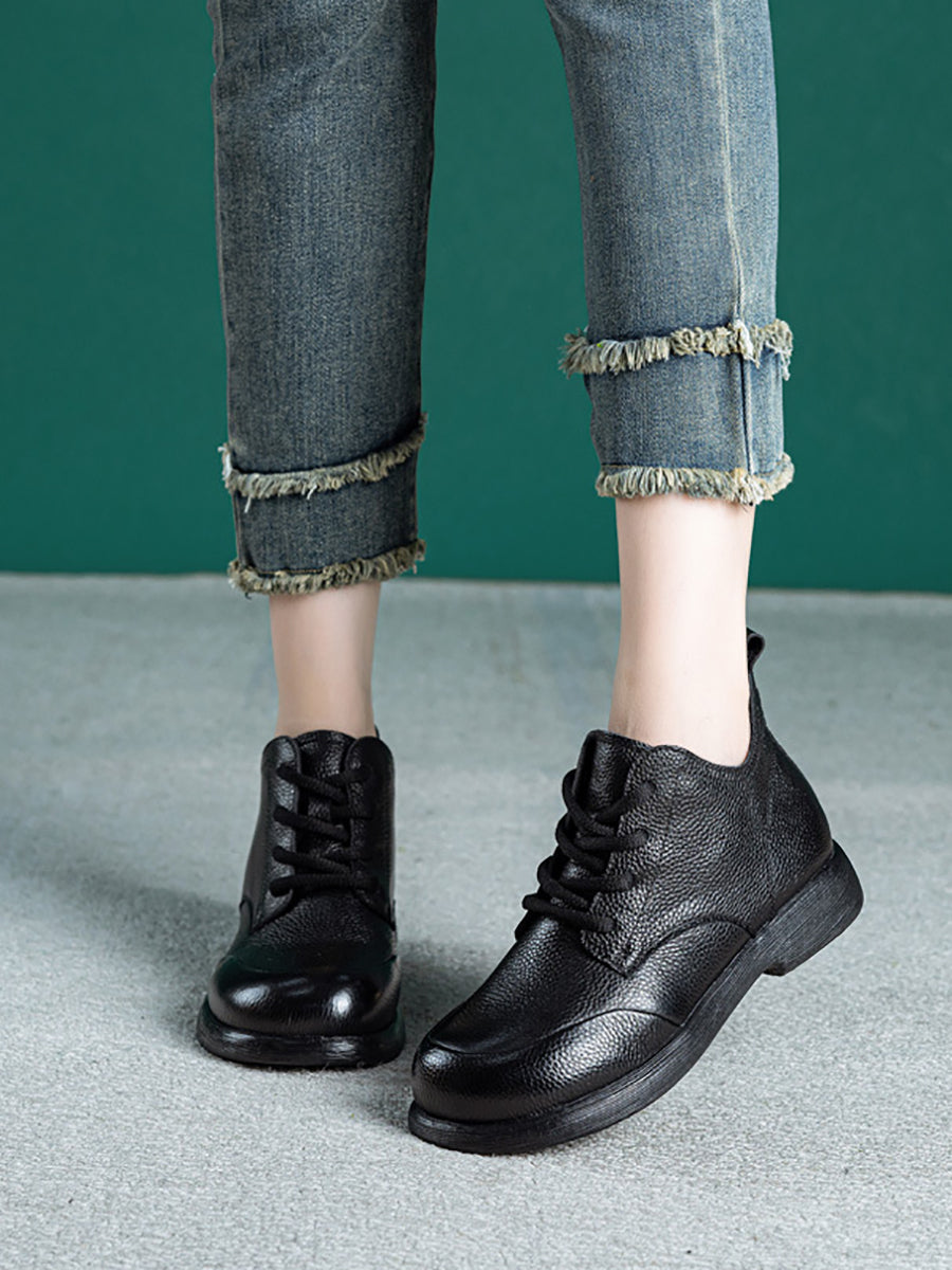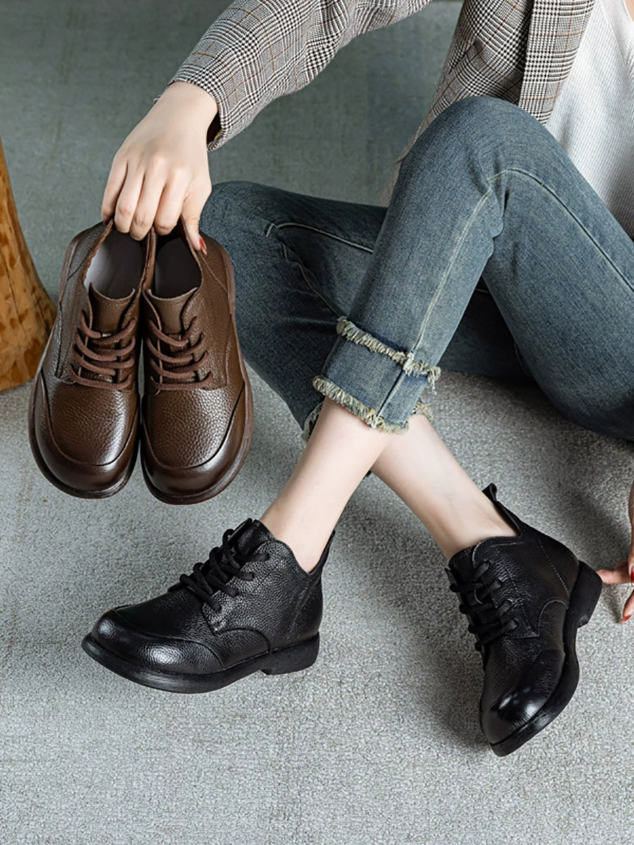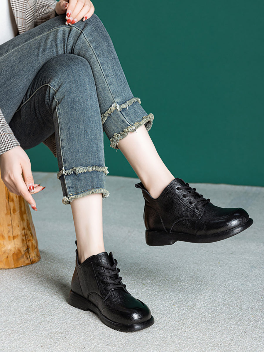 Women Casual Pure Color Genuine Leather Ankle Boots