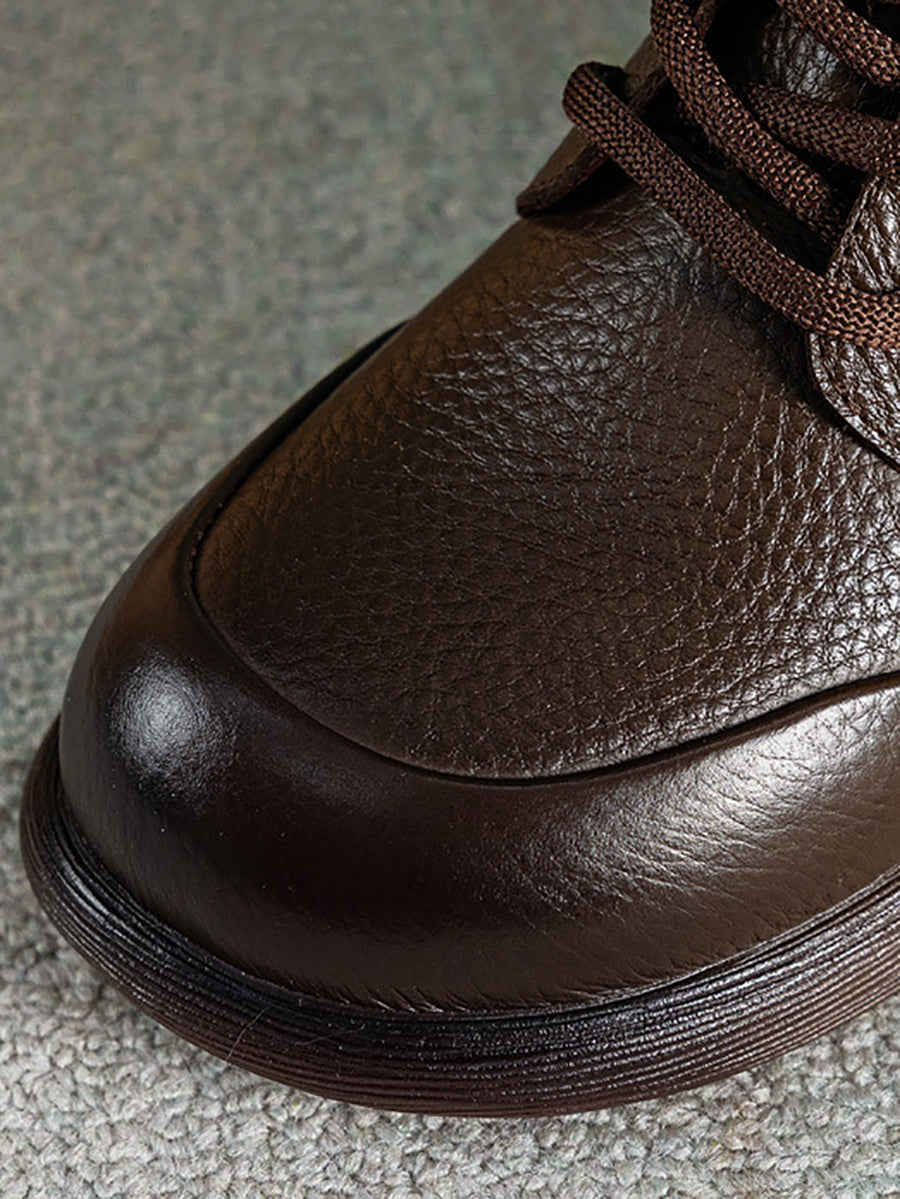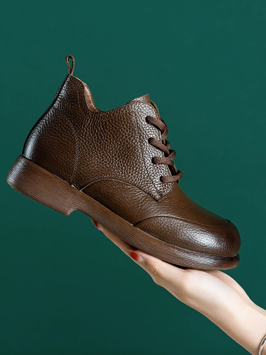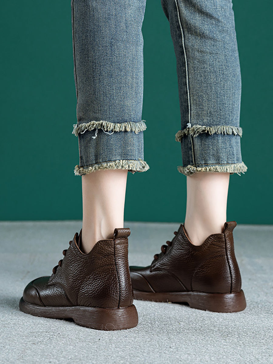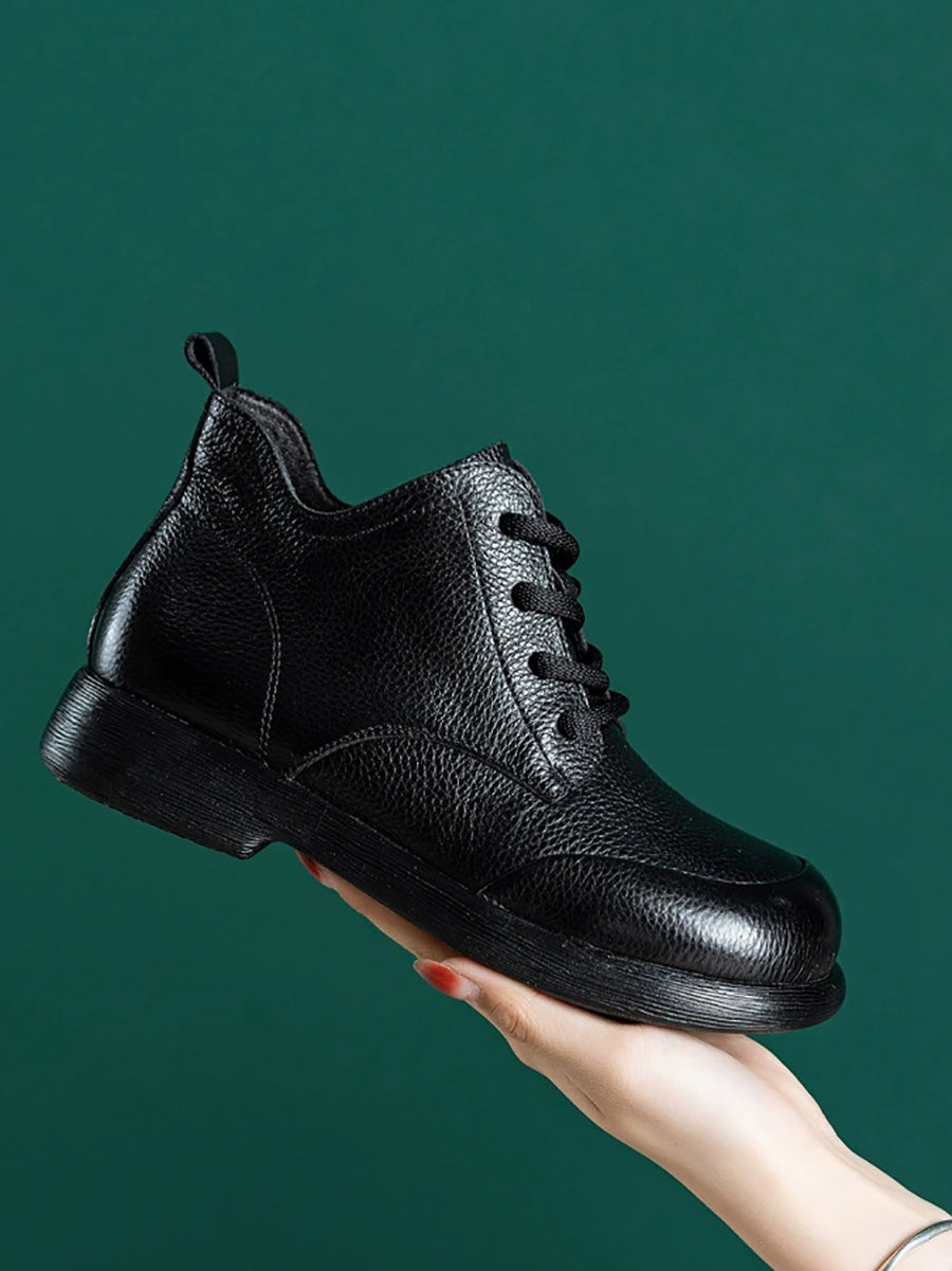 Women Casual Pure Color Genuine Leather Ankle Boots