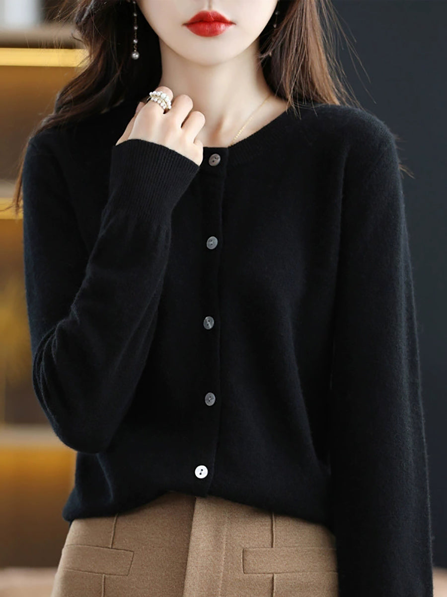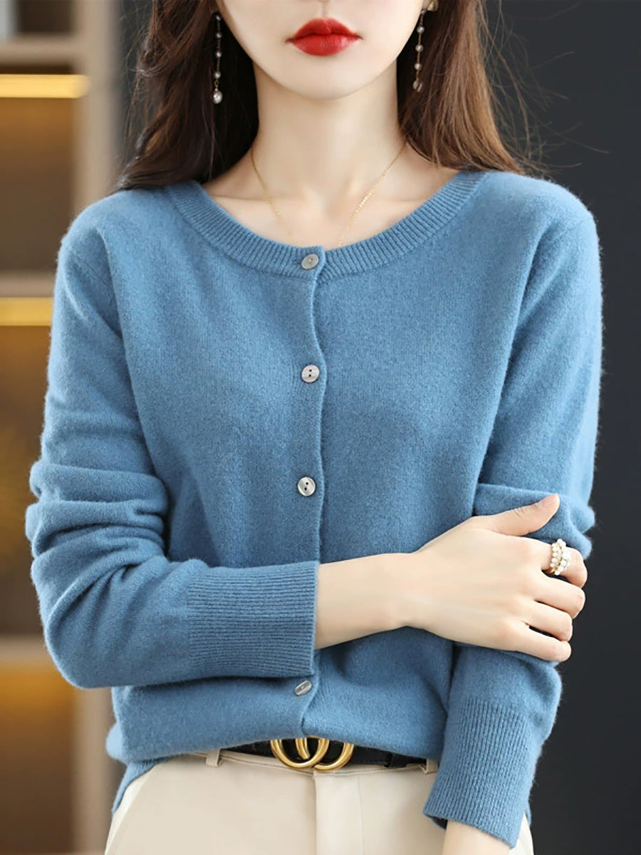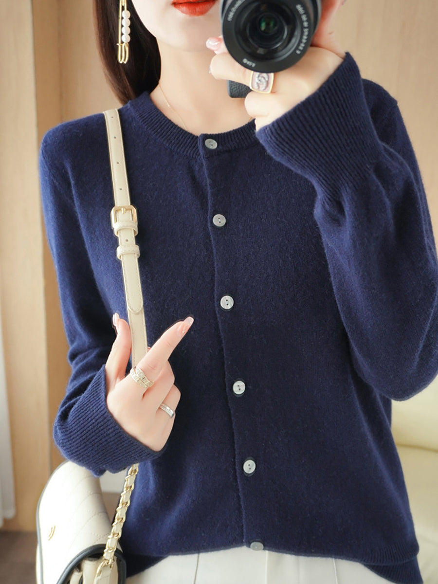 Women Casual Spring Pure Color O-Neck Sweater