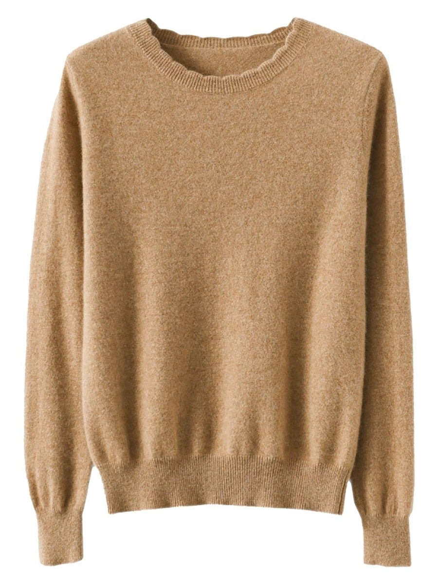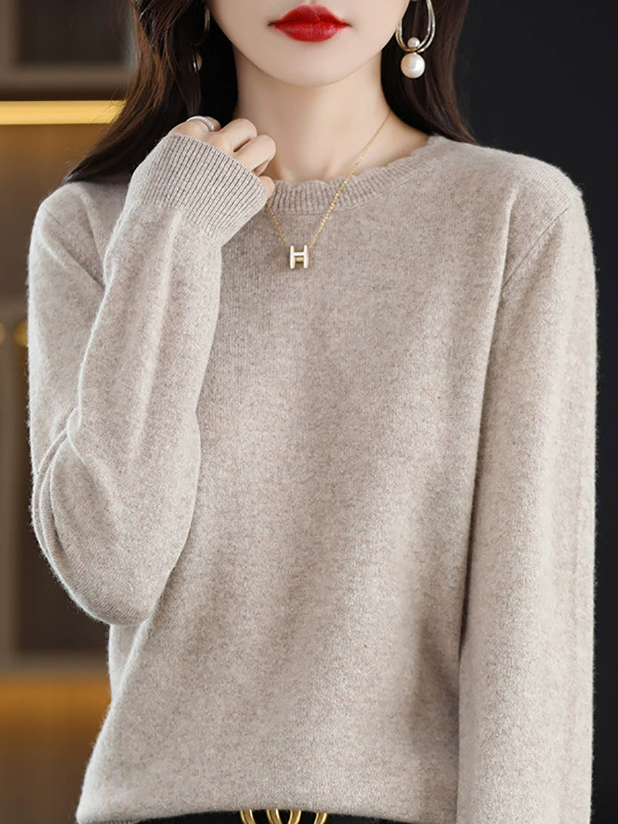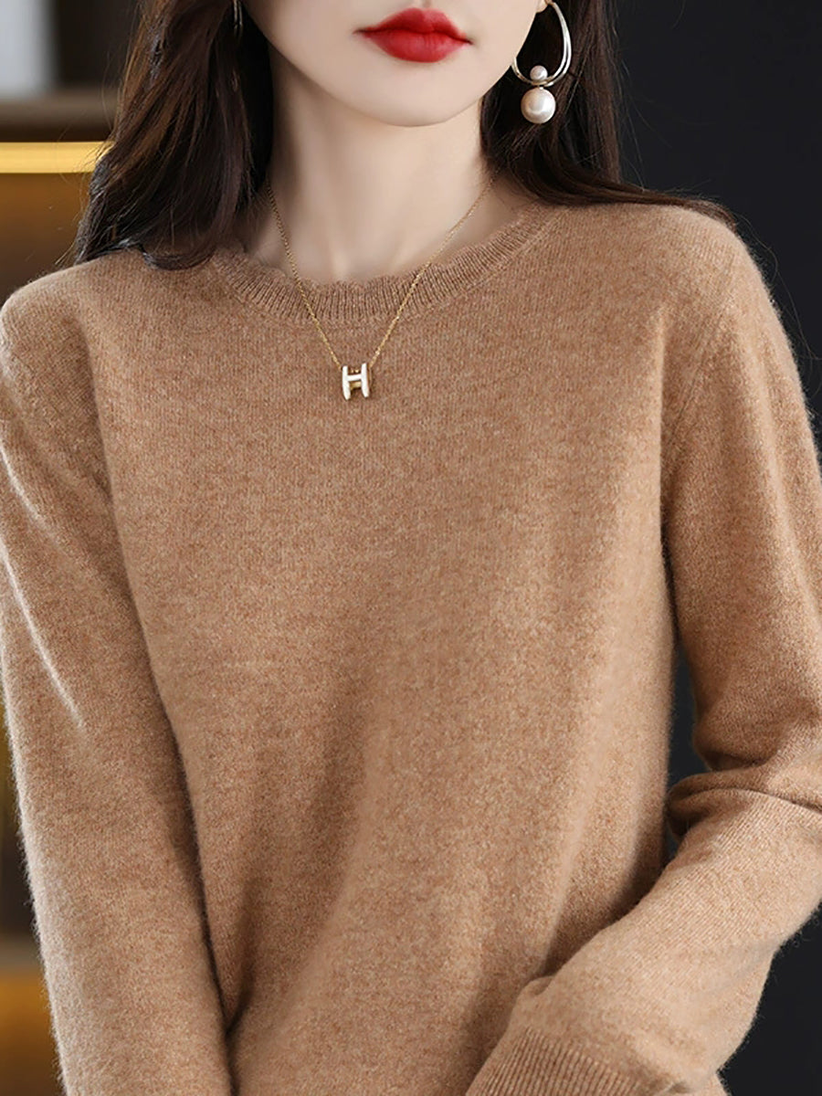 Women Casual Spring Pure Color O-Neck Sweater