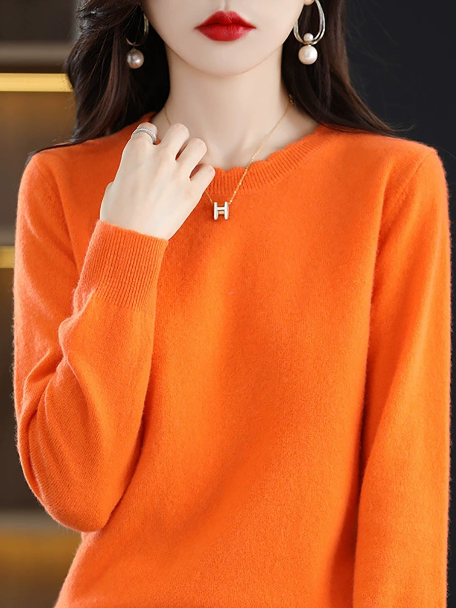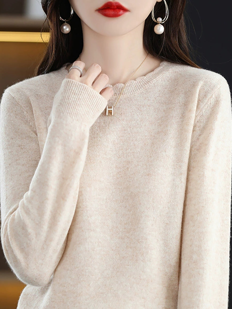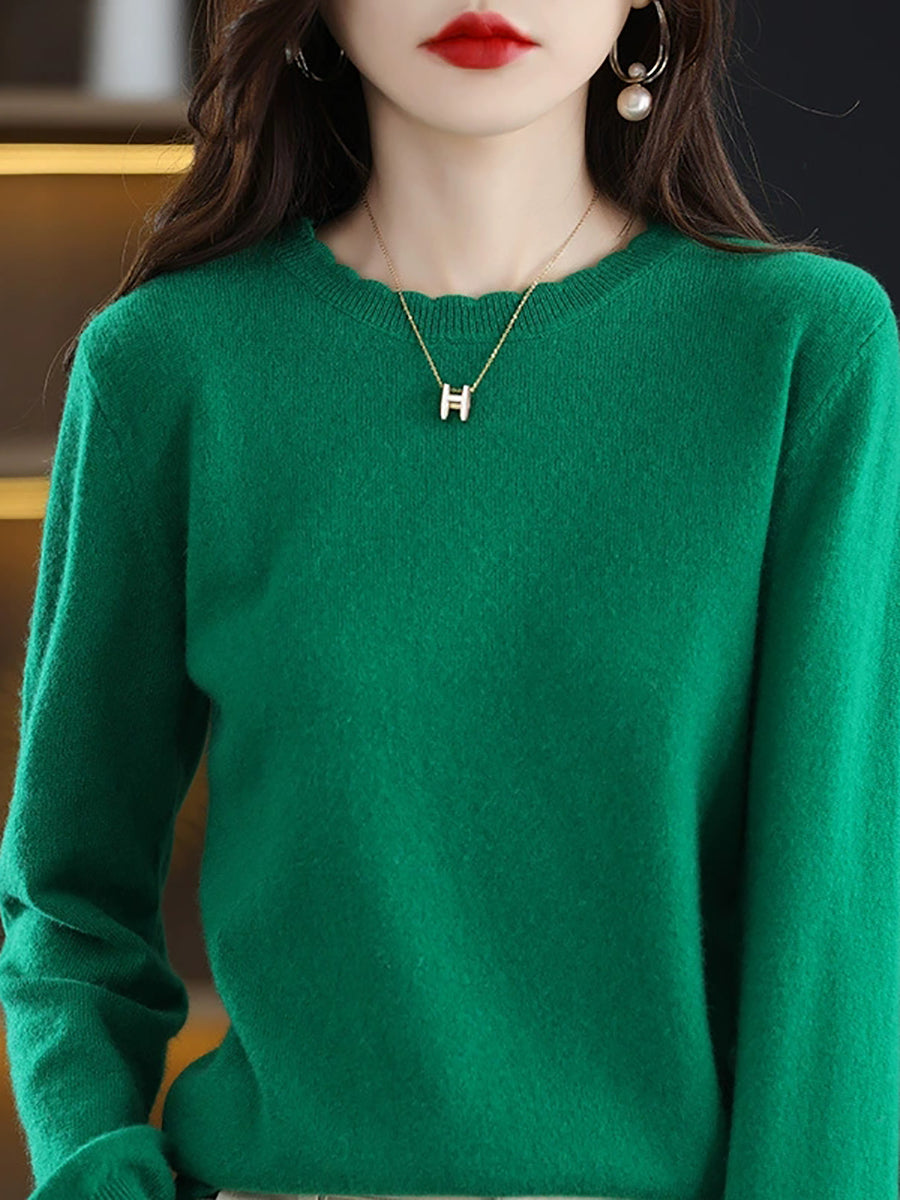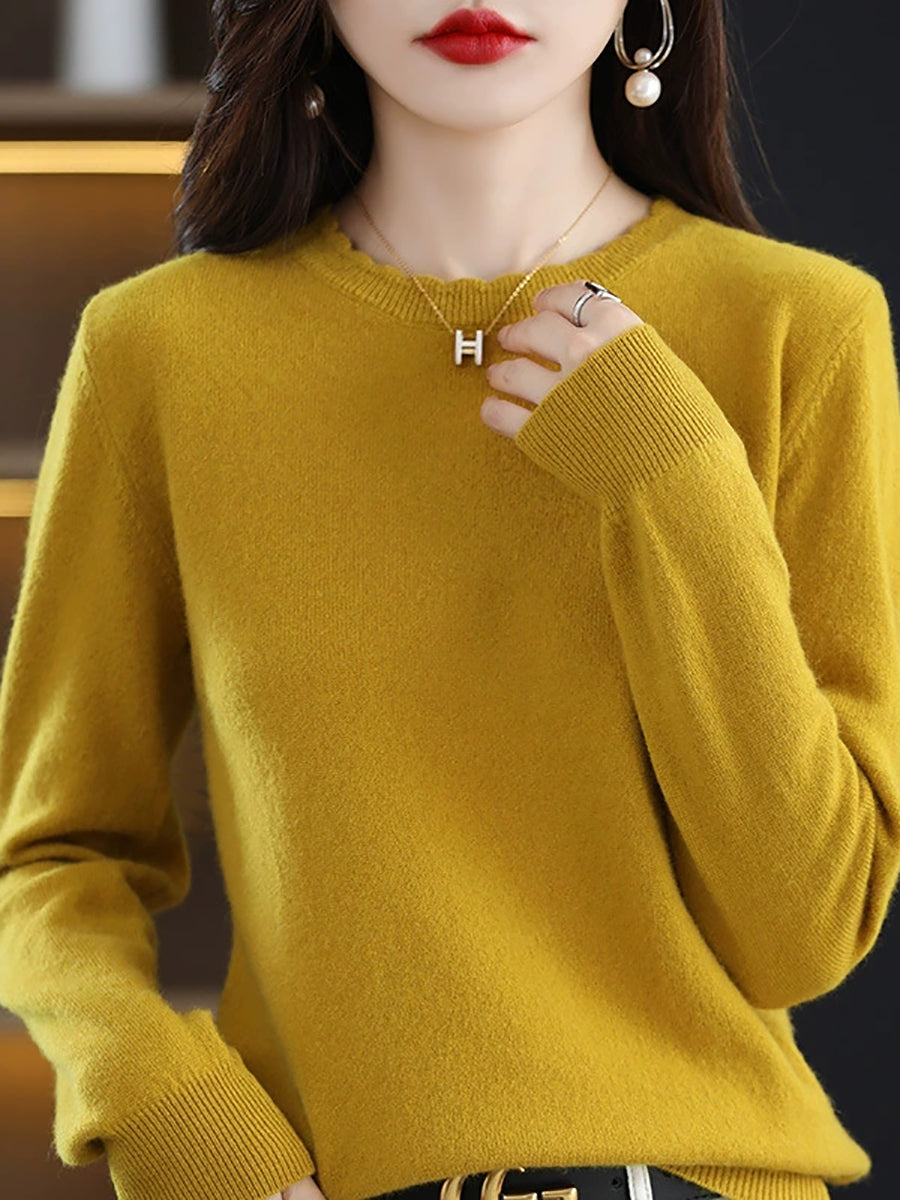 Women Casual Spring Pure Color O-Neck Sweater