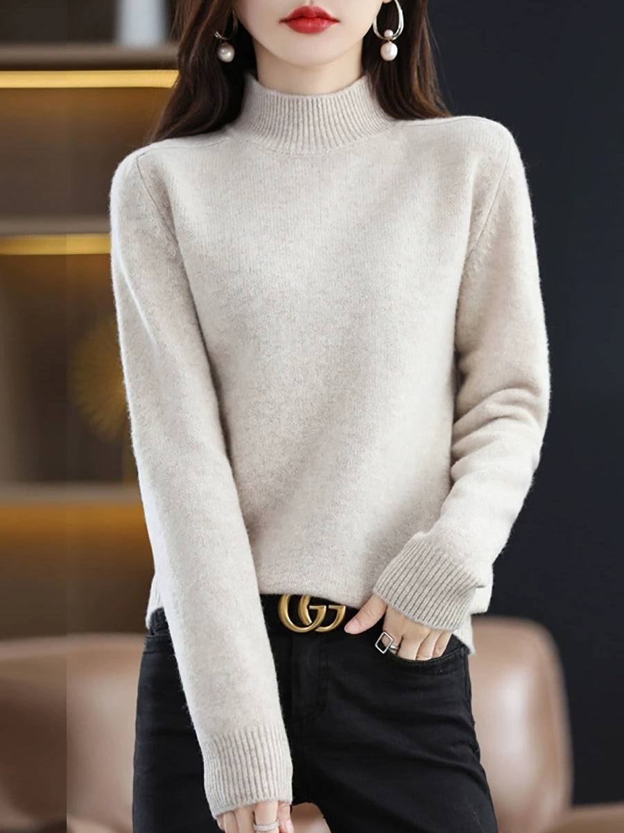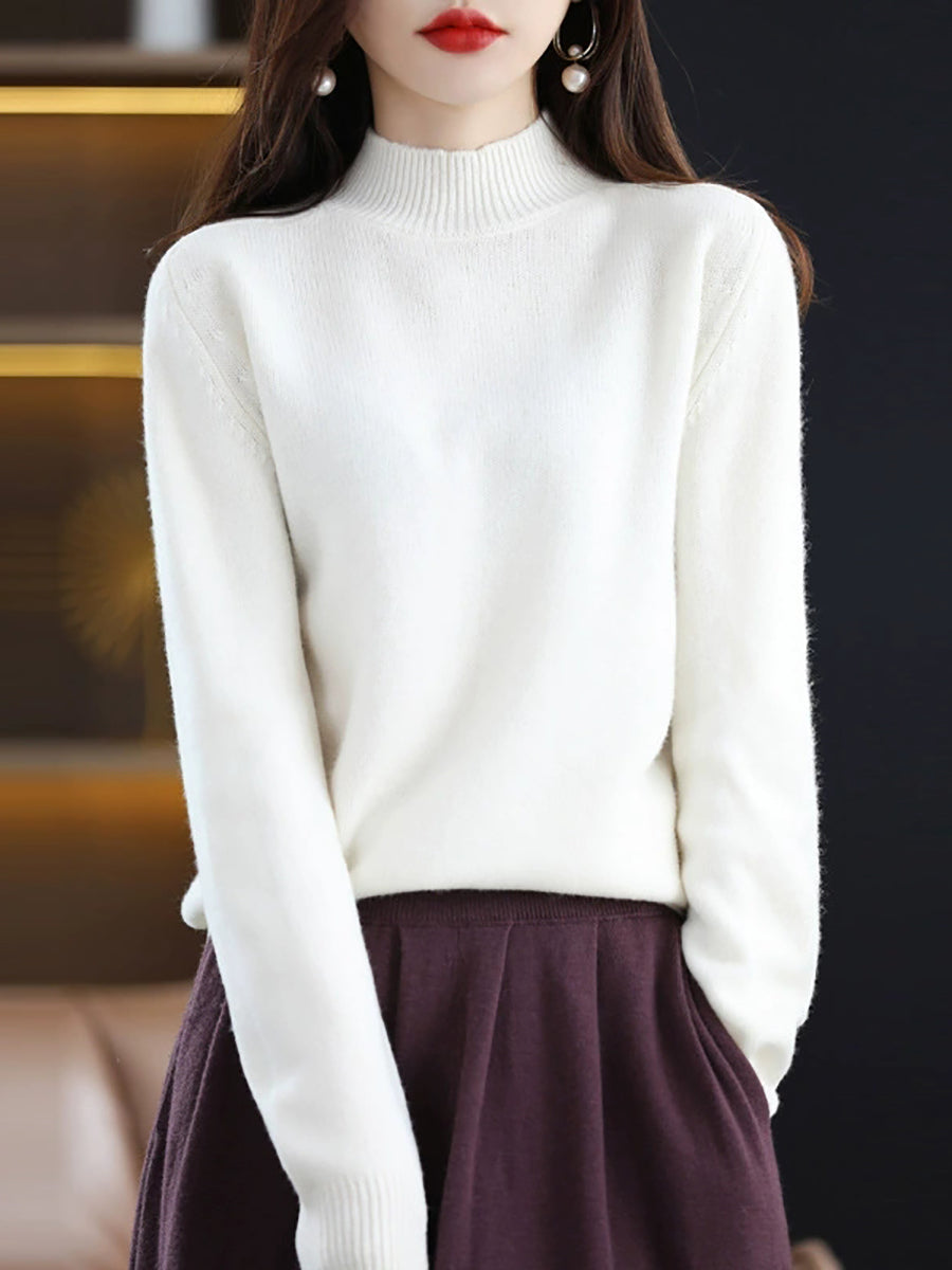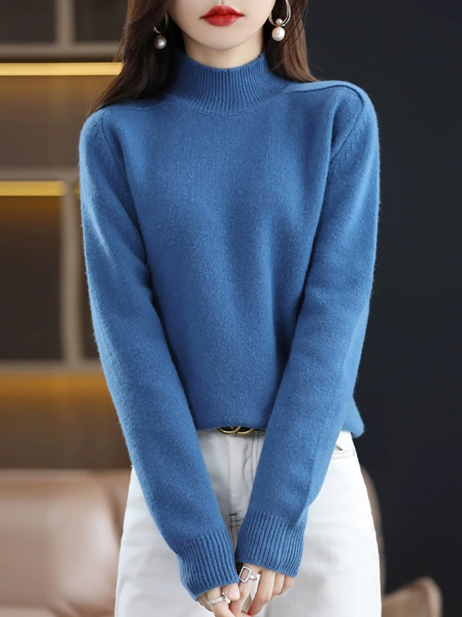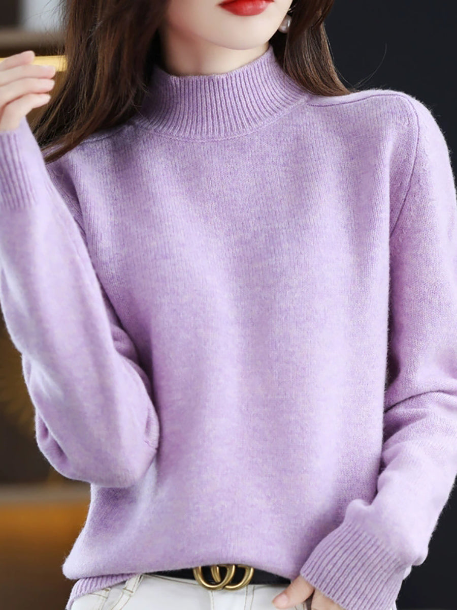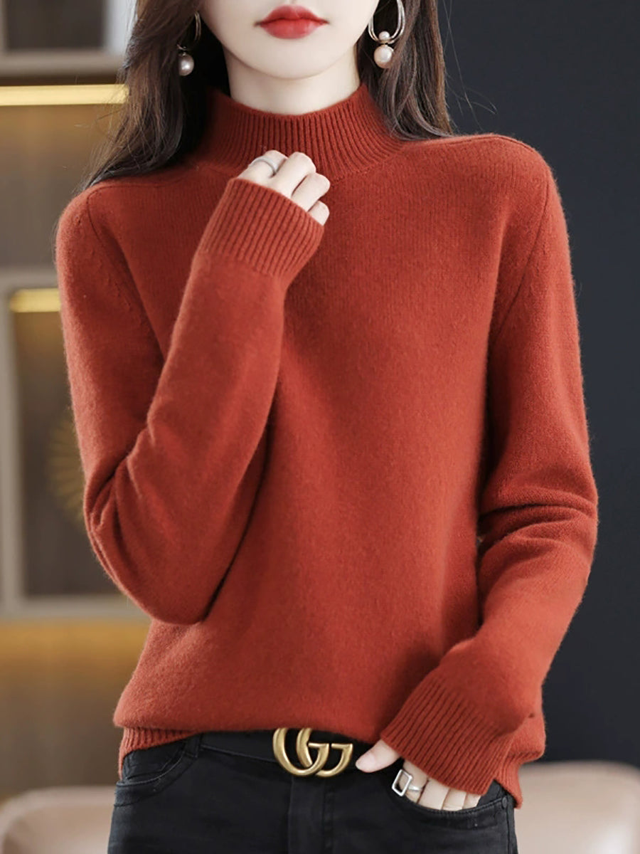 Women Casual Winter Pure Color Half-Turtleneck Sweater