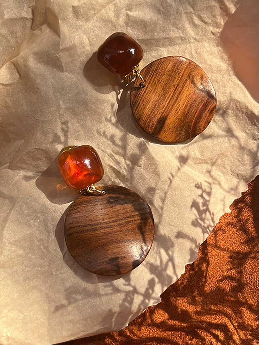 Women Ethnic Wooden Geometric Resin Earrings
