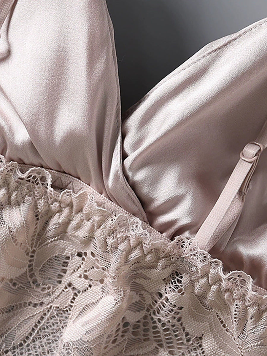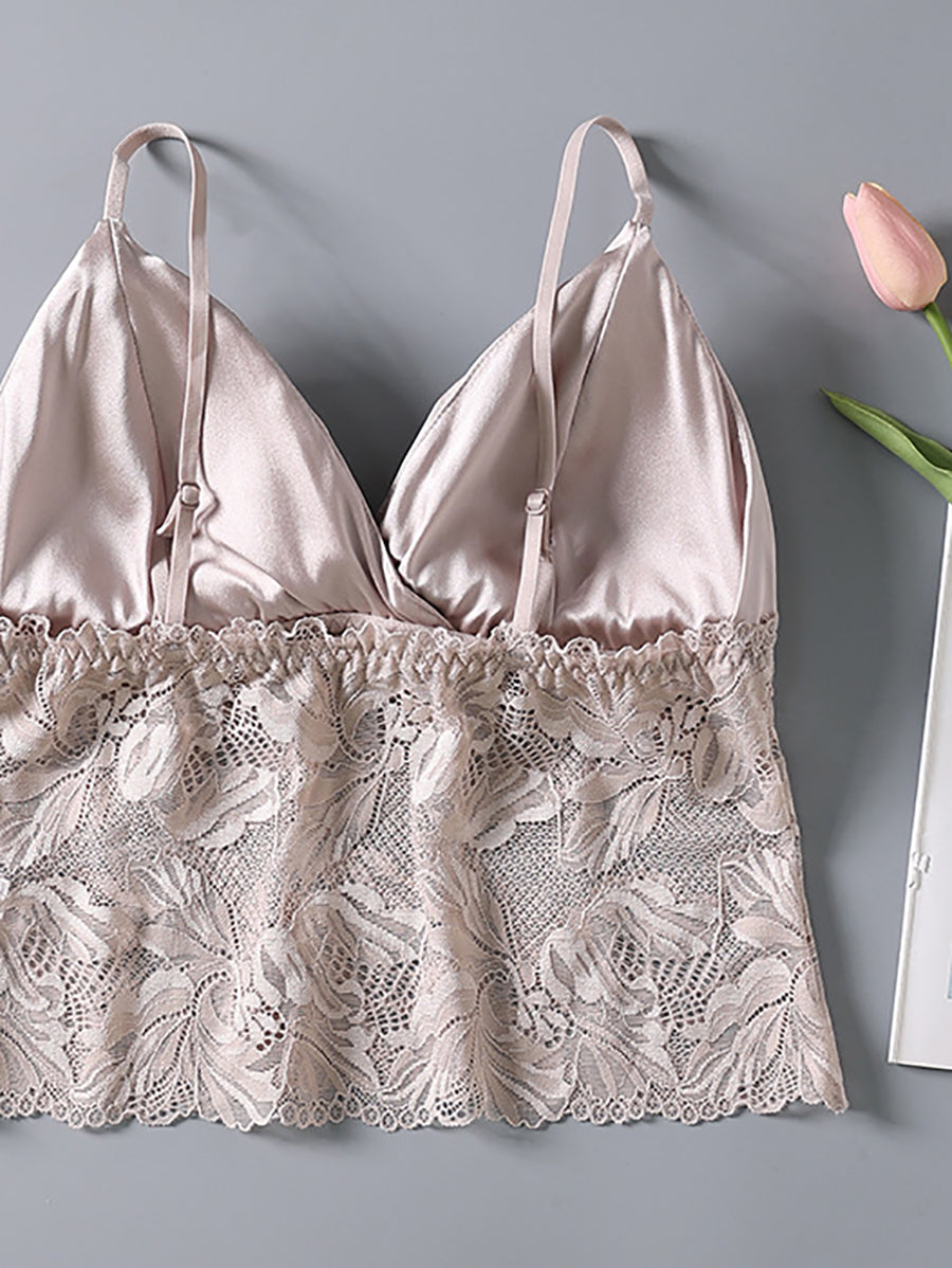 Women Flower Lace Silk Wireless Bra