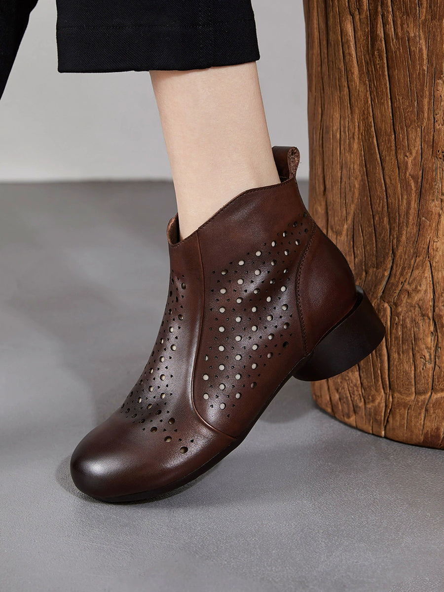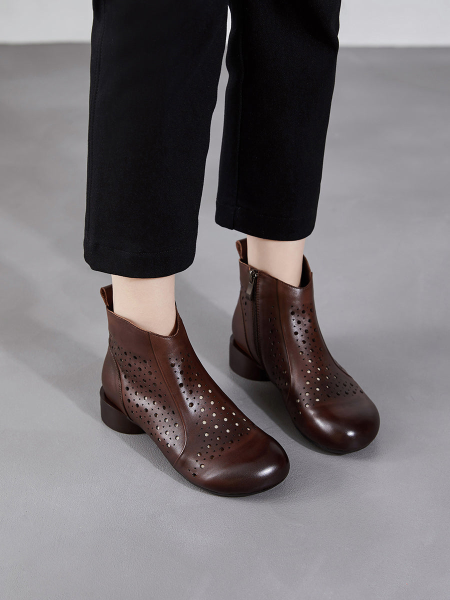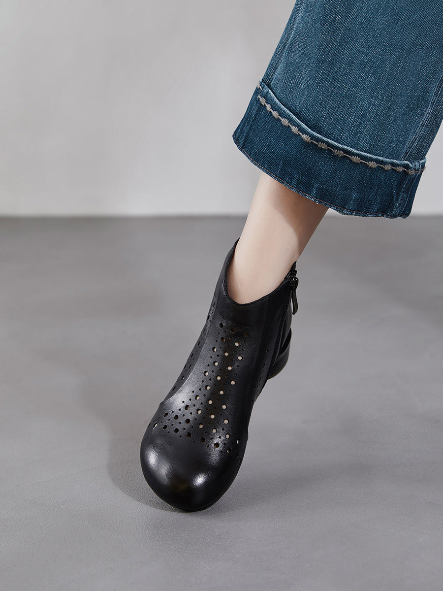 Women Genuine Leather Hollow Out Low Heel Boots