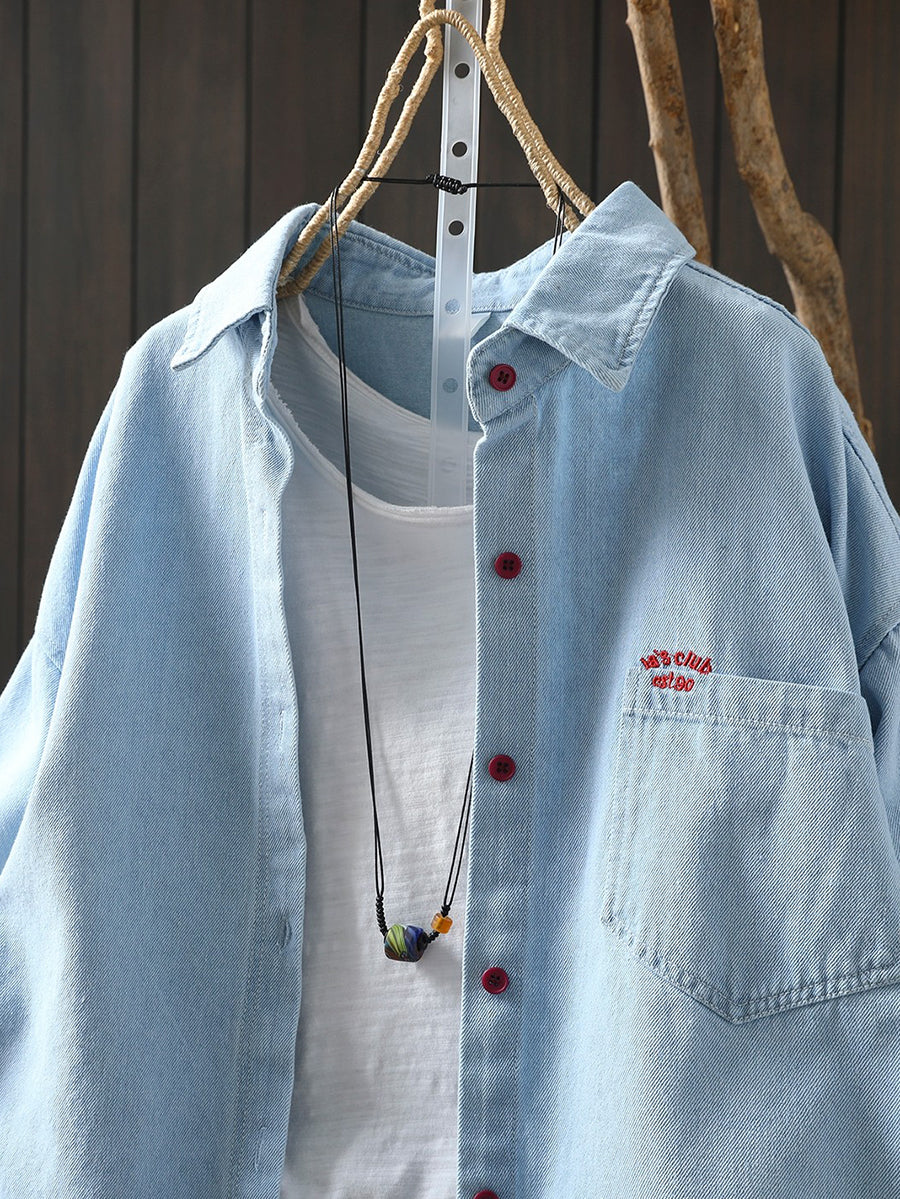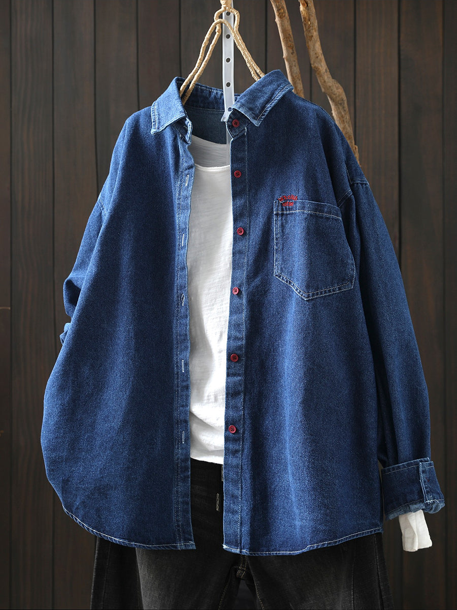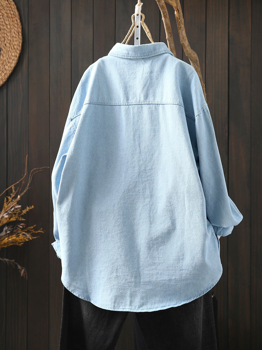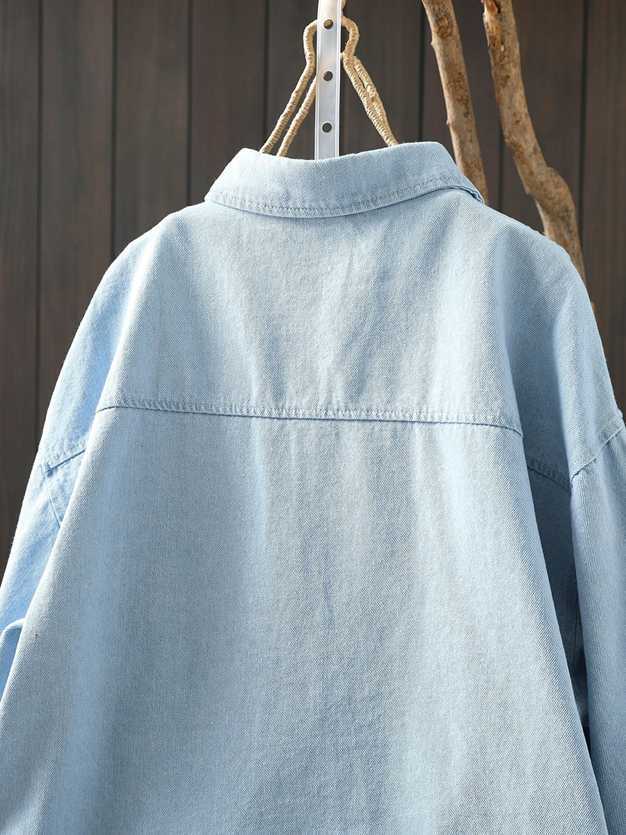 Women Spring Artsy Embroidery 100%Cotton Shirt