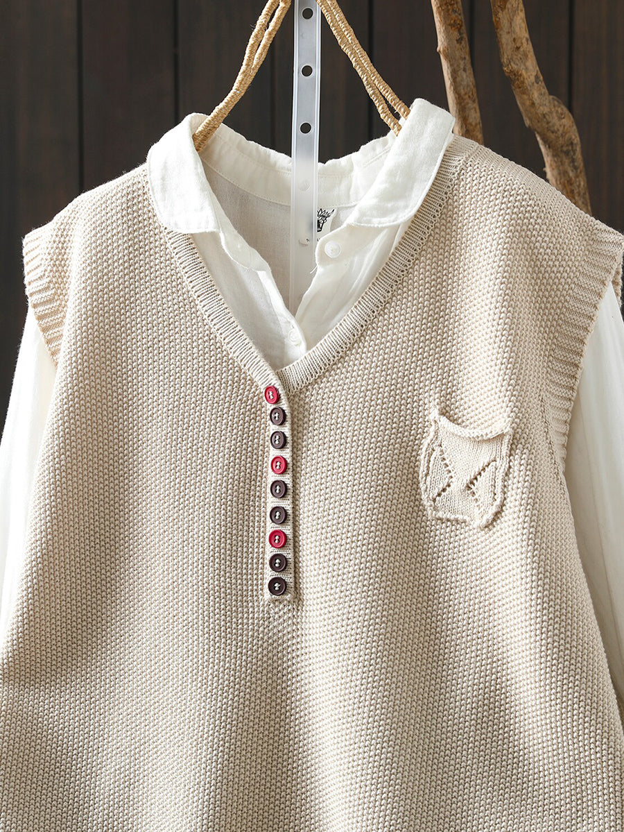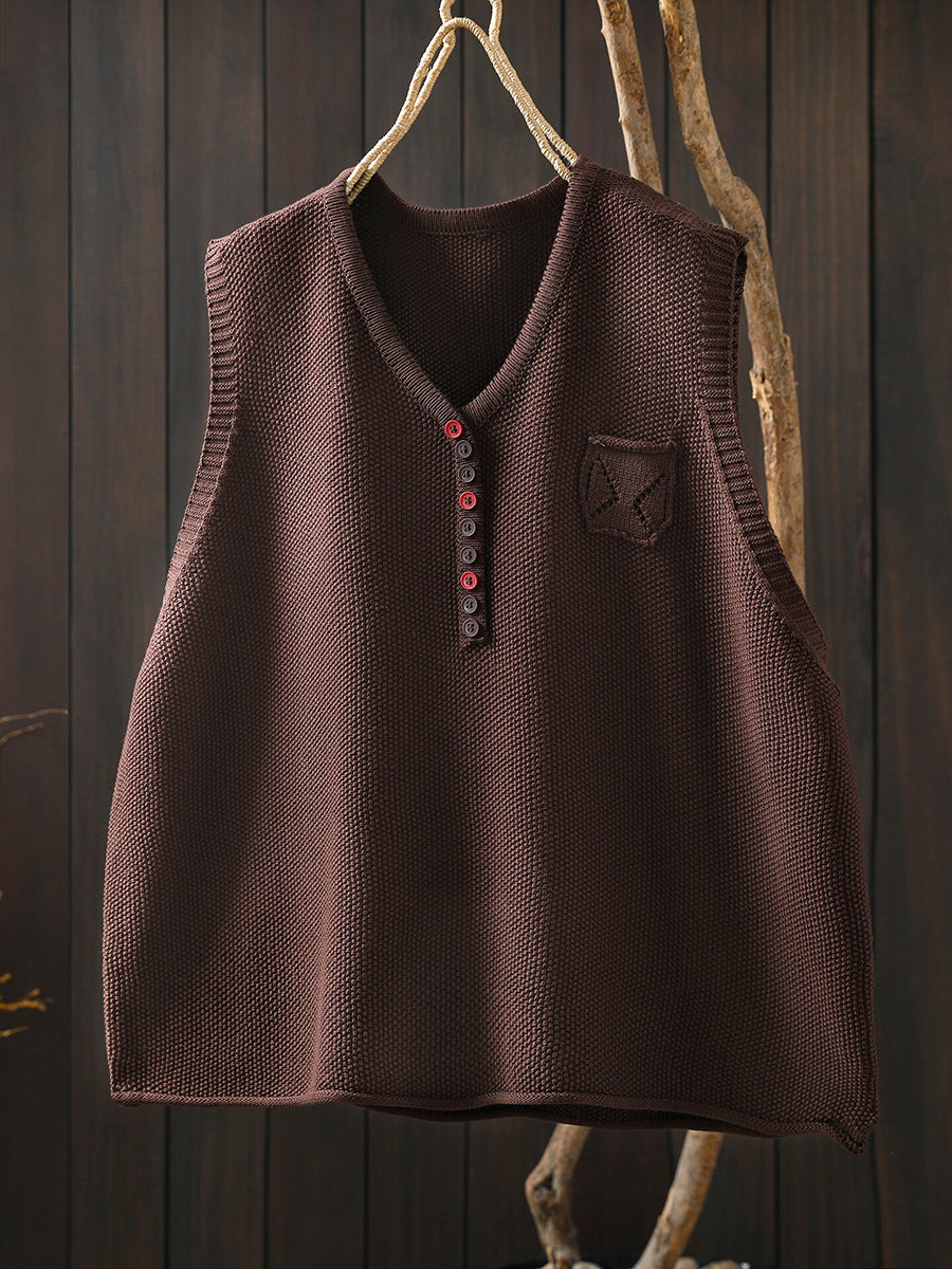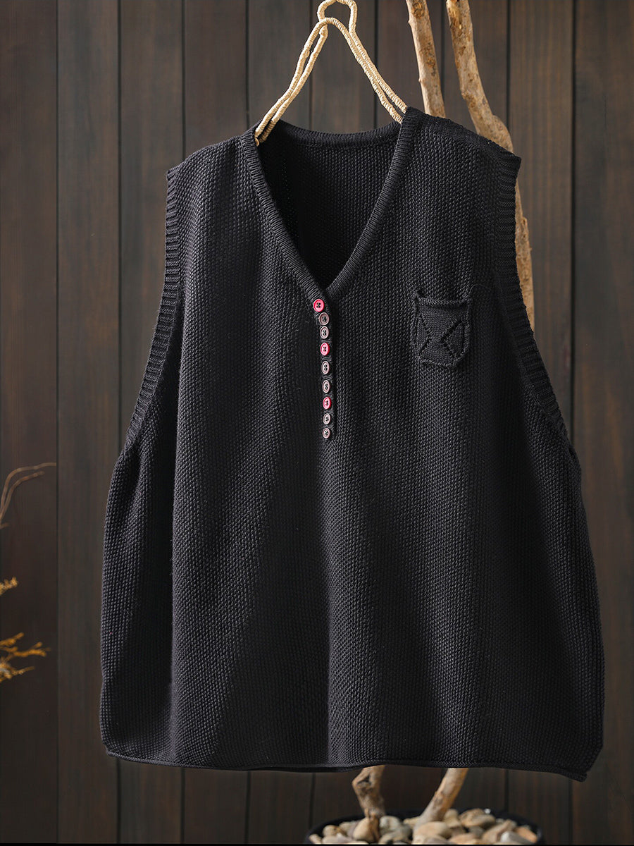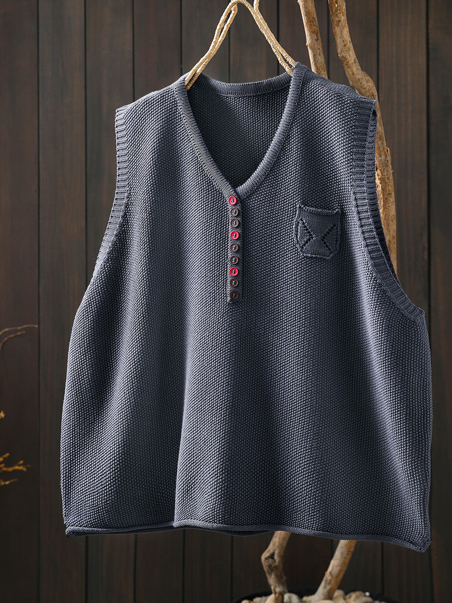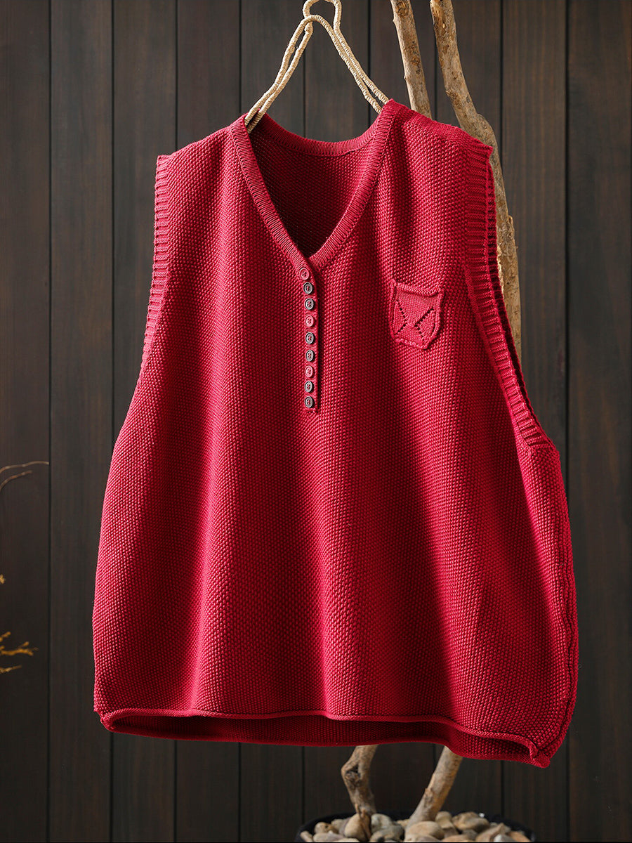 Women Spring Artsy Knitted V-Neck Vest