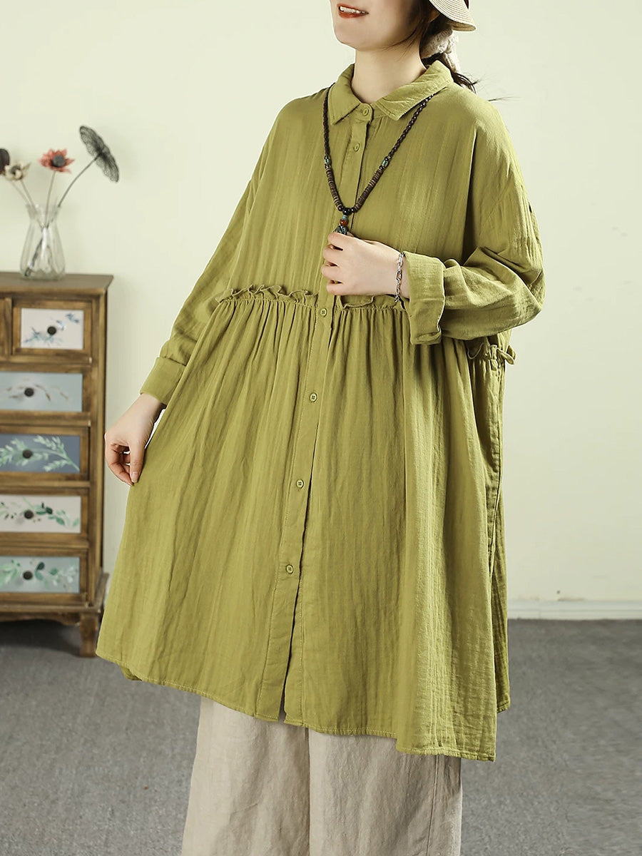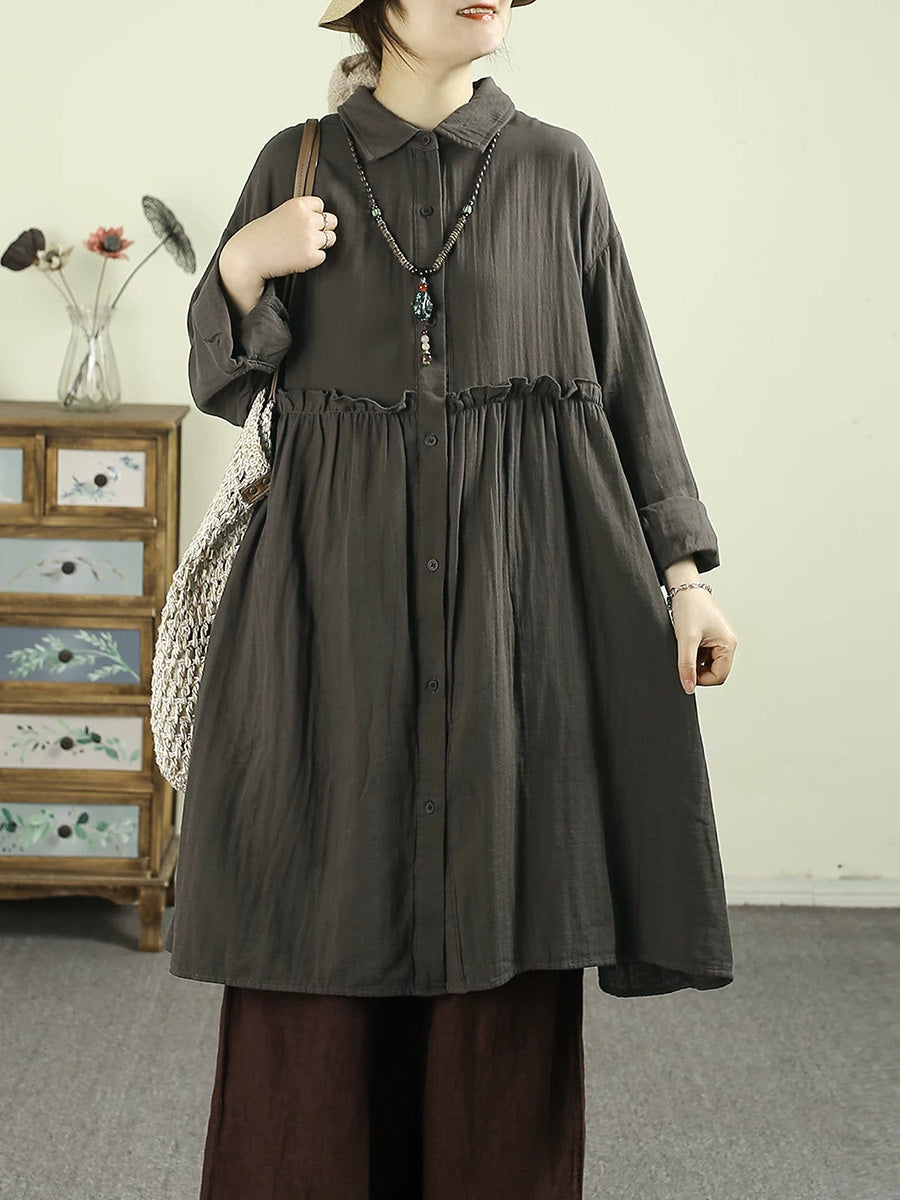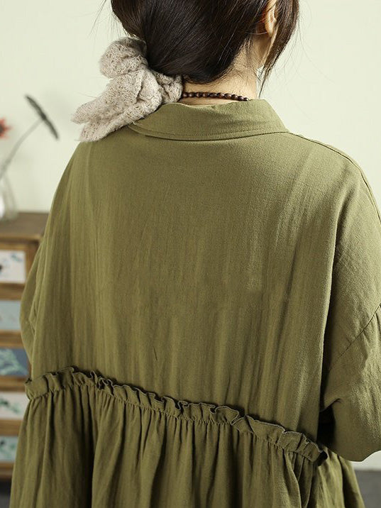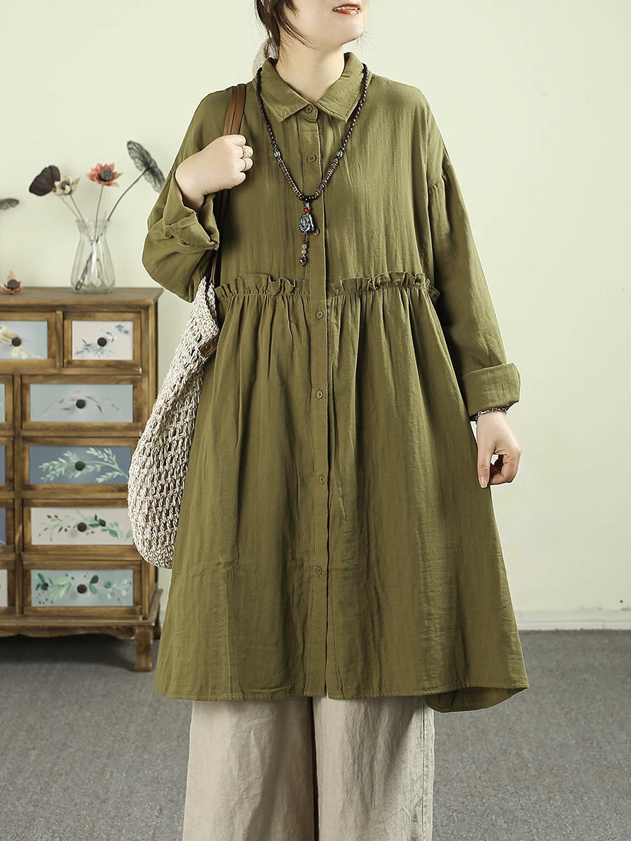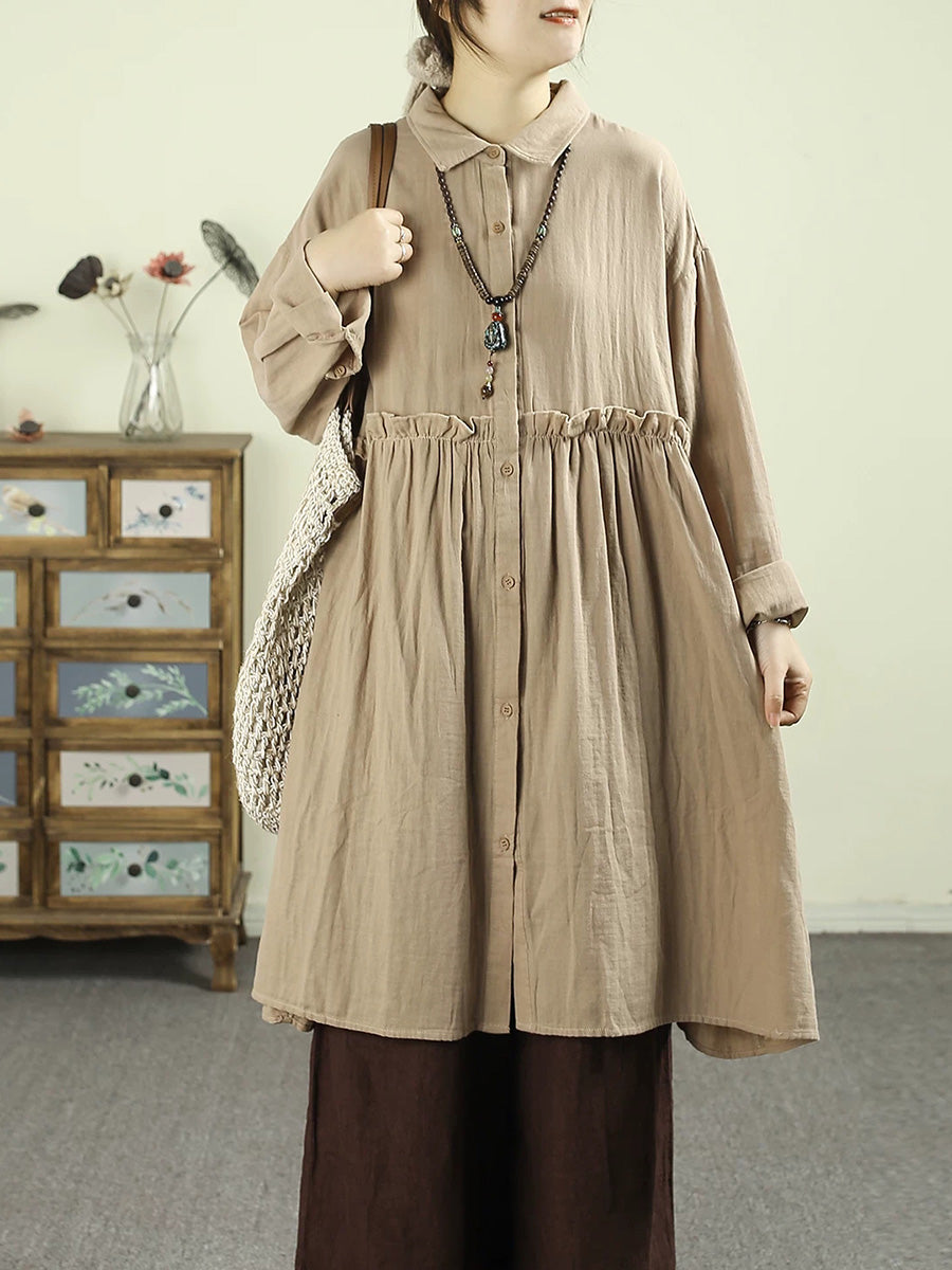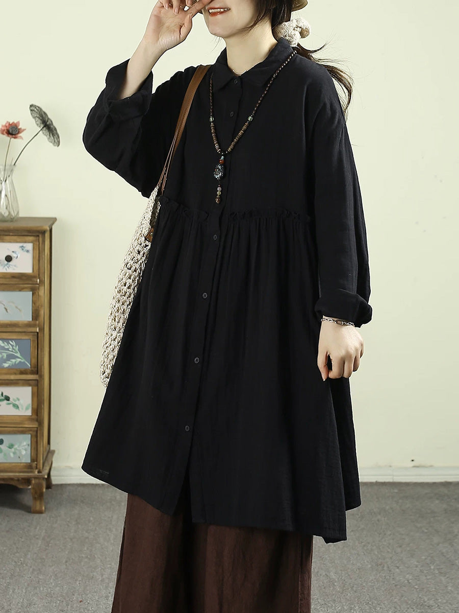 Women Spring Artsy Pure Color 100%Cotton Dress