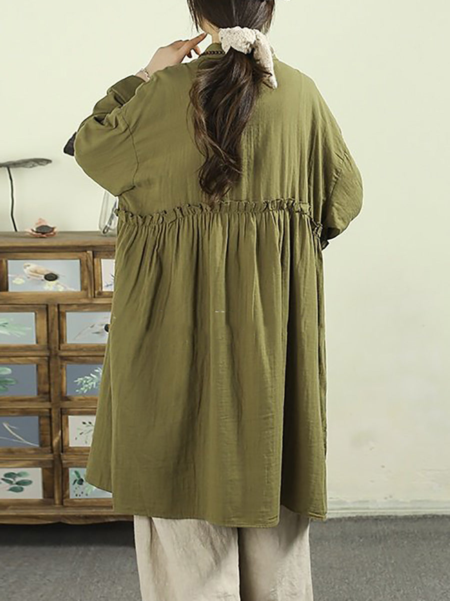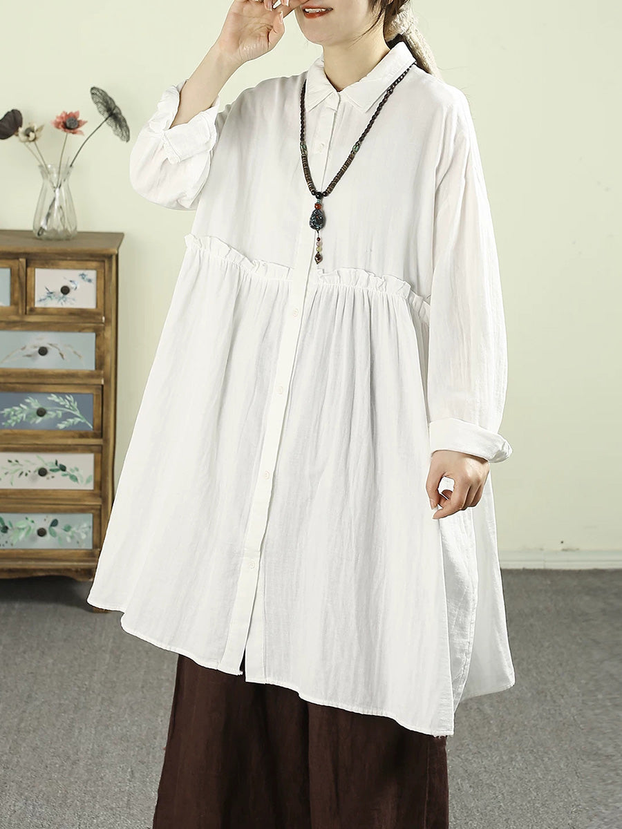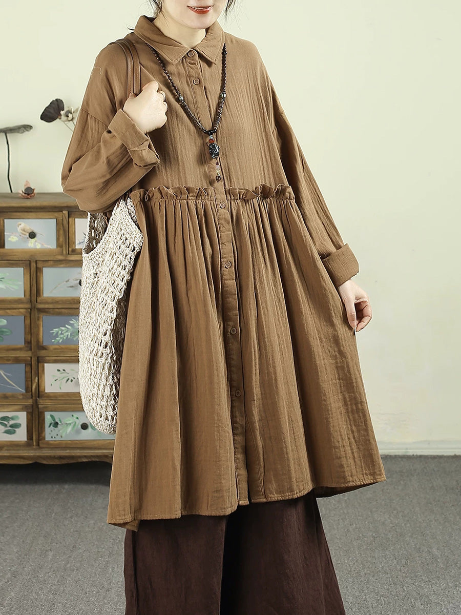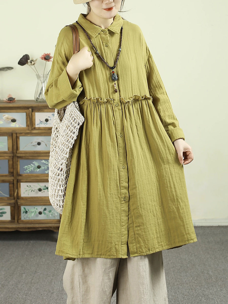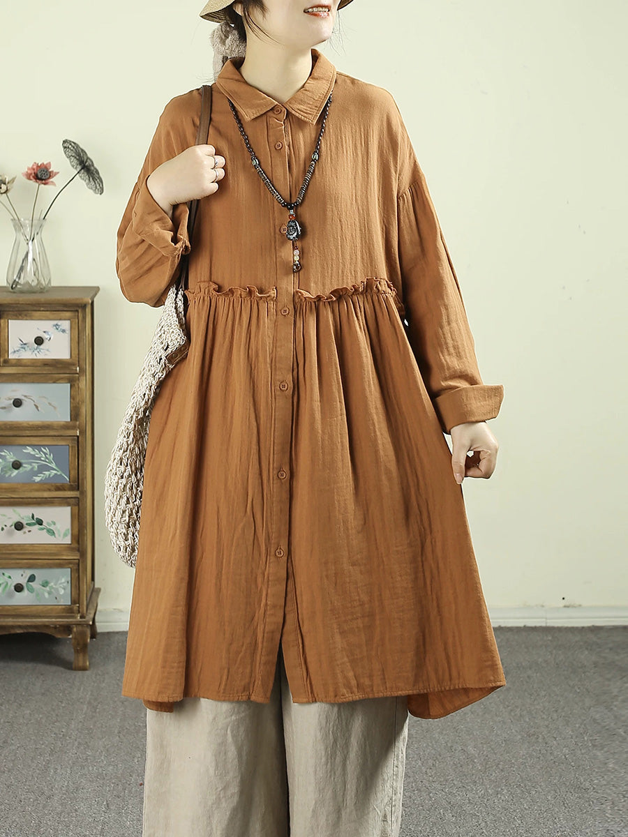Women Spring Artsy Pure Color 100%Cotton Dress