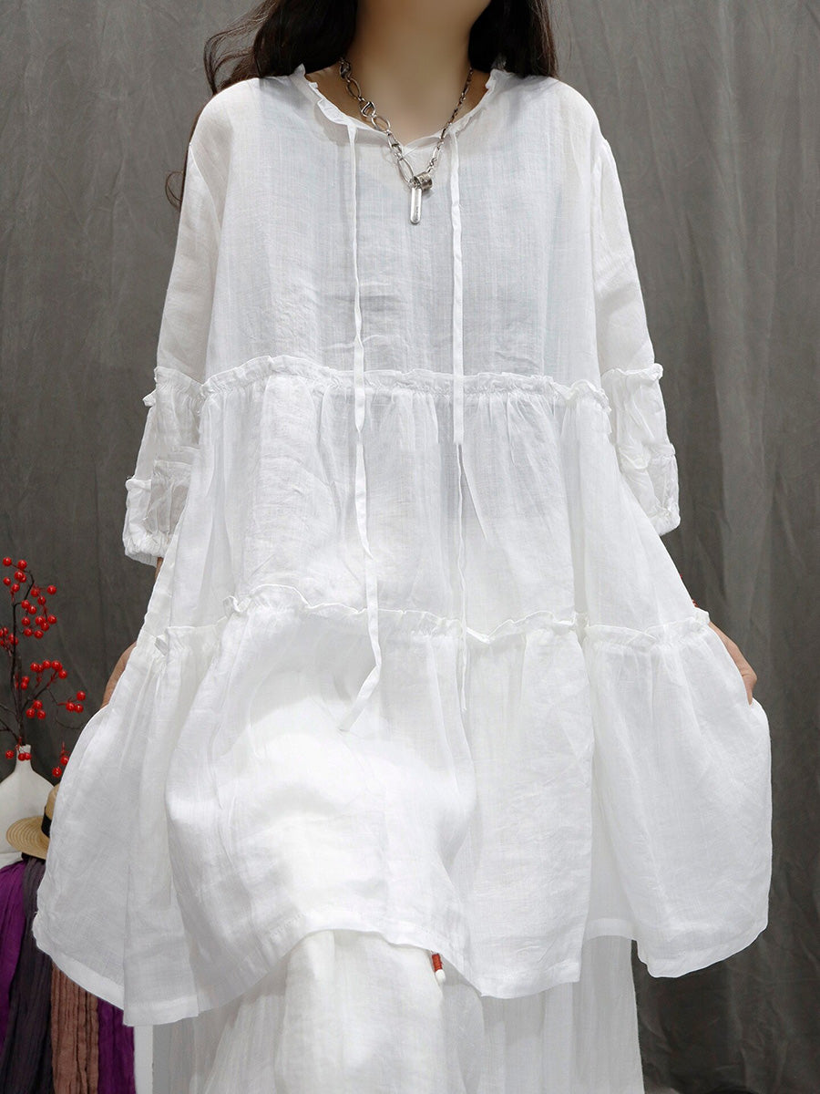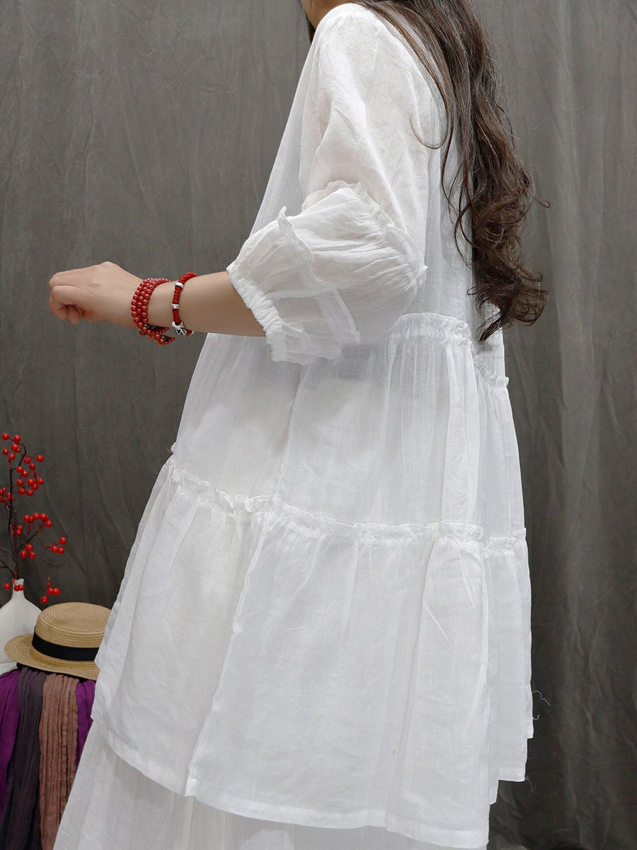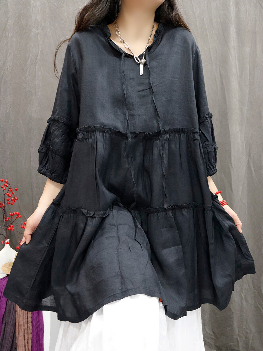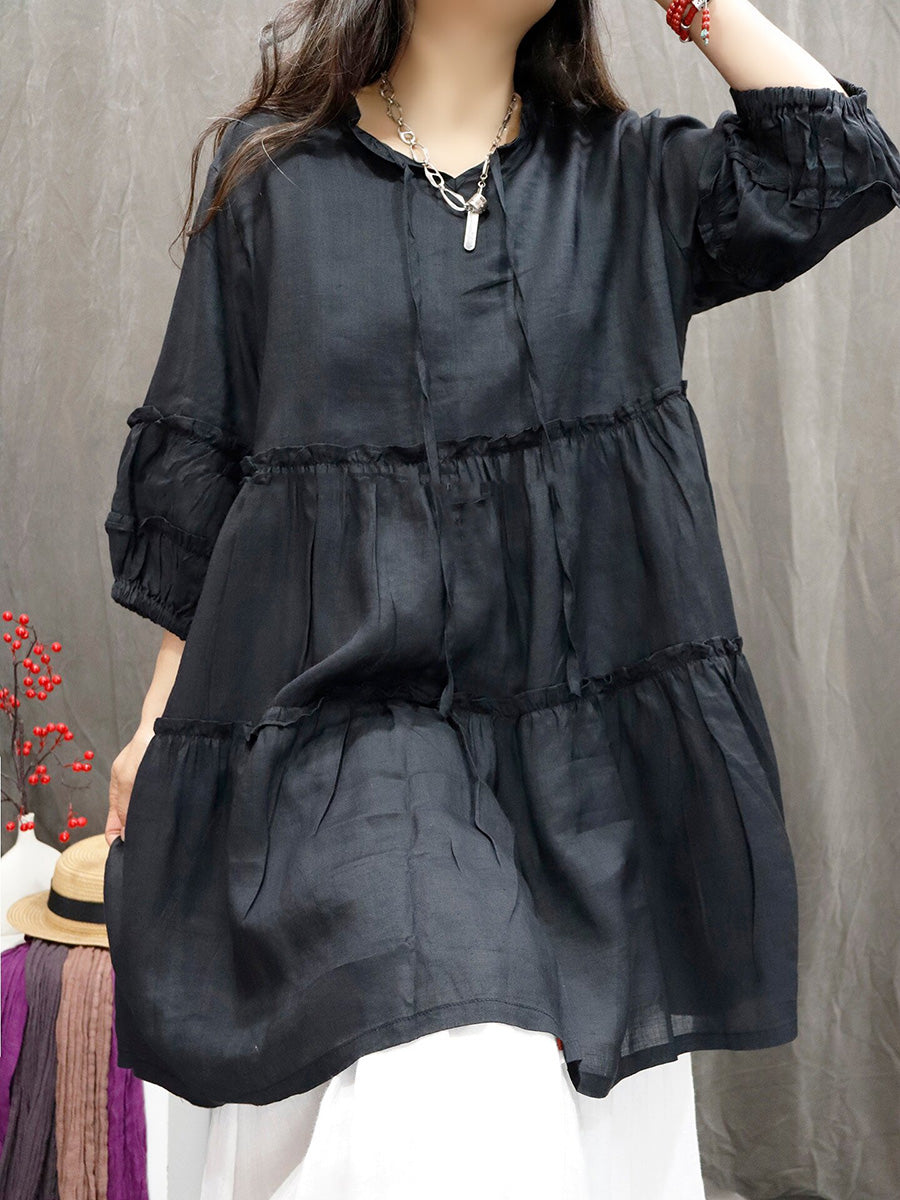 Women Spring Artsy Pure Color 100%Ramie V-Neck Blouse