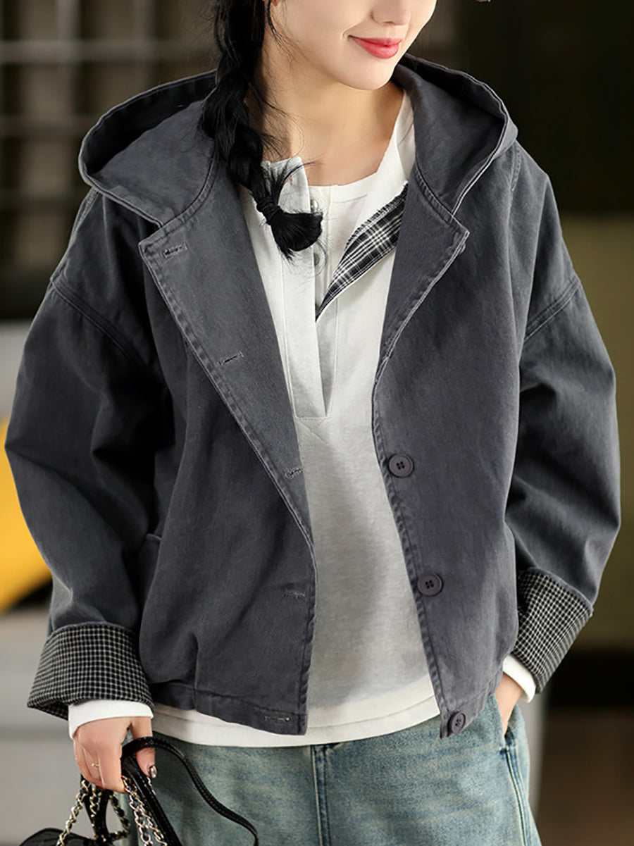 Women Spring Casual Pure Color 100%Cotton Hooded Coat