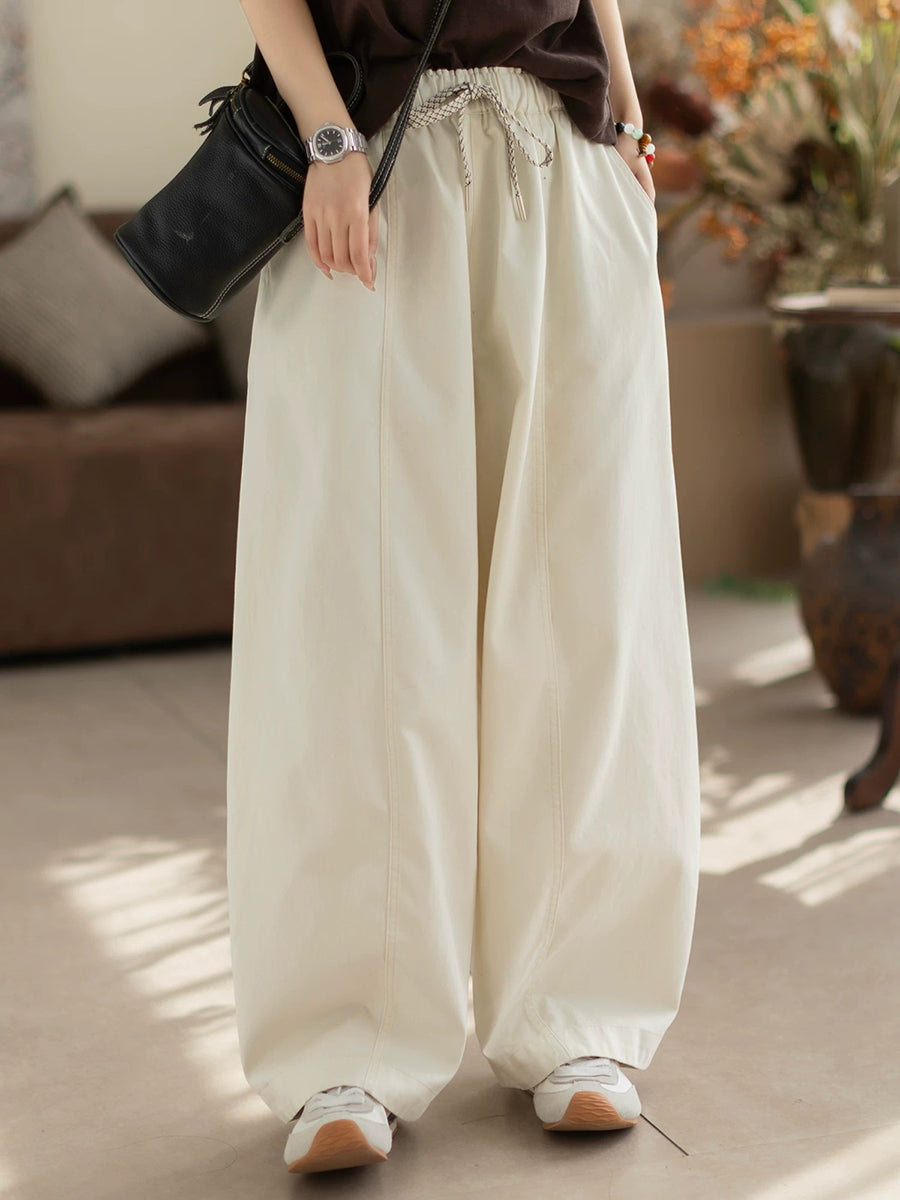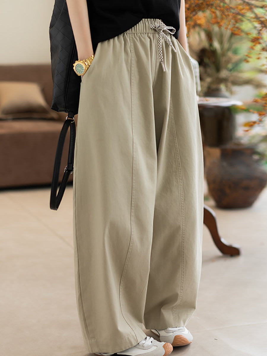 Women Spring Casual Pure Color 100%Cotton Straight Pants