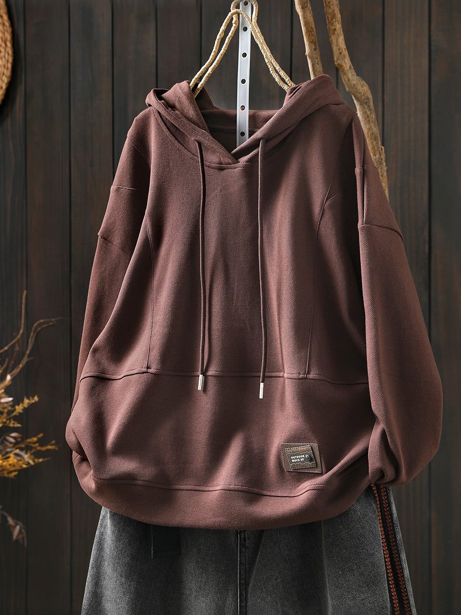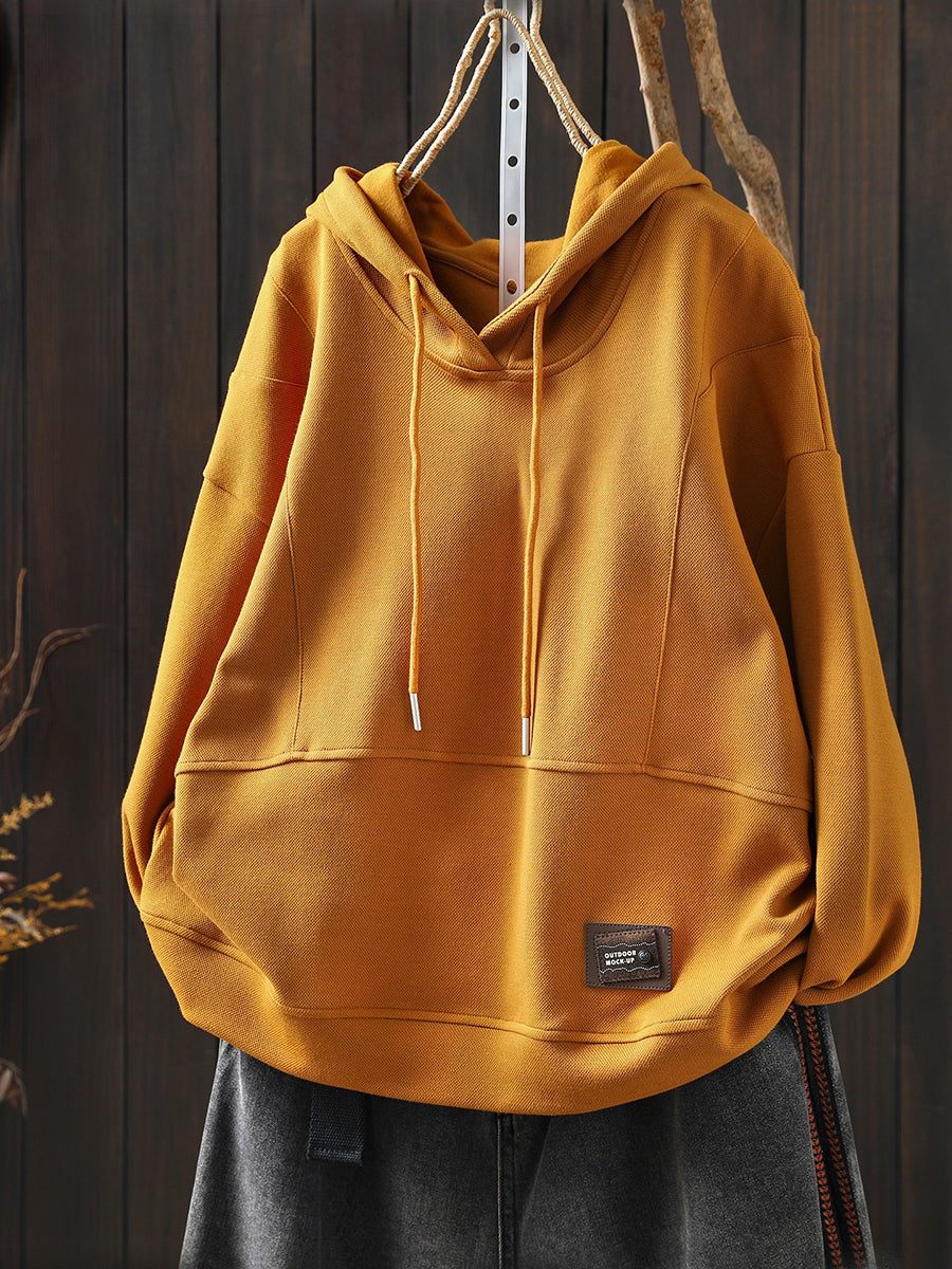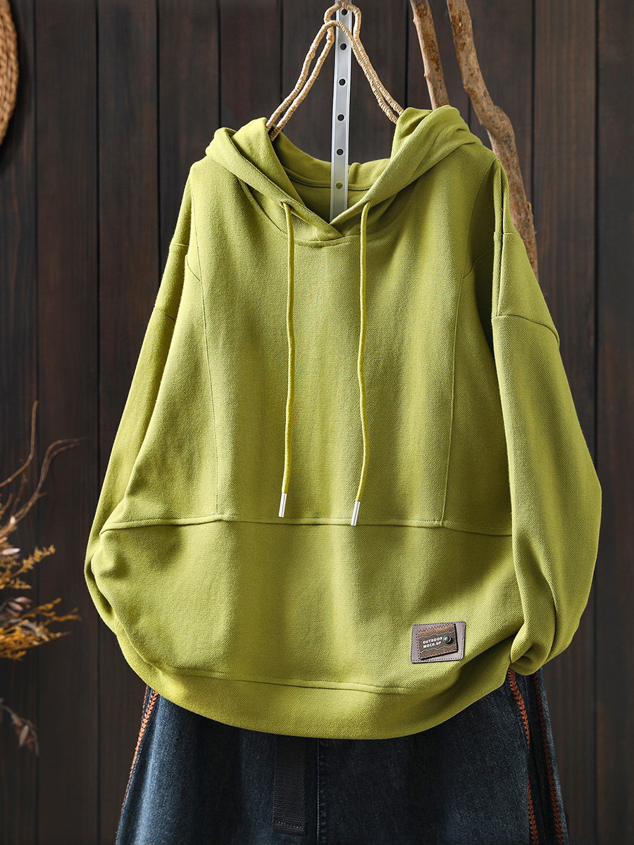 Women Spring Casual Pure Color Cotton Hoodie