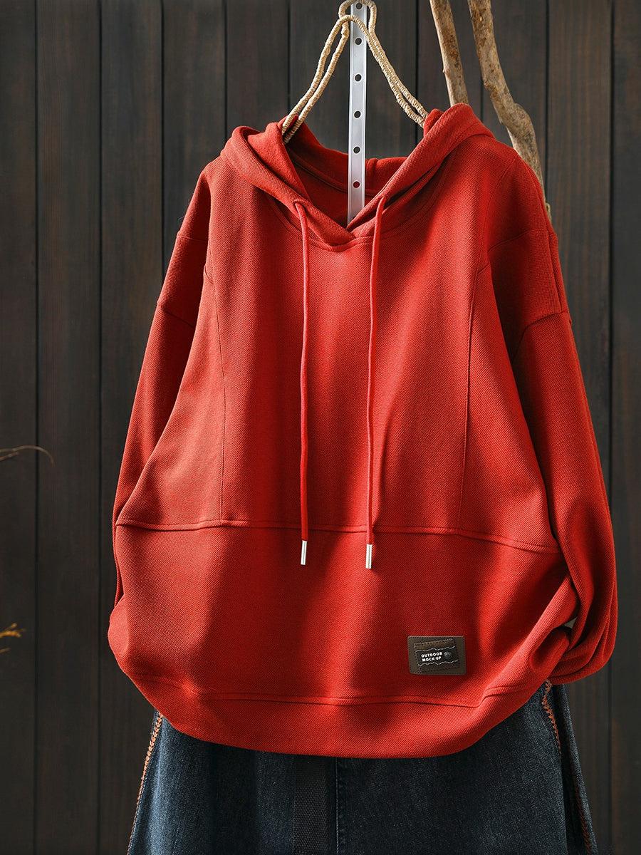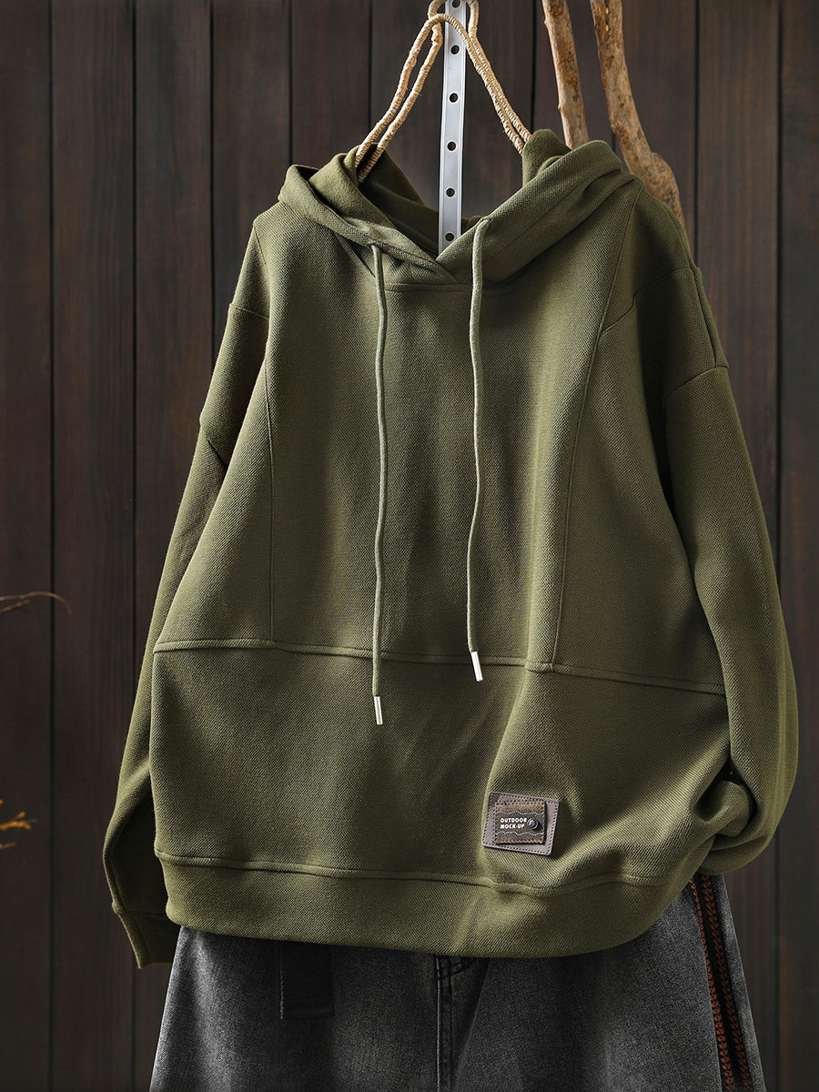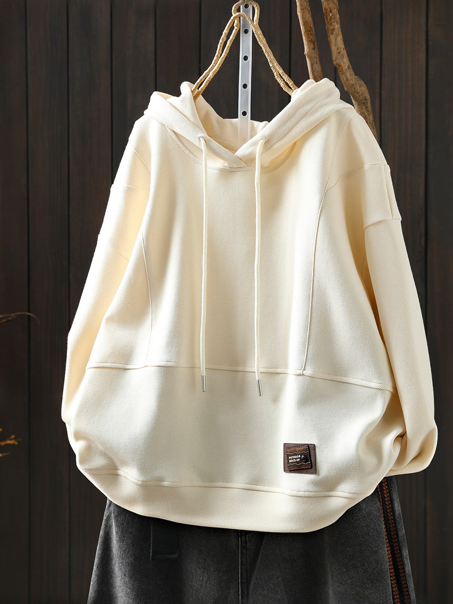 Women Spring Casual Pure Color Cotton Hoodie
