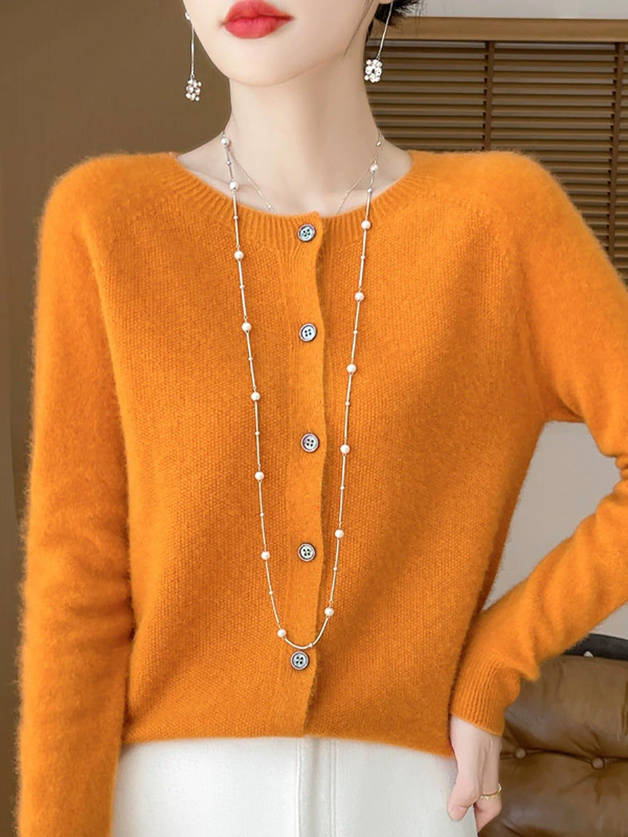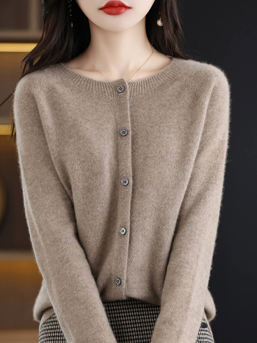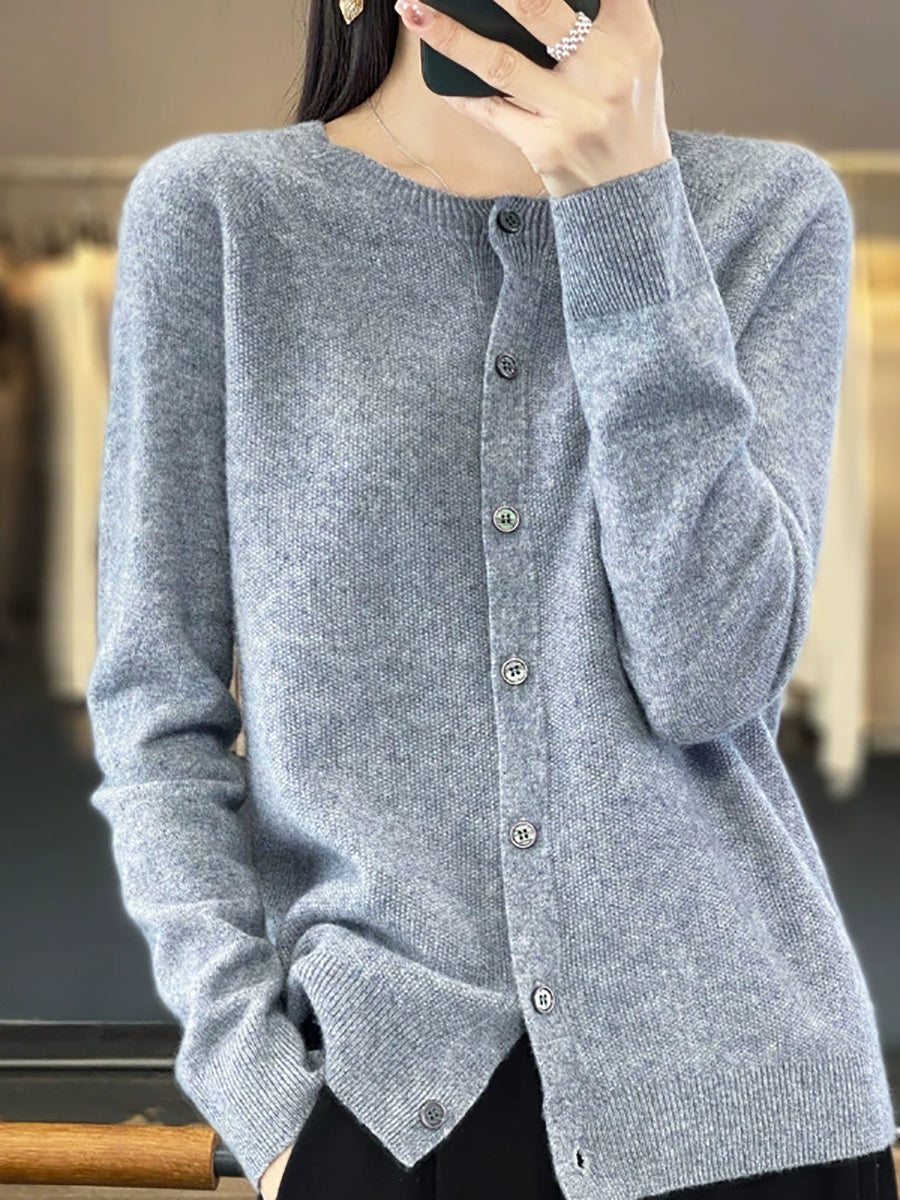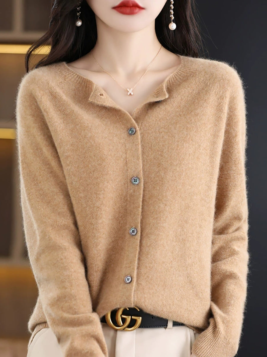 Women Spring Casual Pure Color O-Neck Sweater