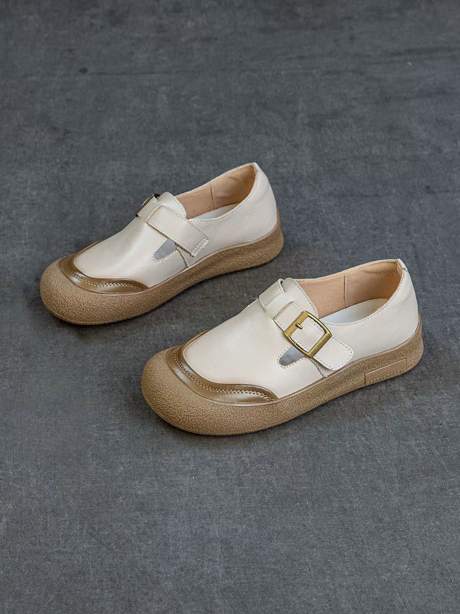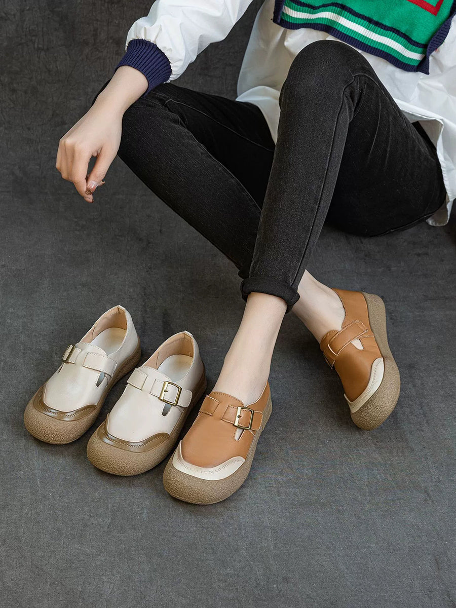 Women Spring Colorblock Genuine Leather Flat Shoes