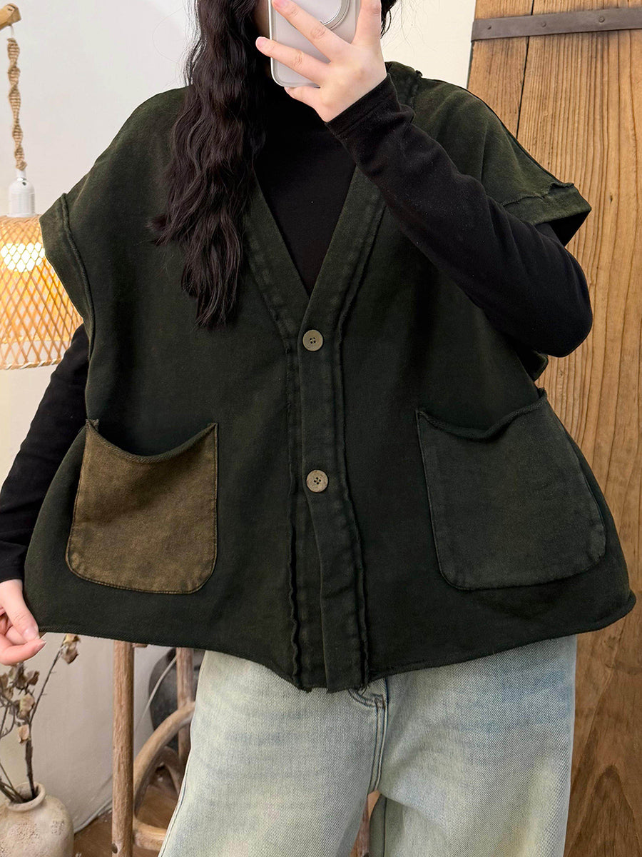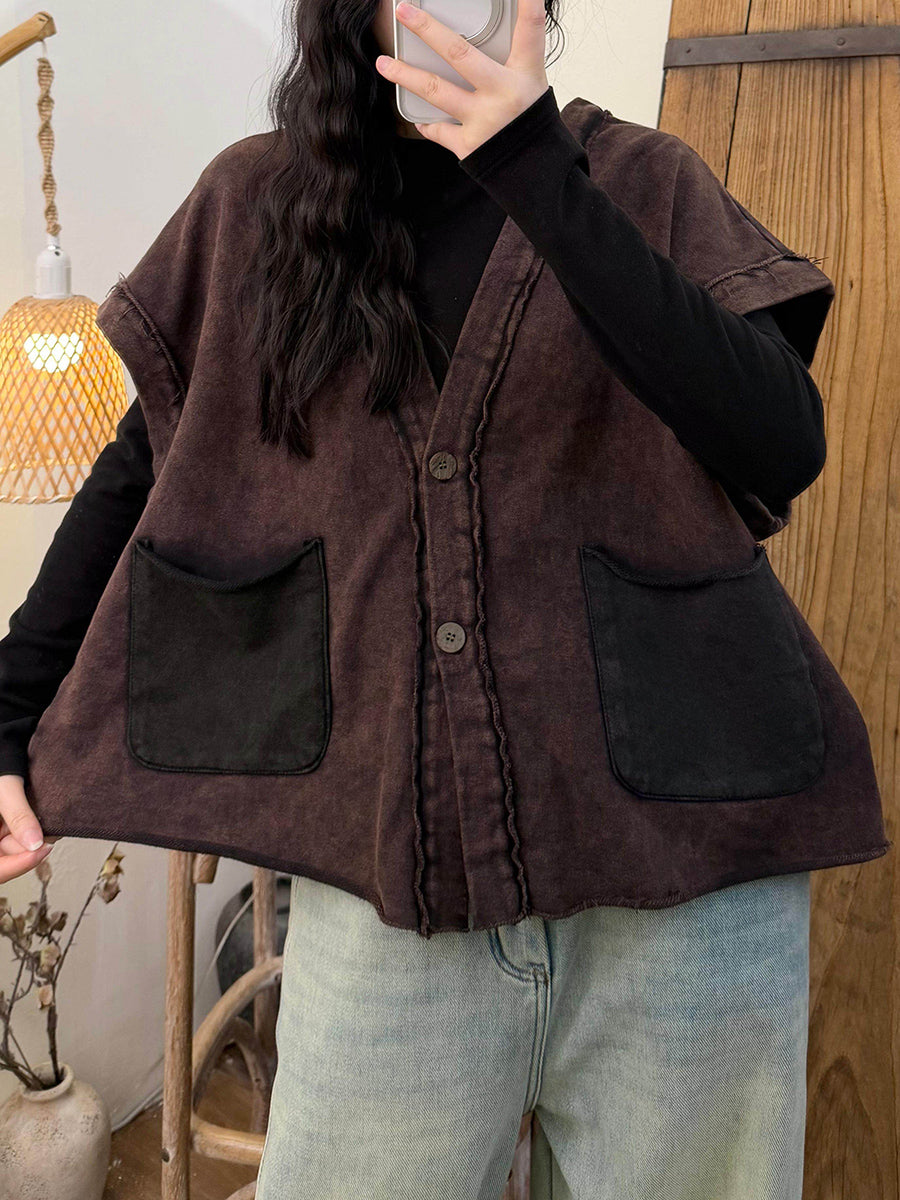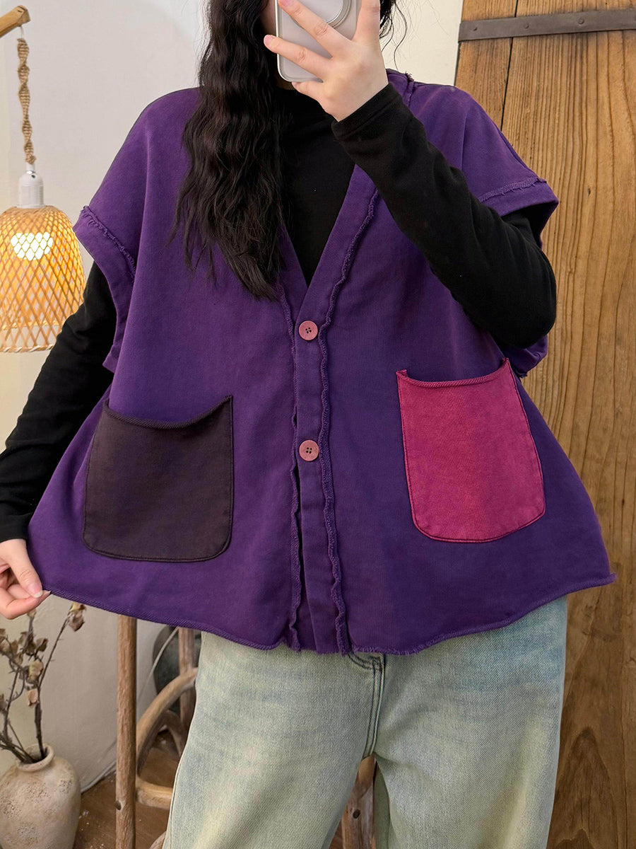 Women Spring Retro Colorblock Vest