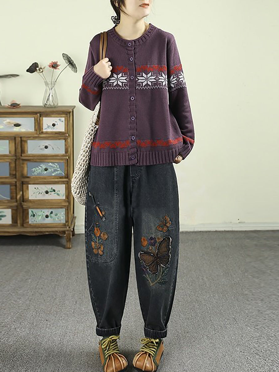 Women Spring Vintage Denim Butterfly Patchwork Harem Pants