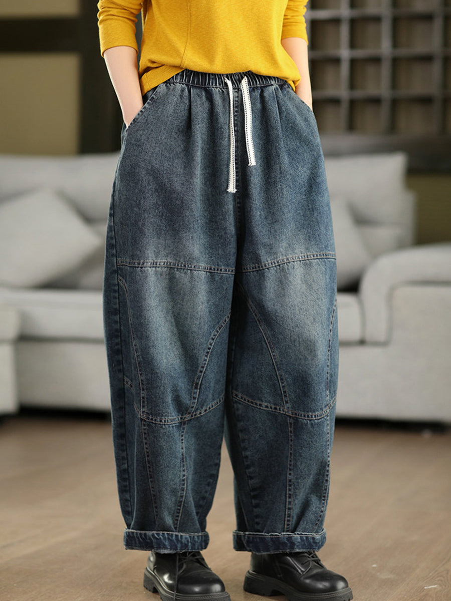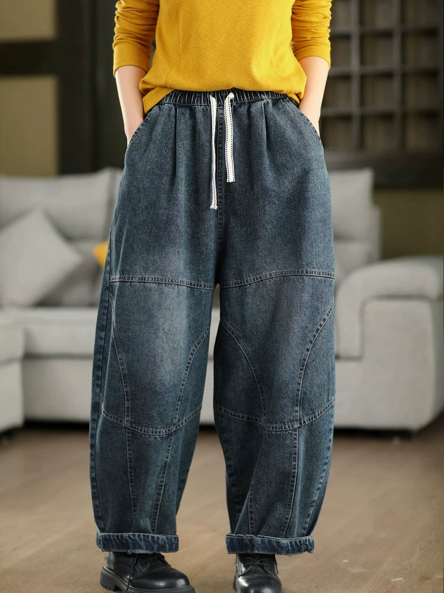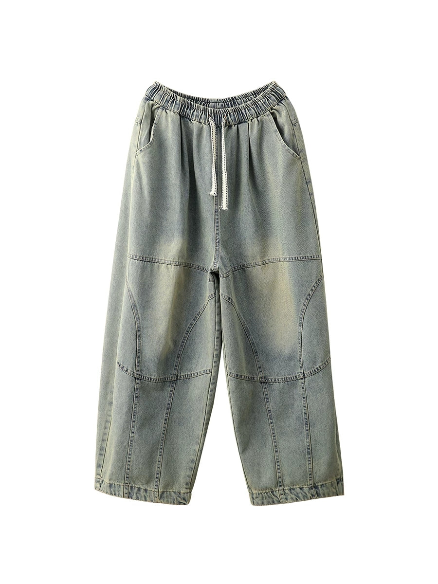 Women Spring Vintage Denim Spliced Harem Pants