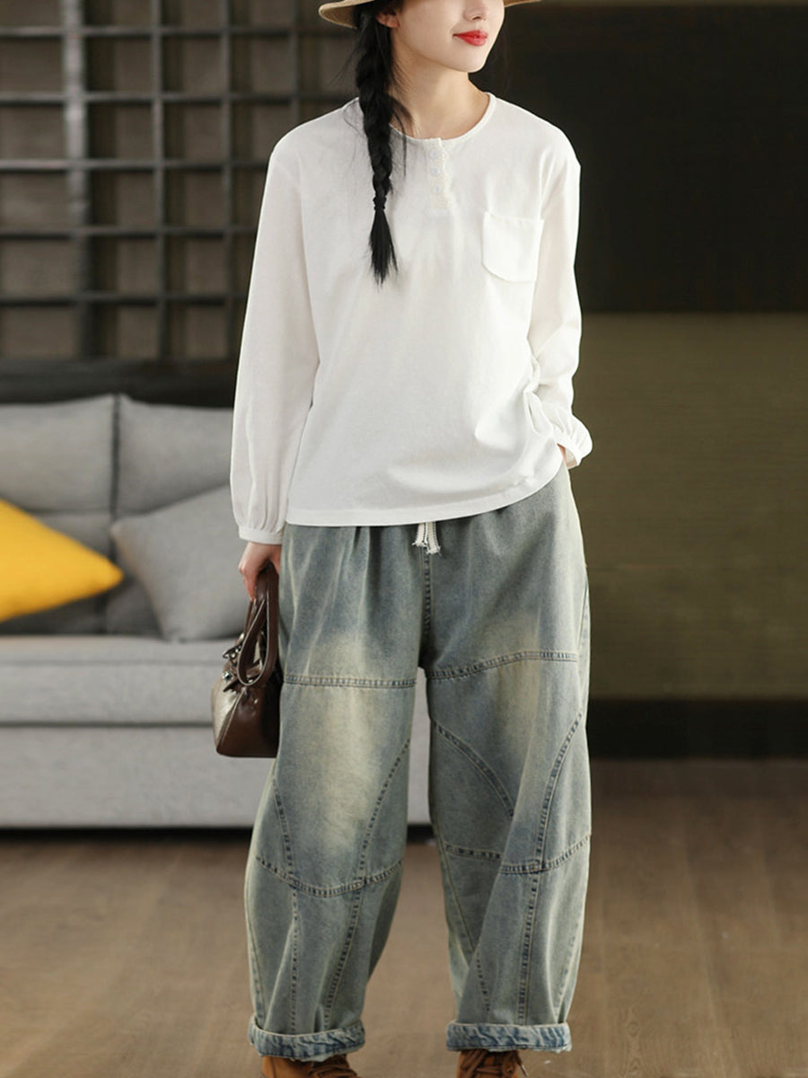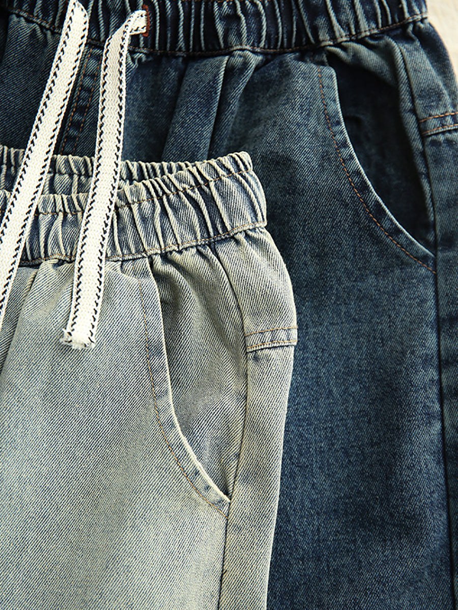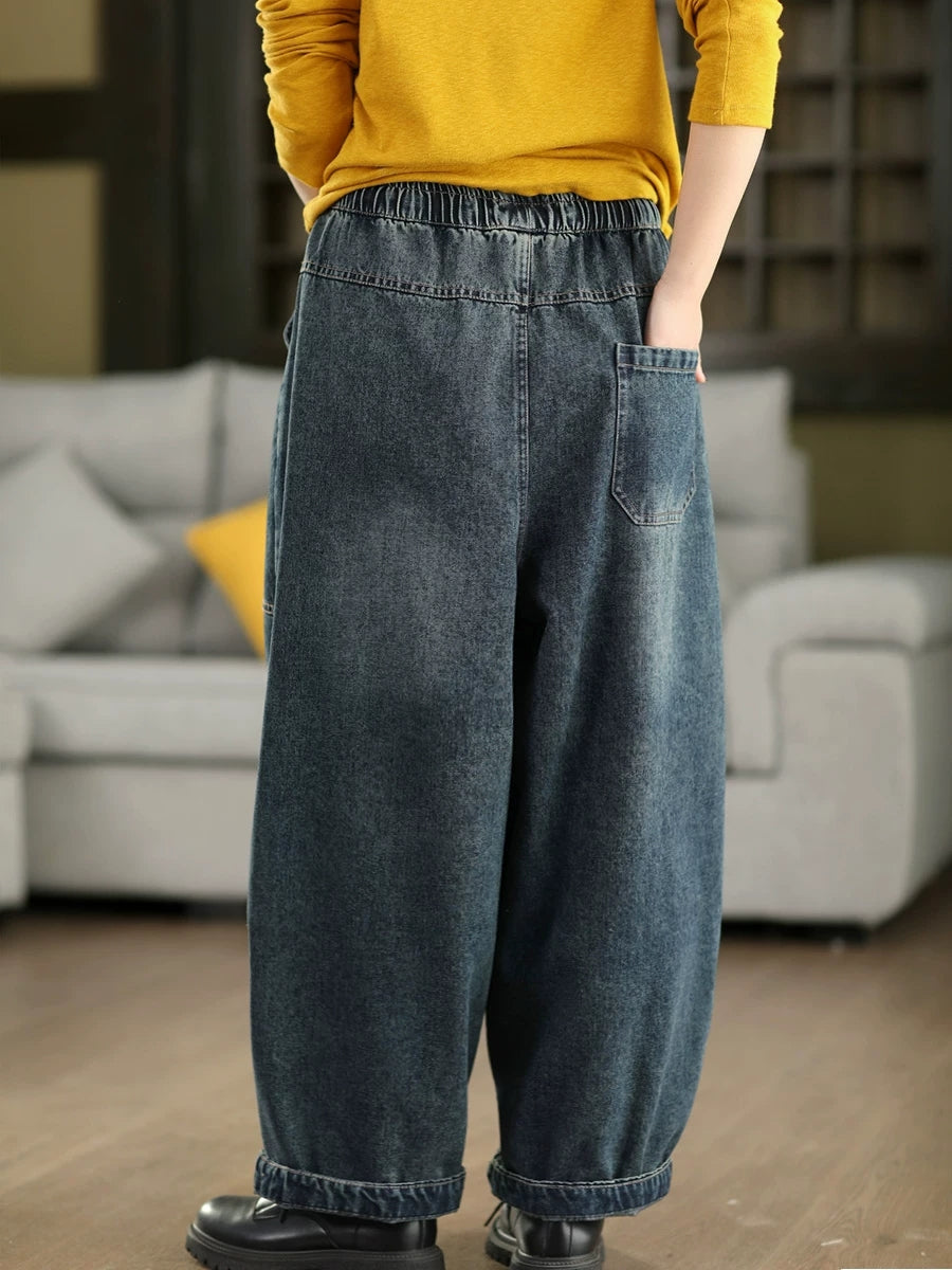 Women Spring Vintage Denim Spliced Harem Pants