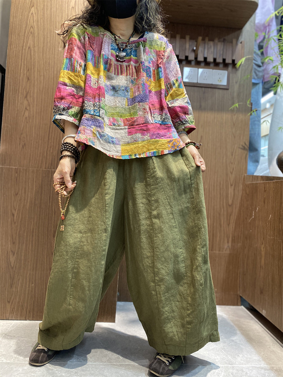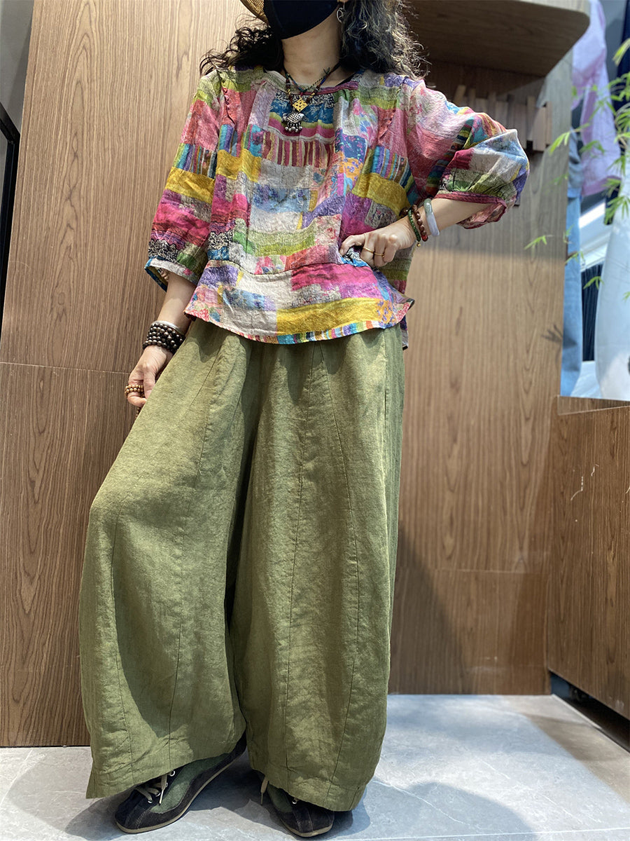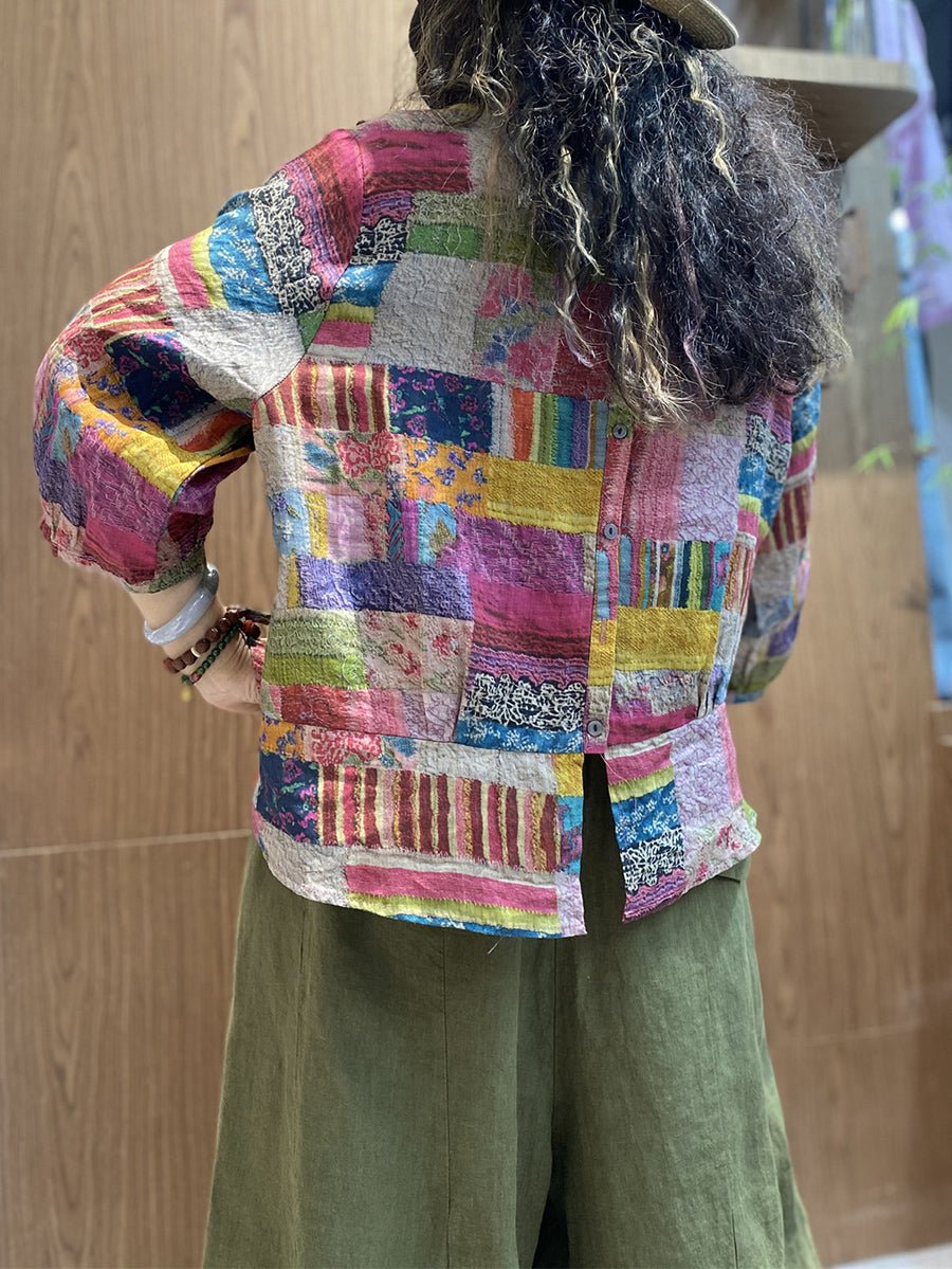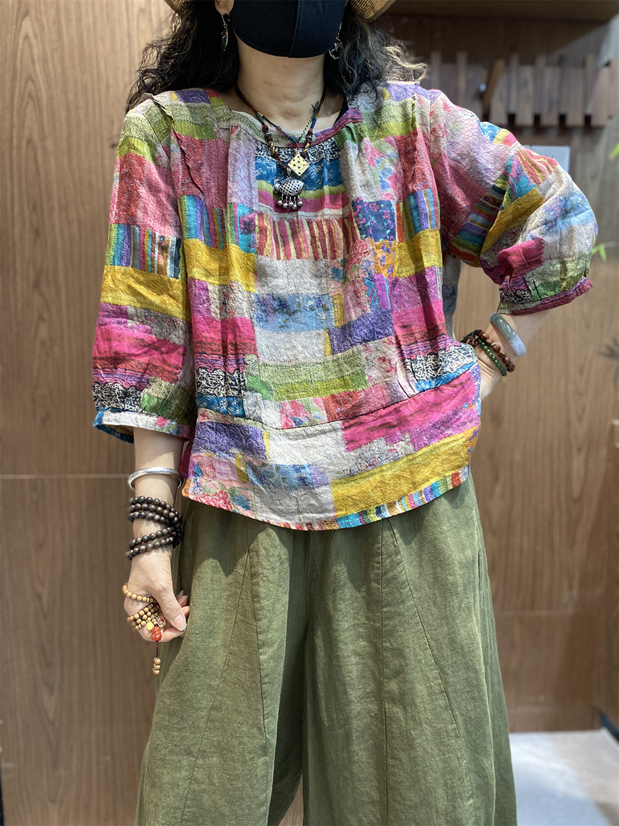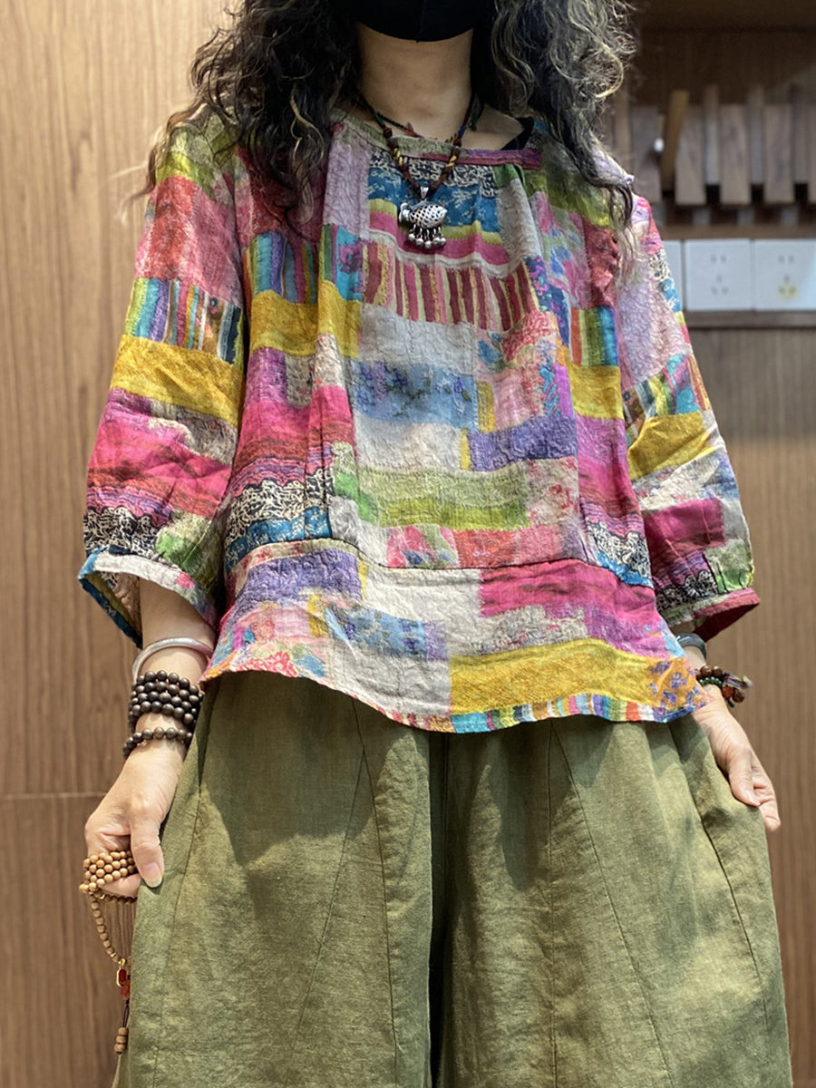 Women Summer Artsy Patchwork O-Neck Blouse