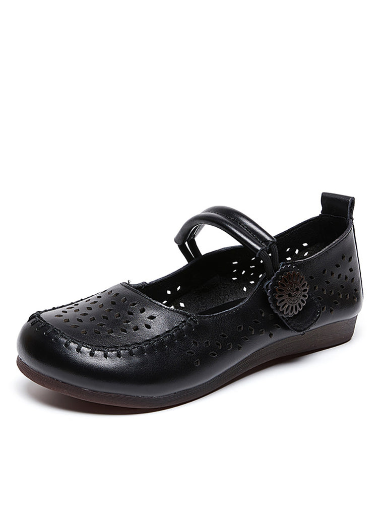 Women Summer Casual Genuine Leather Low Heel Shoes
