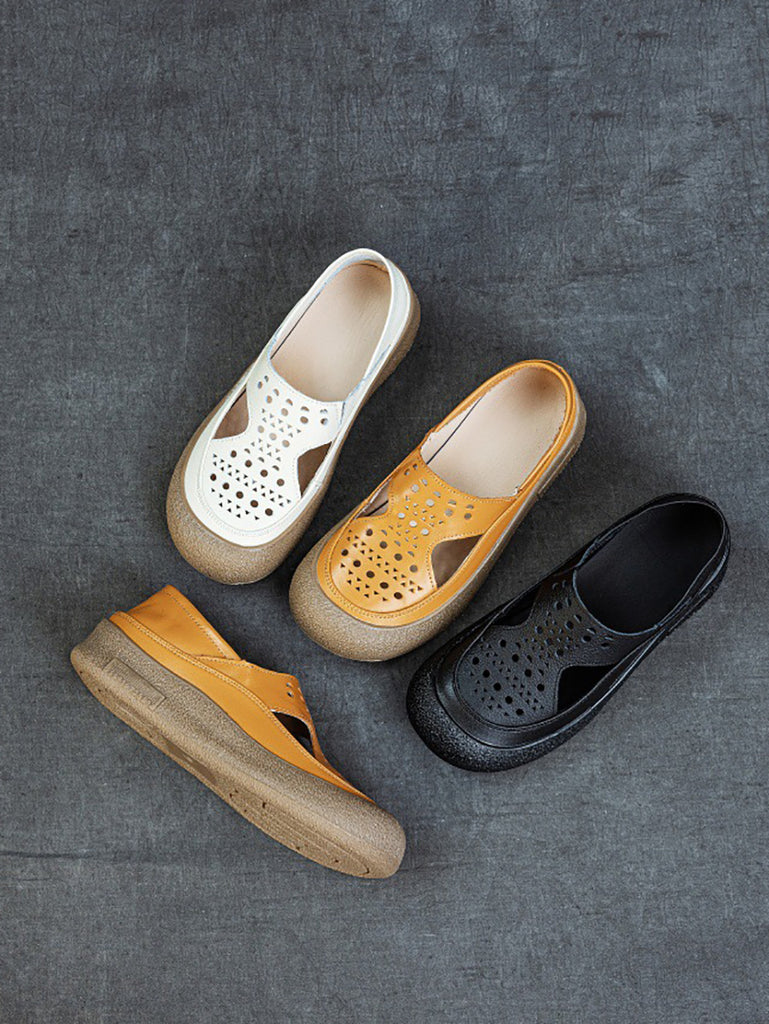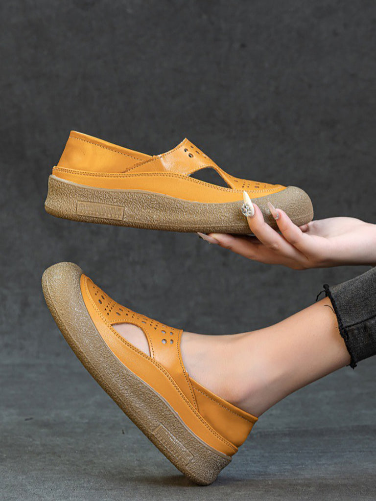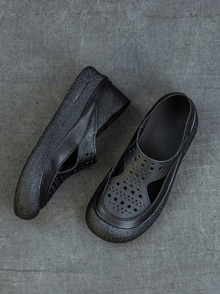 Women Summer Casual Hollow Out Leather Flat Shoes