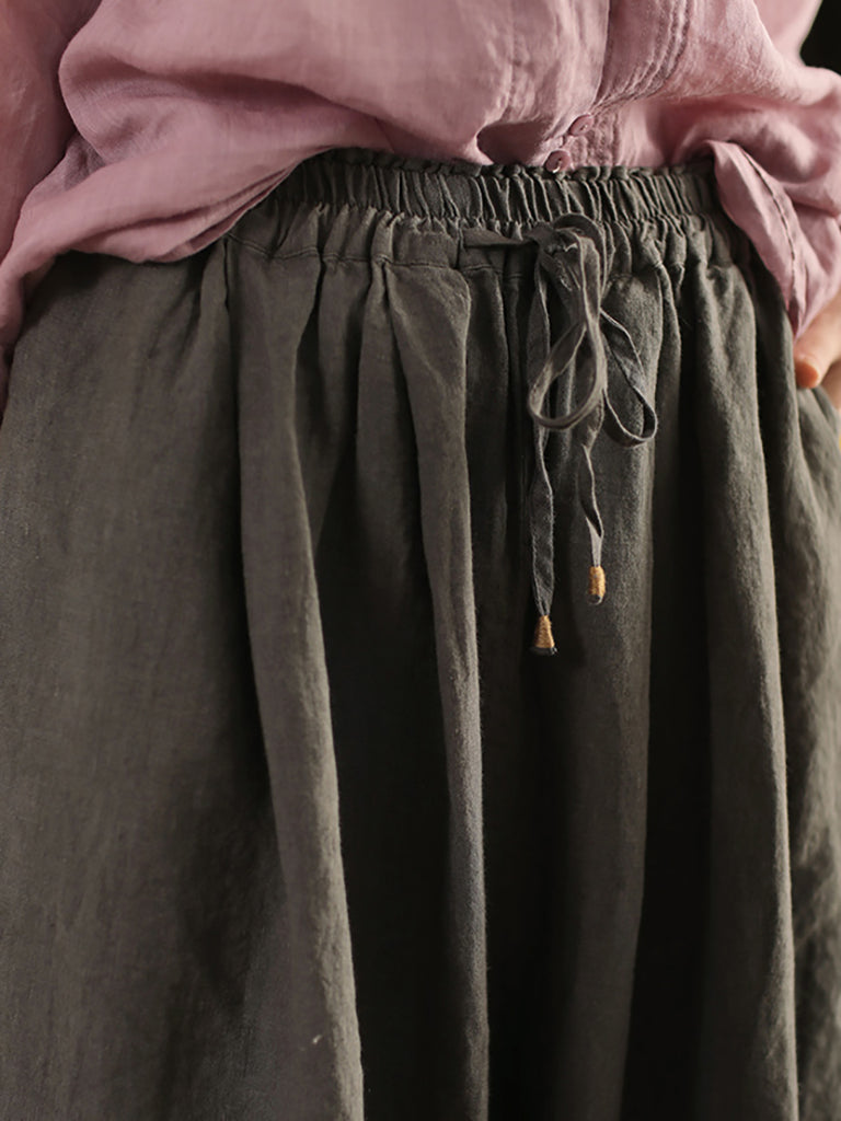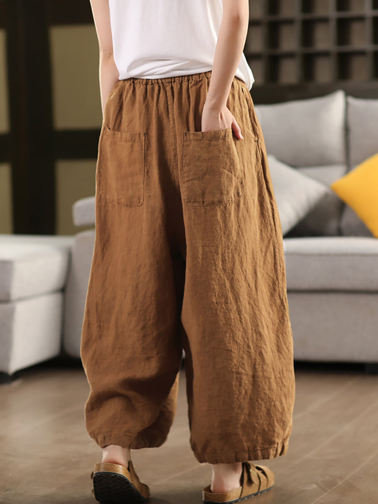 Plus Size Women Summer Casual Pure Color 100%Linen Wide-leg Pants