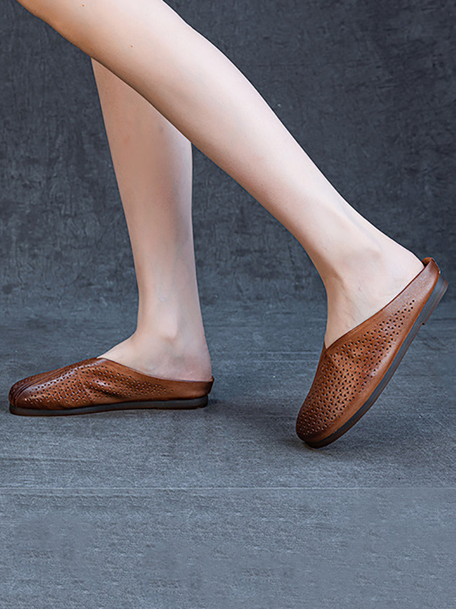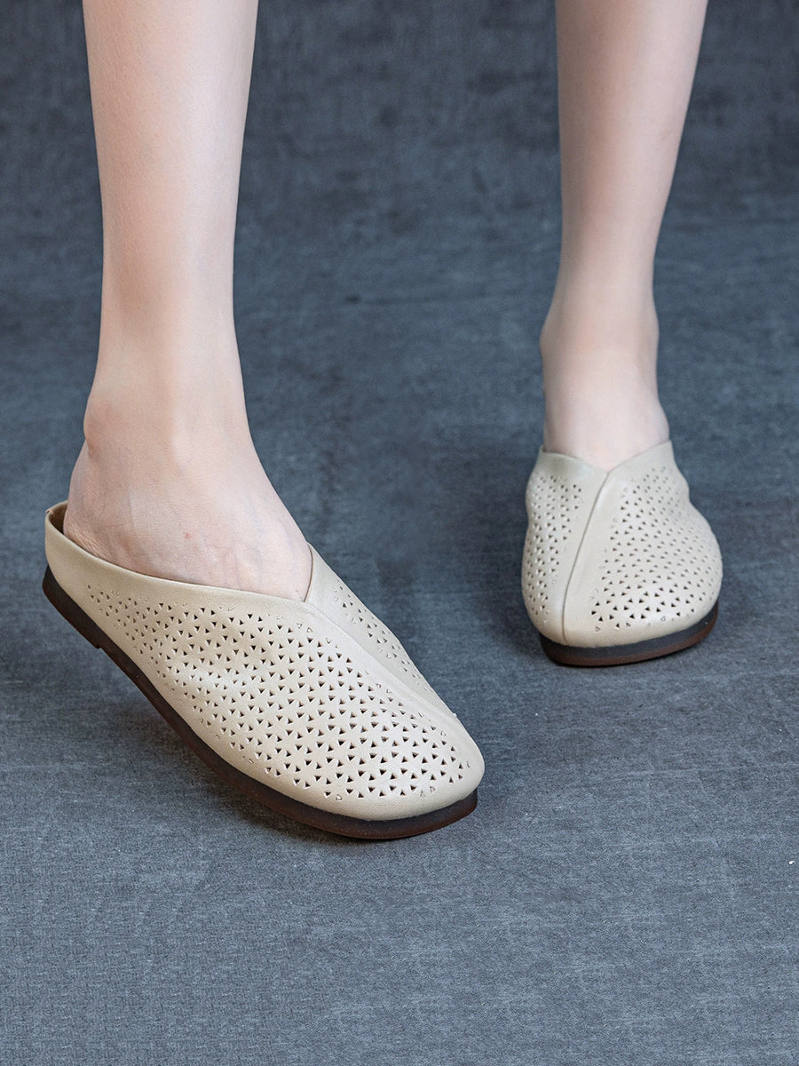 Women Summer Genuine Leather Flat Slippers