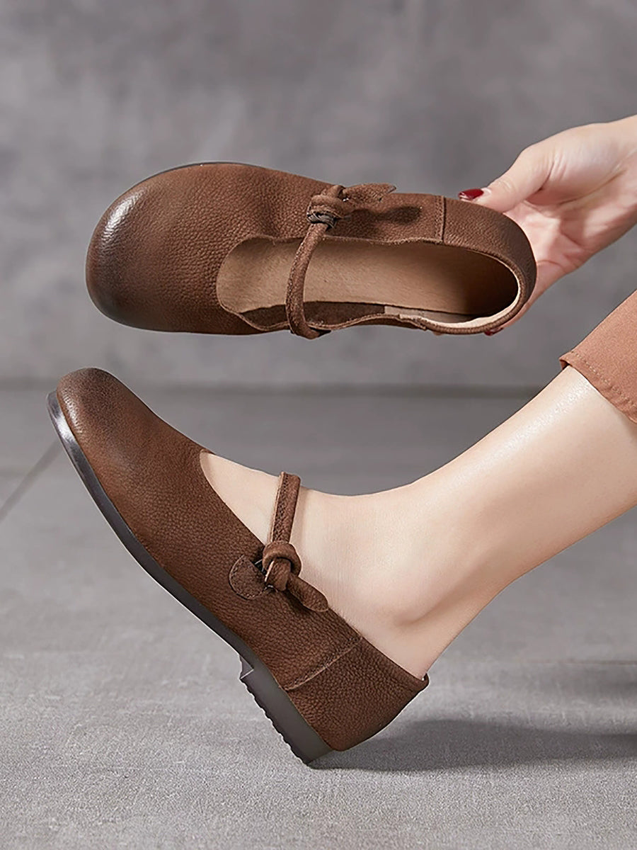 Women Summer Versatile Soft Leather Low Heel Shoes