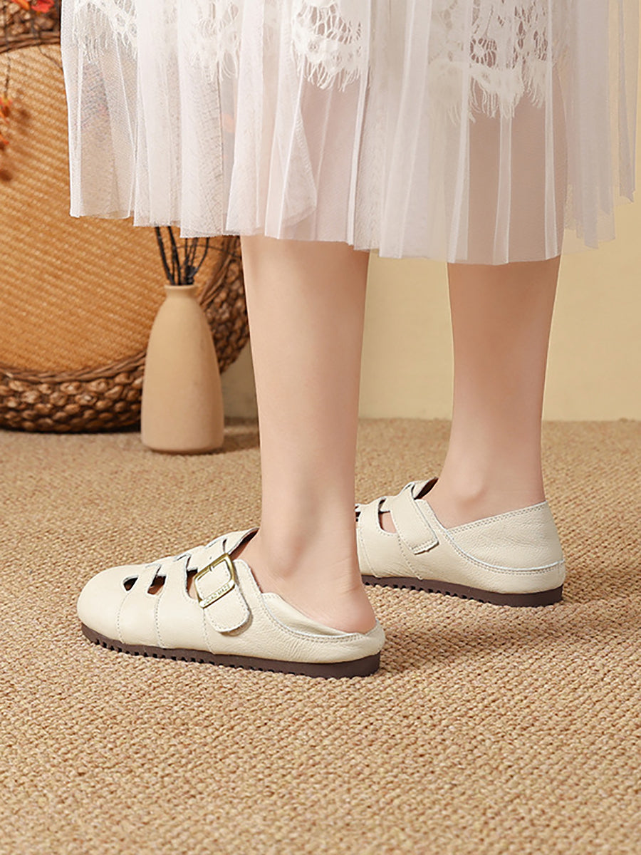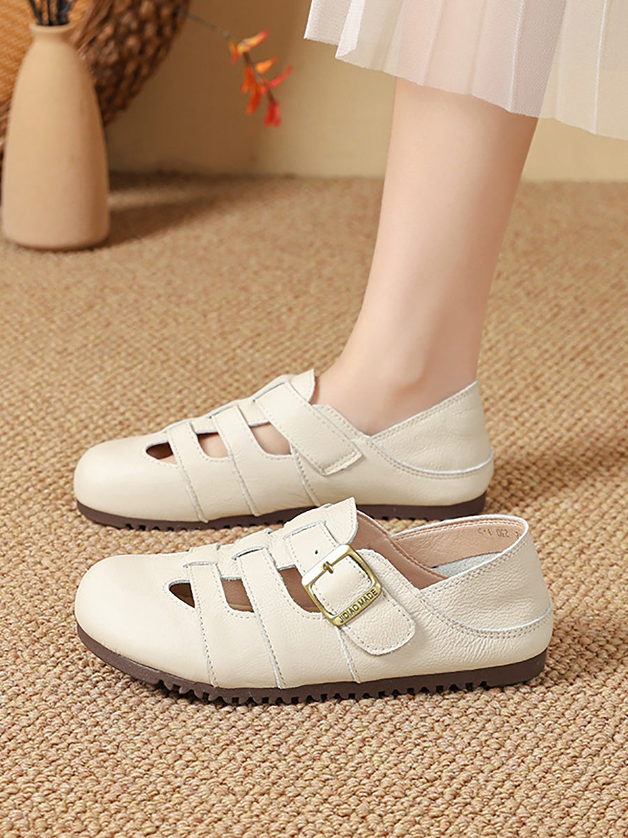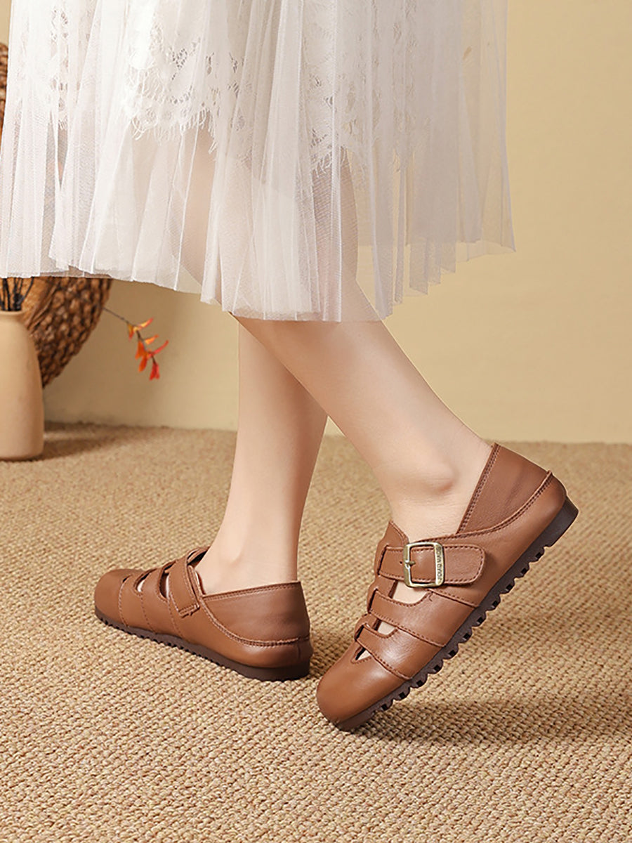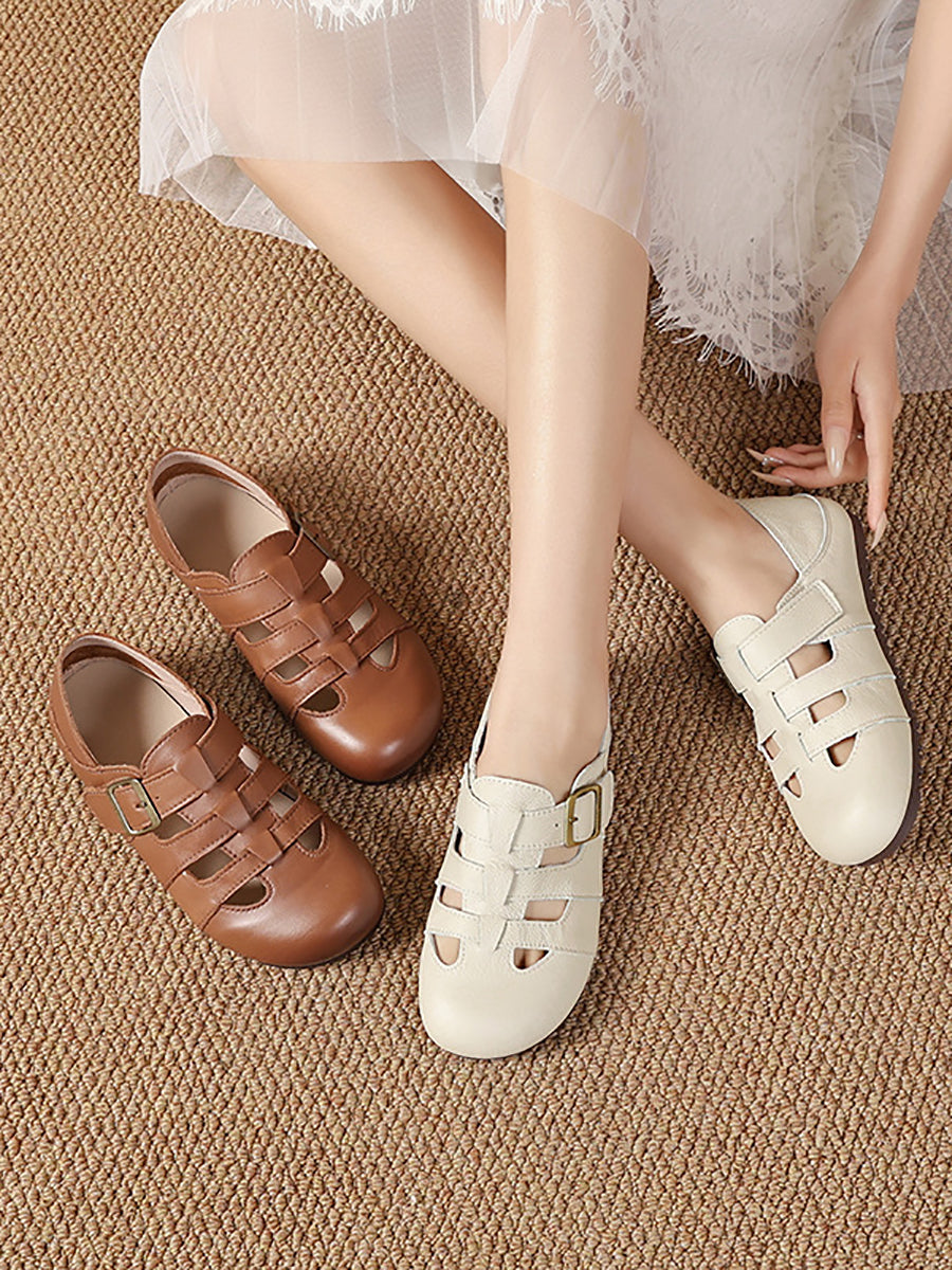 Women Summer Vintage Genuine Leather Flat Sandals
