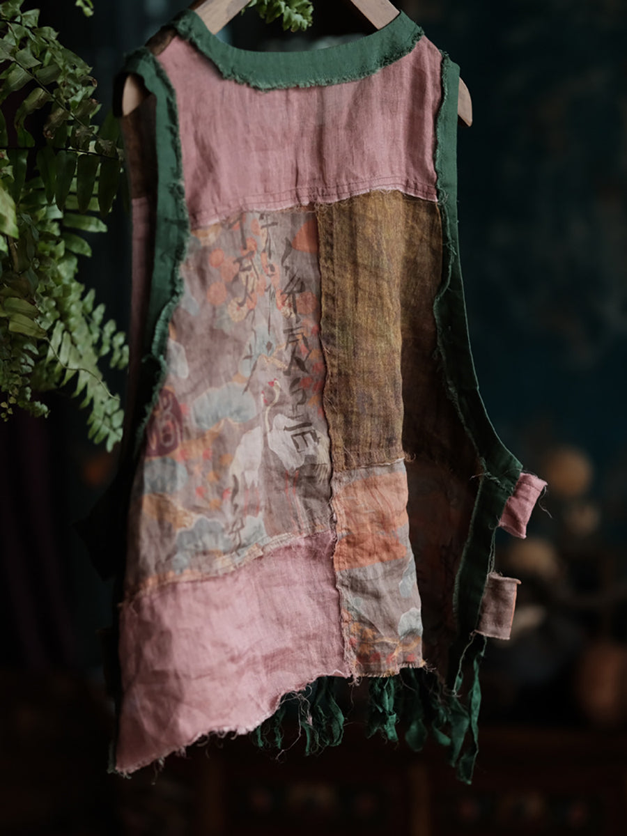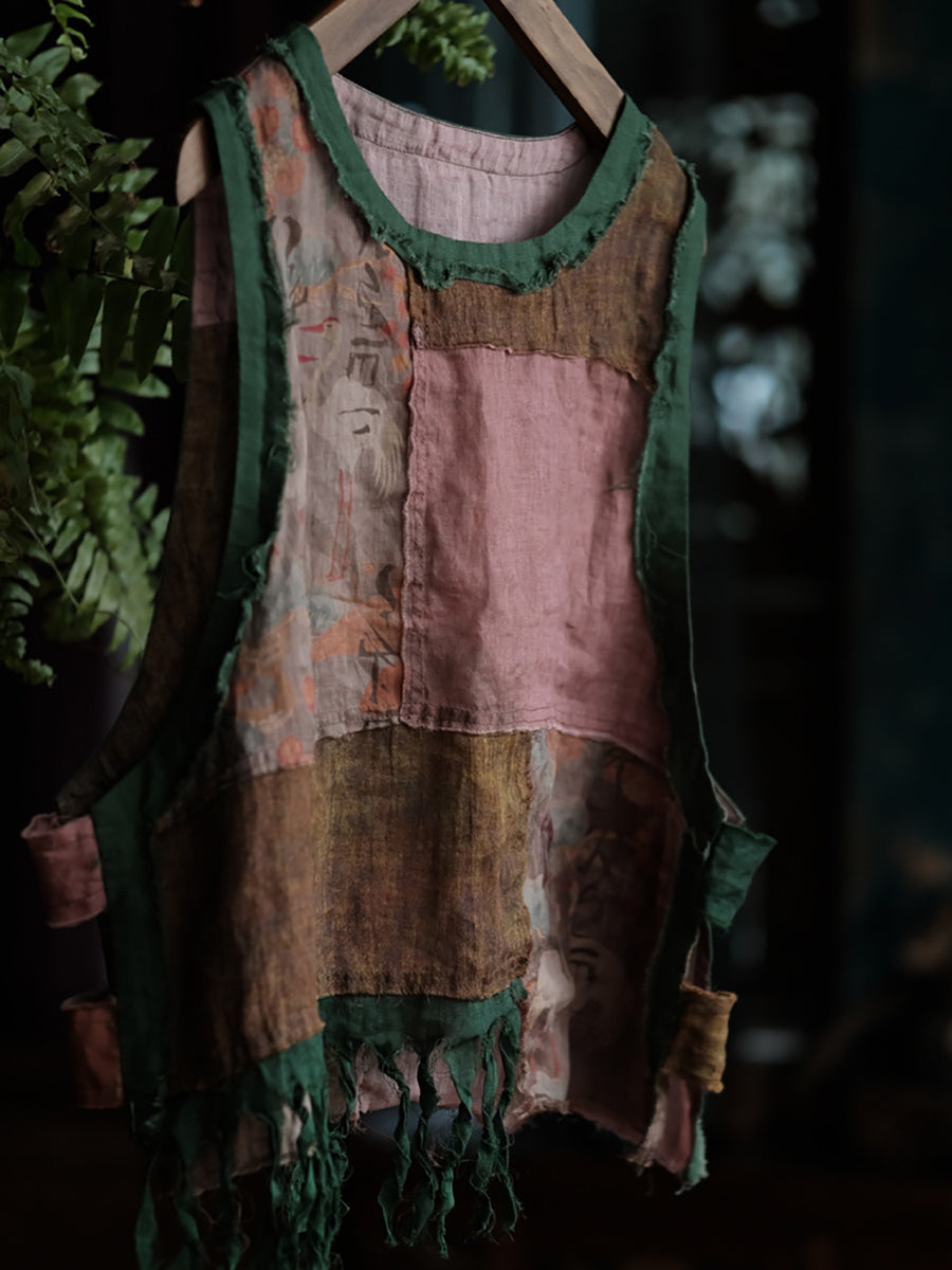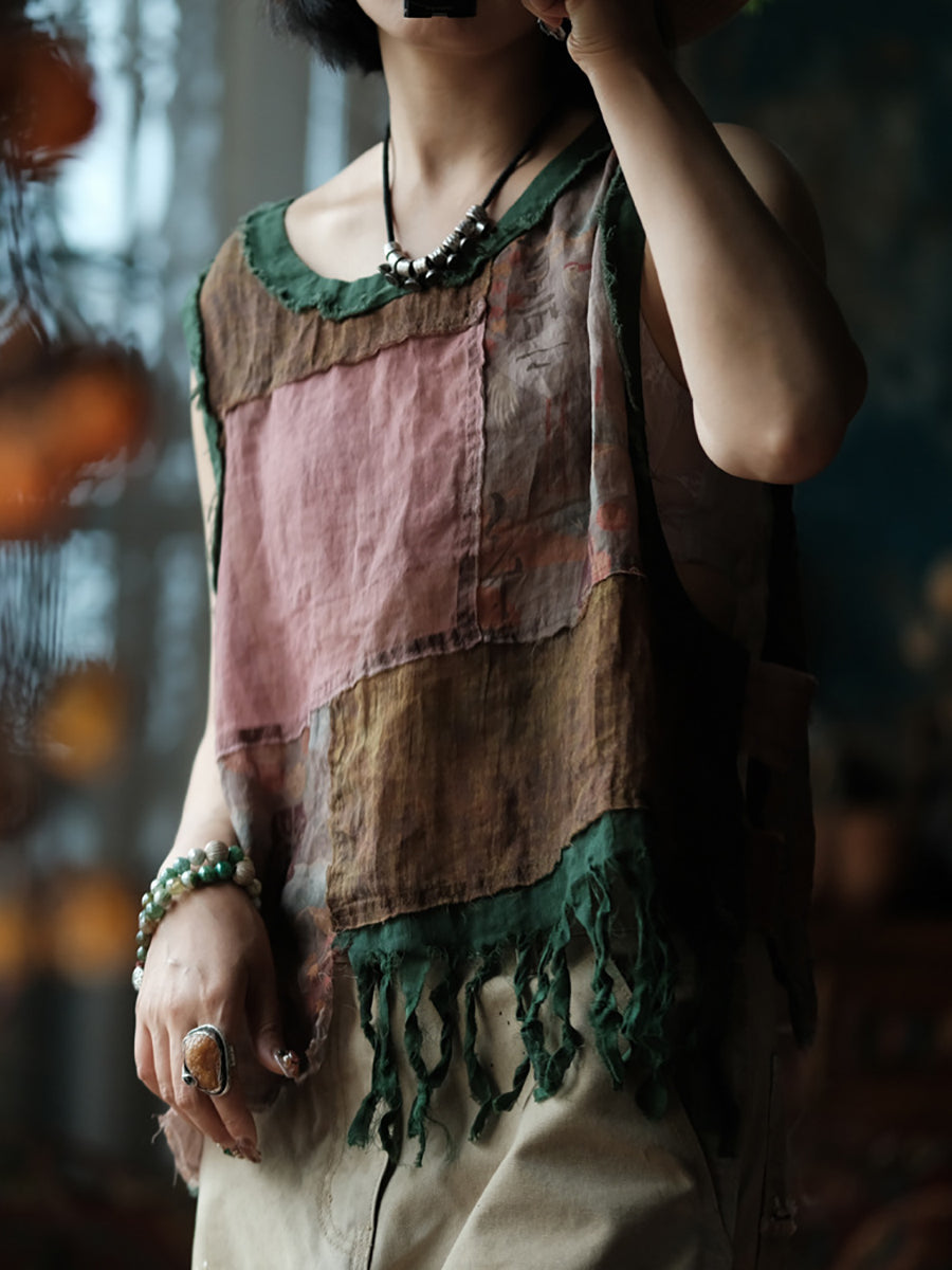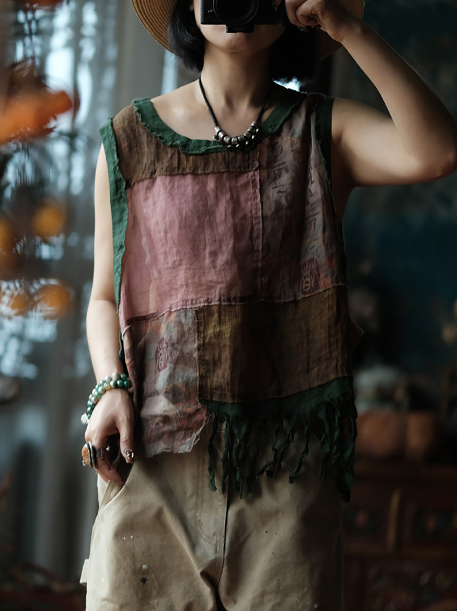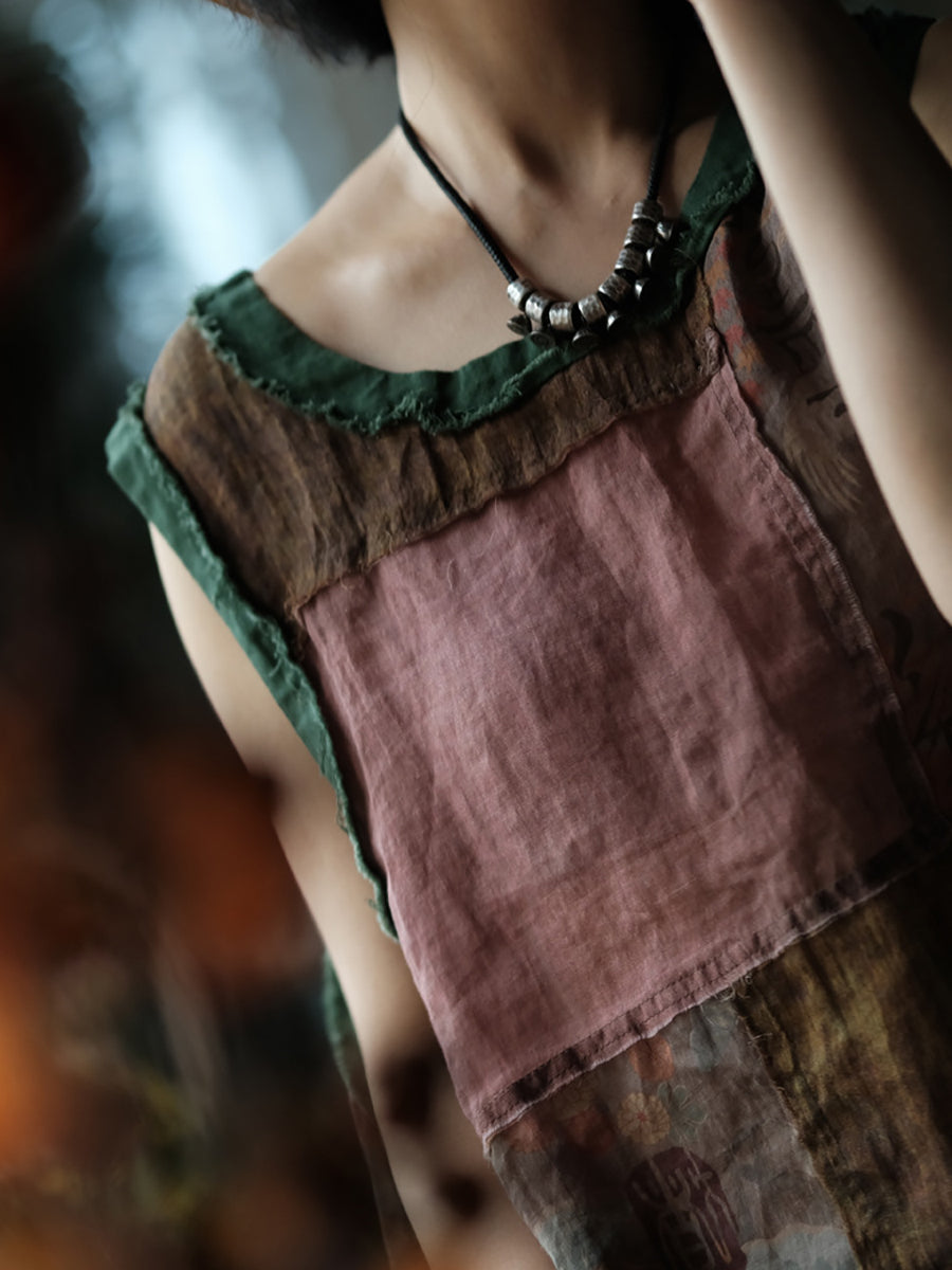 Plus Size Women Summer Vintage Patchwork O-Neck Tank Top