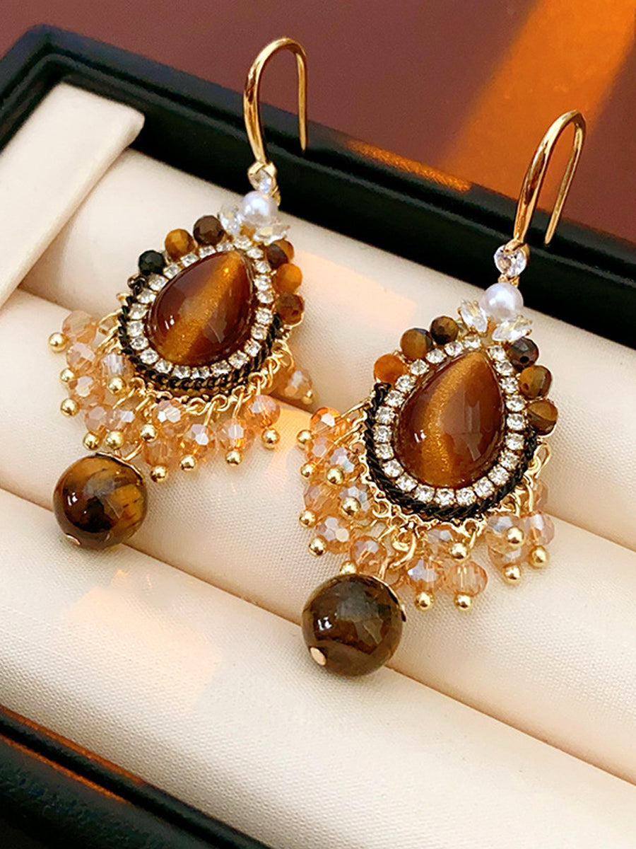 Women Vintage Alloy Rhinestone Zircon Earrings