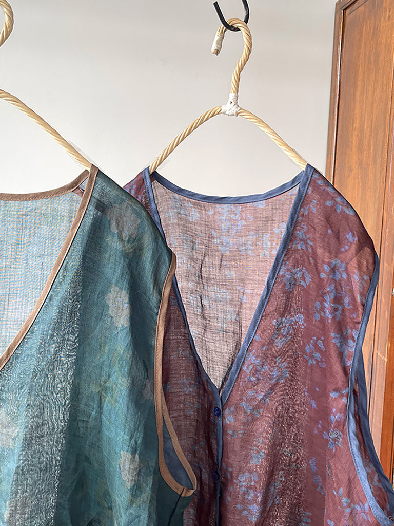 This vest is made of 100% ramie and features a floral pattern, V-neck collar, and vintage style. It is perfect for the spring and summer seasons.