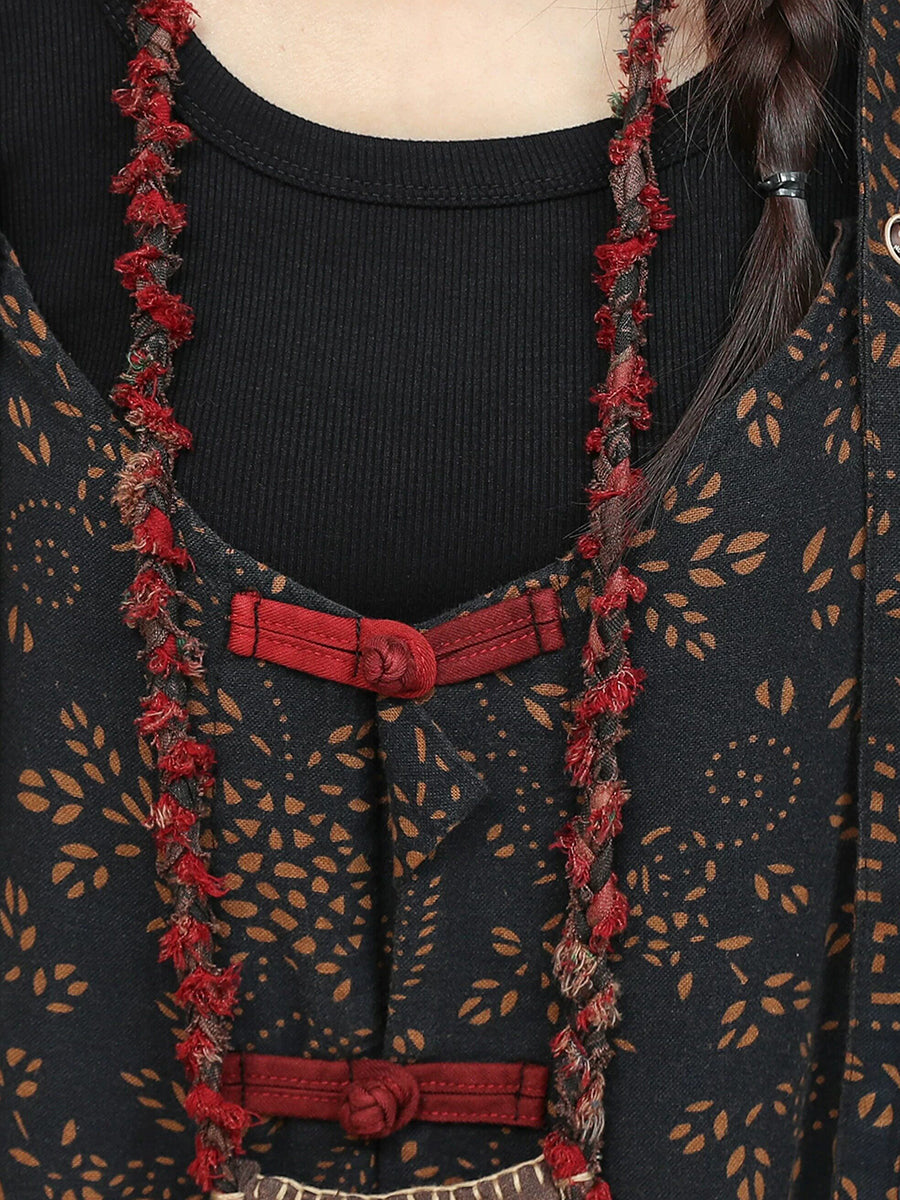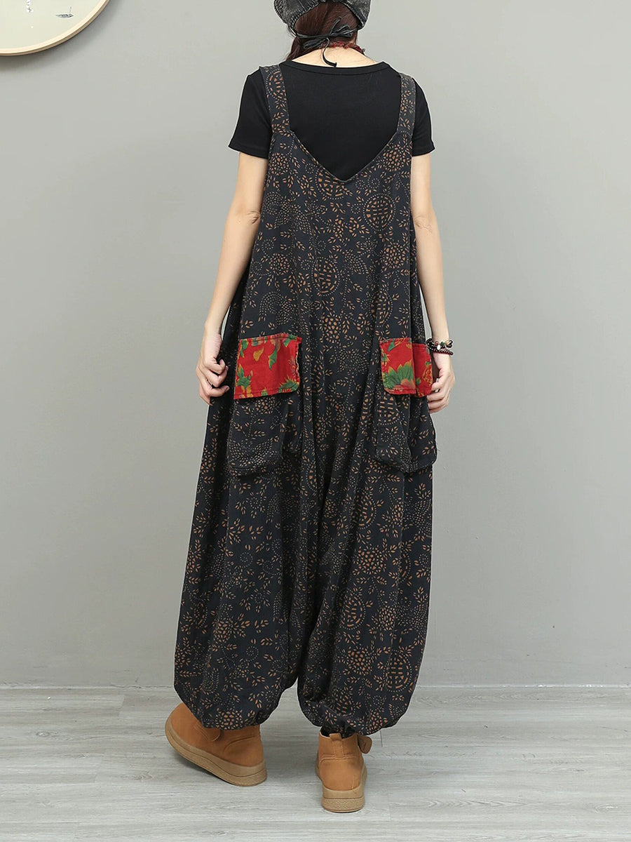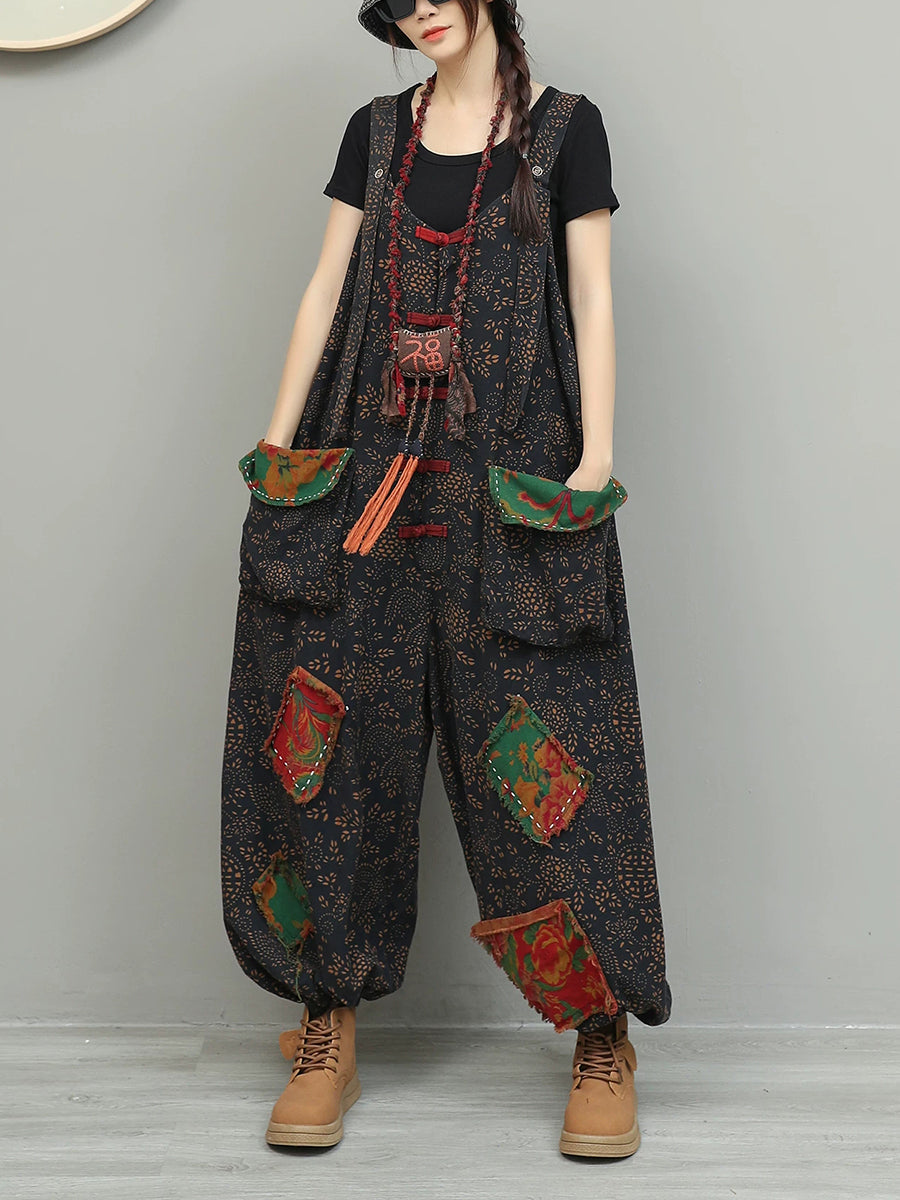 Women Vintage Patchwork Cotton Linen Jumpsuit